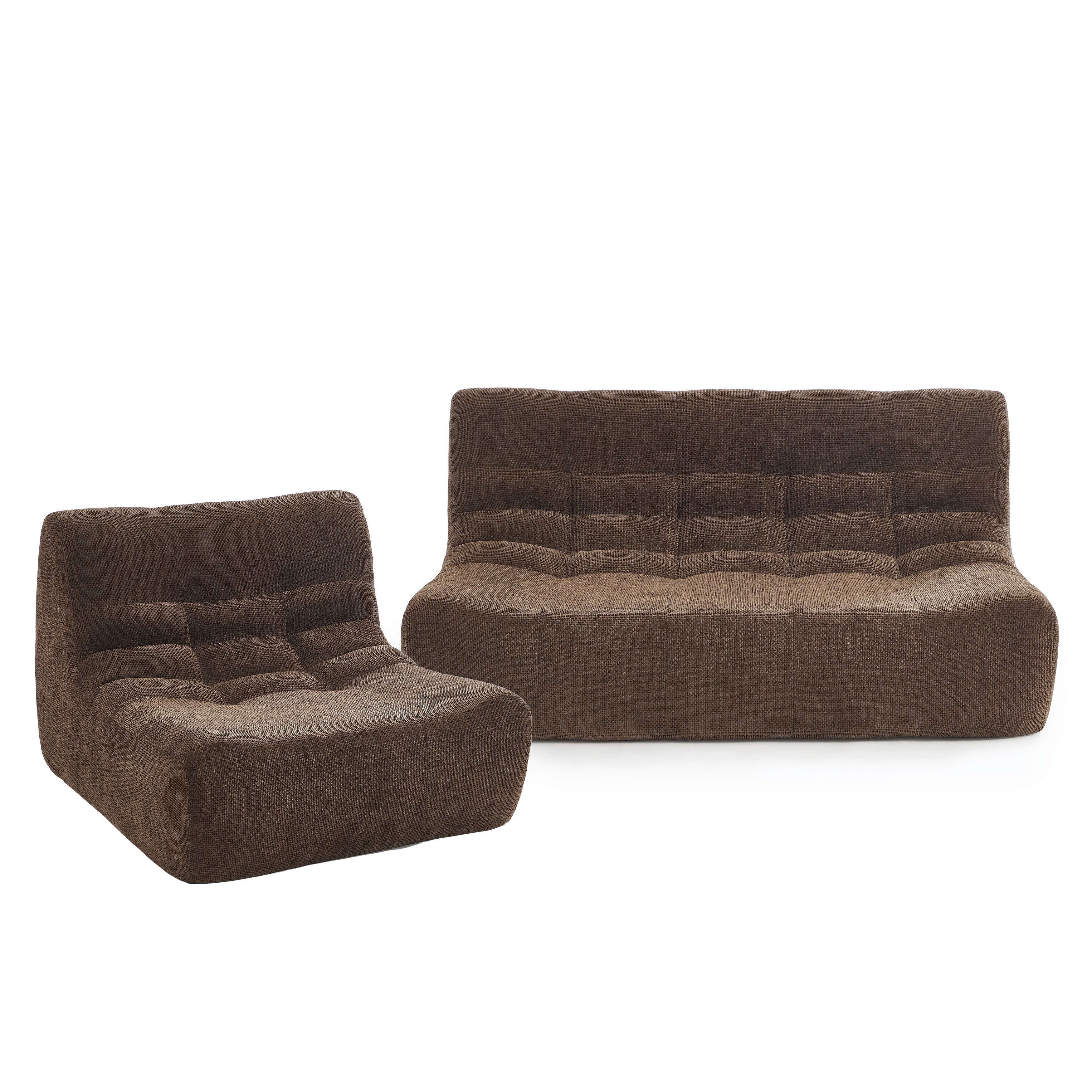Ensemble banquette et chauffeuse JANIS modulable 3 places tissu chenille marron