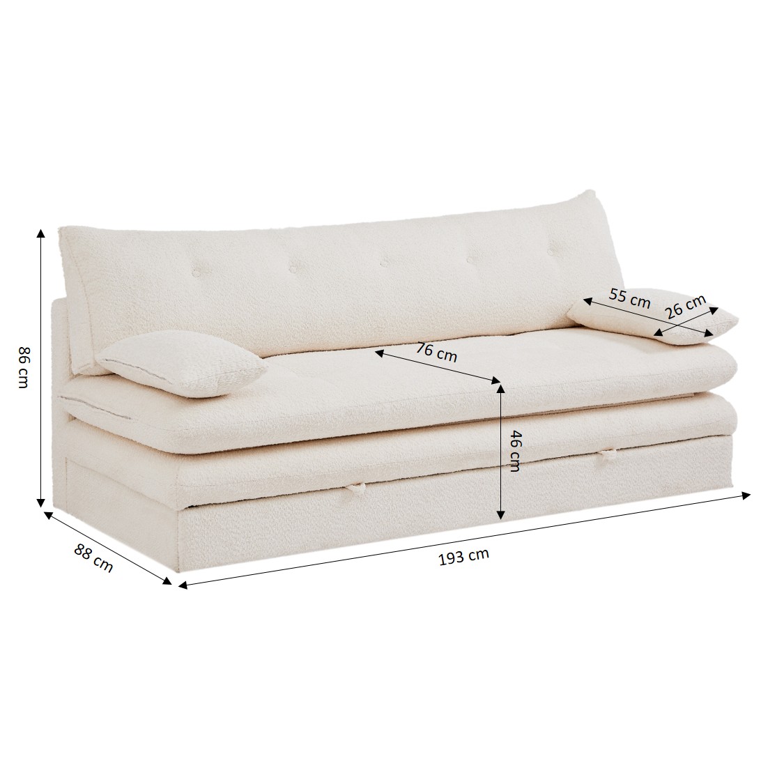 Avec son revêtement en tissu tout doux, la banquette convertible KIARA s'intègre facilement dans tous les intérieurs. Son format compact de 193 cm de long en fait un choix idéal pour un studio, une chambre d'amis ou un salon ayant un espace retreint.