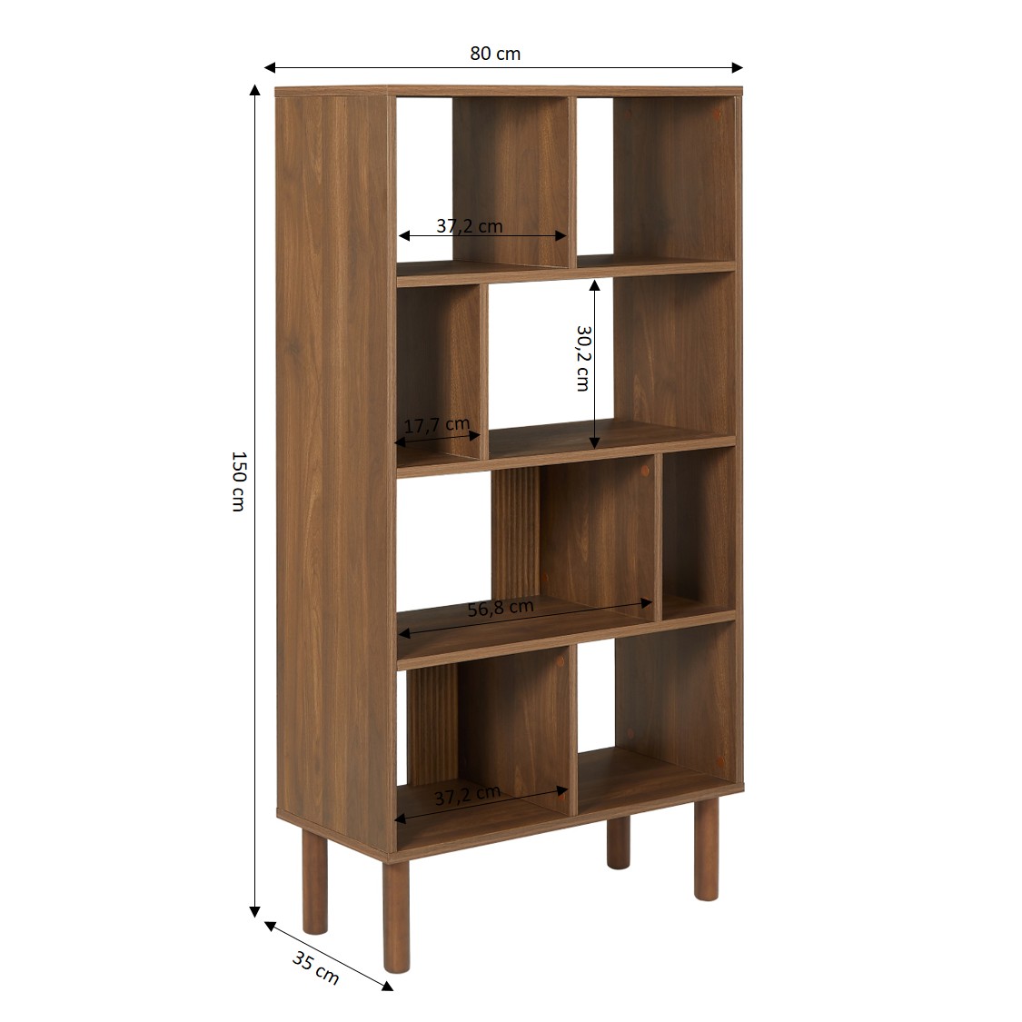 Avec ses lignes asymétriques et son effet noyer chaleureux, la bibliothèque EVORA habille votre pièce tout en offrant un rangement moderne et astucieux.