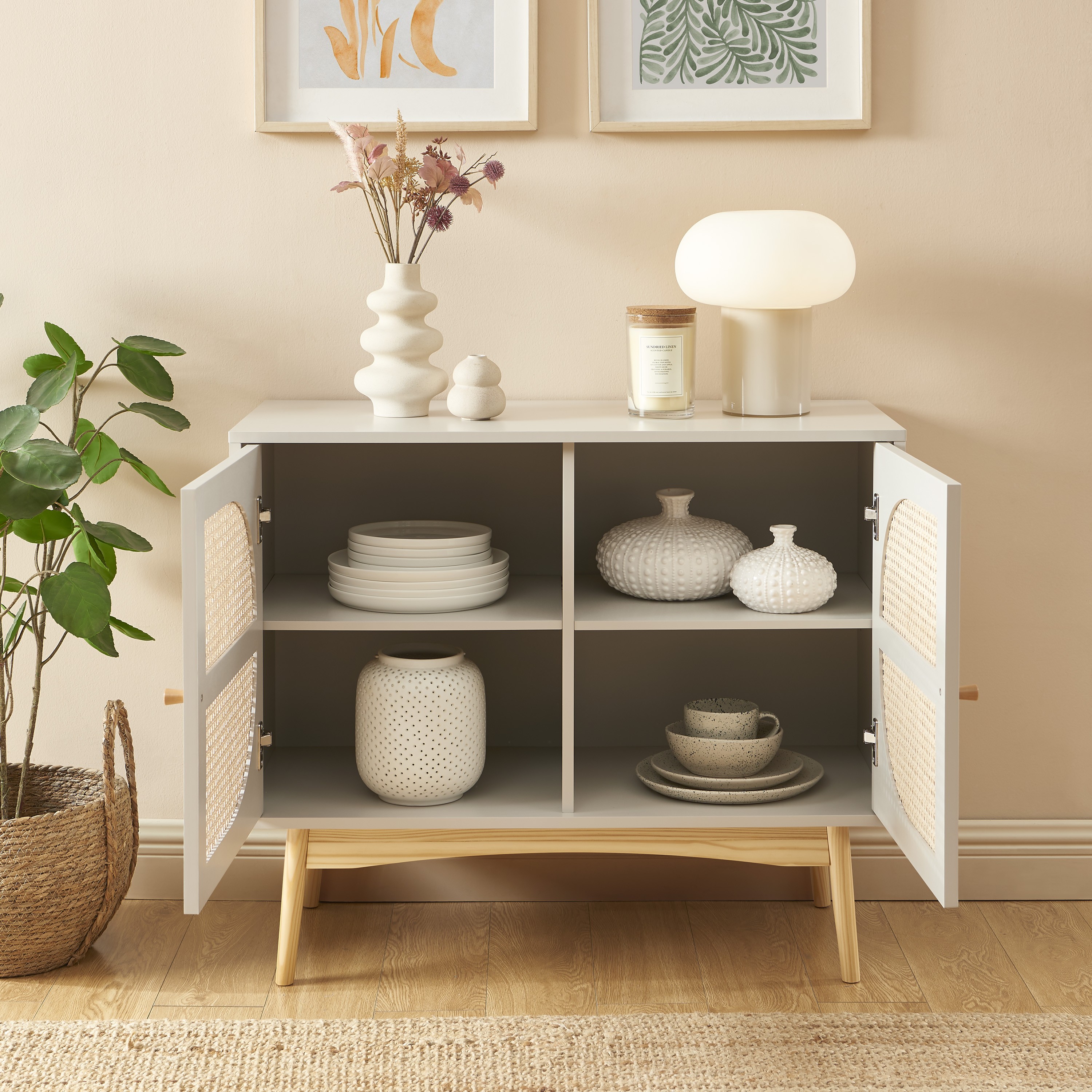 Buffet SIXTINE blanc et cannage rotin 90cm