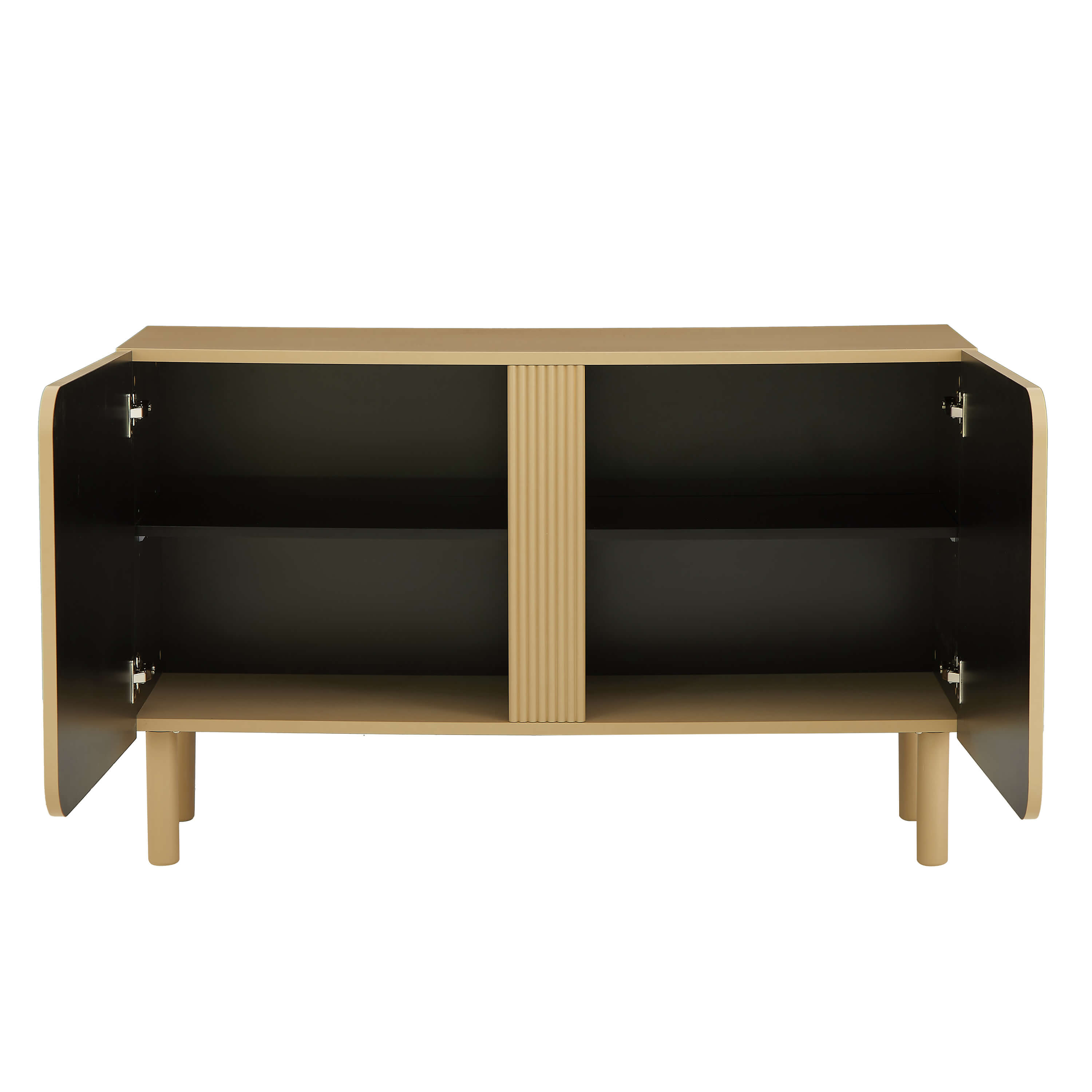 Le buffet BRAGA est monté sur quatre pieds cylindriques en bois de peuplier massif ayant la même finition colorée. Ces pieds sont complétés par un pied central discret. Les portes sans poignées renforcent son look épuré, tout en assurant une ouverture facile et fluide.