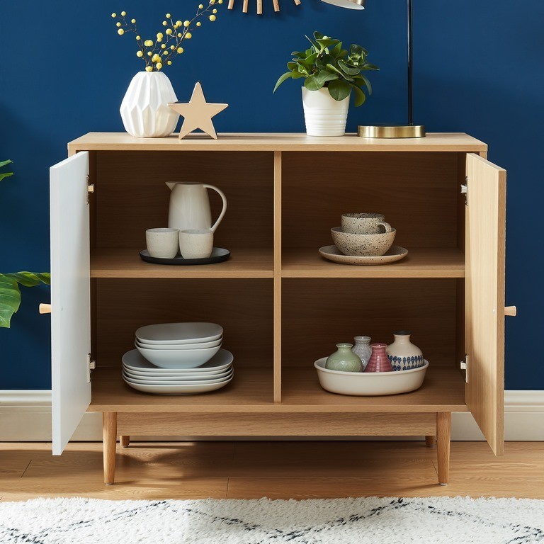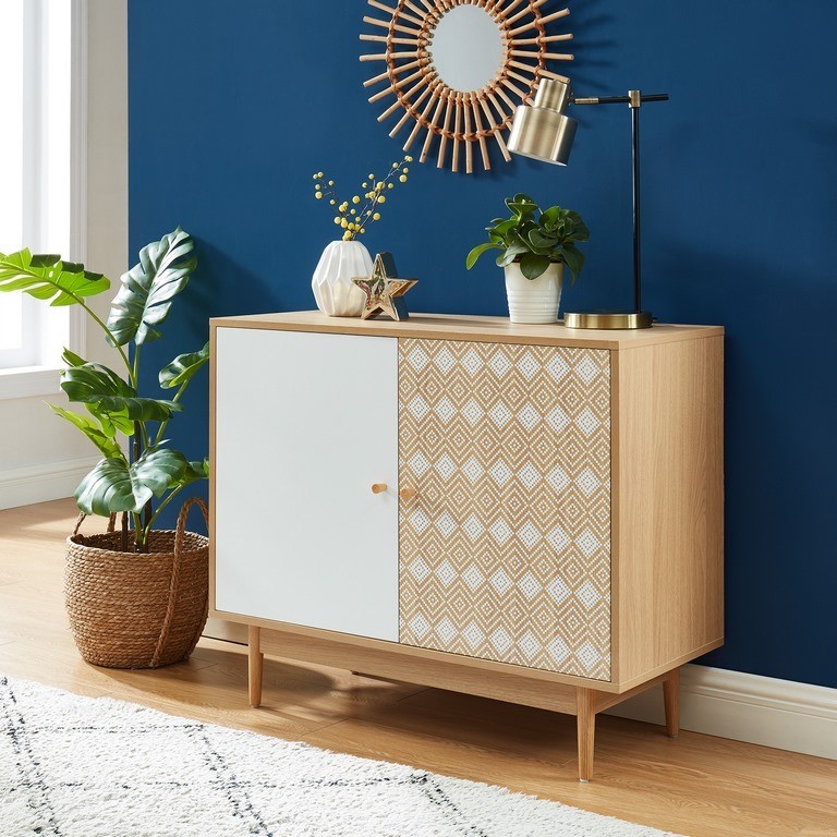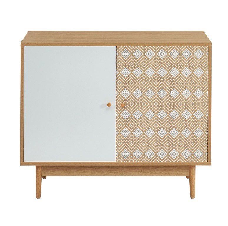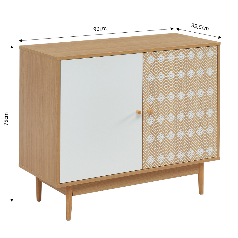 Buffet LEIKA blanc et effet chêne 2 portes 90cm