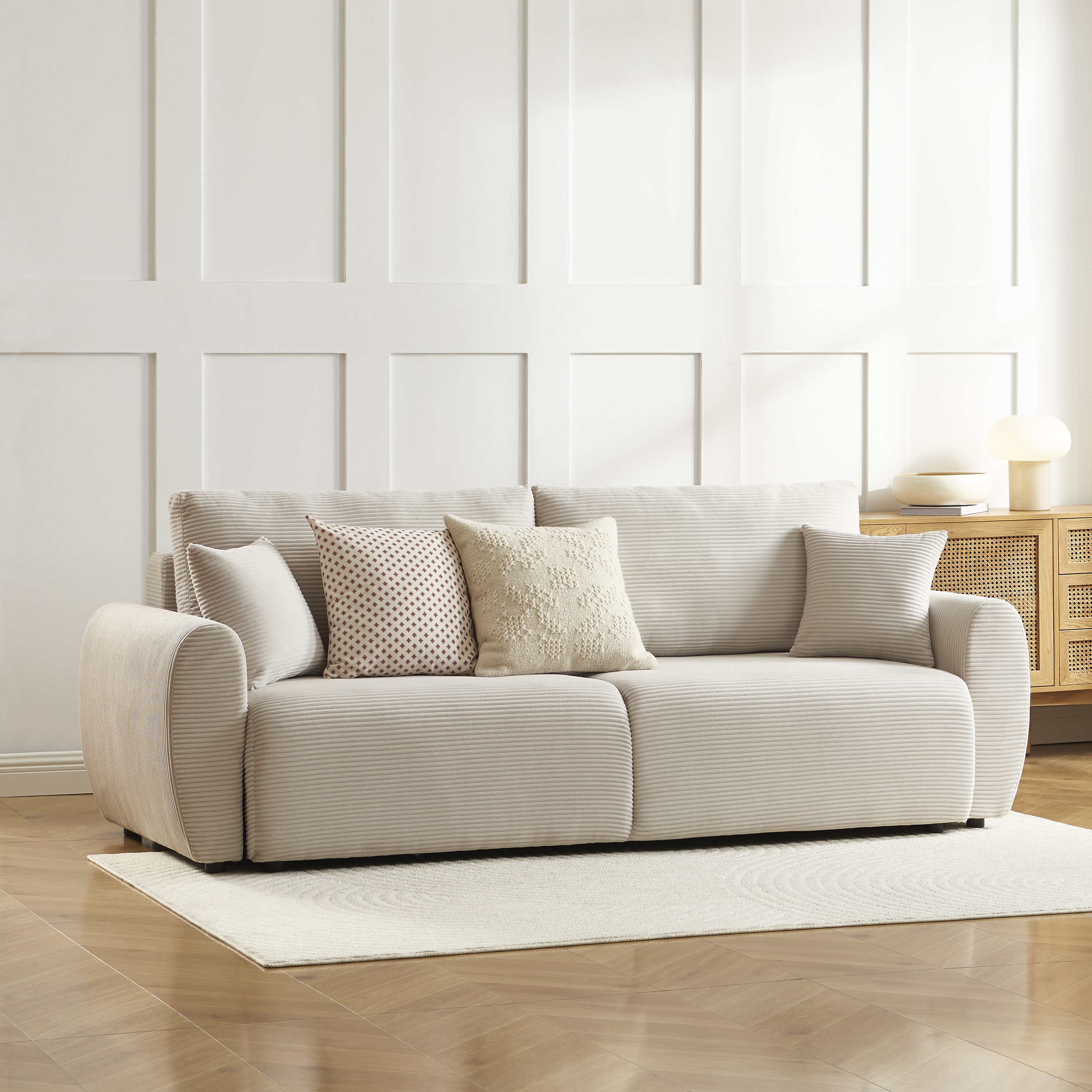 Canapé droit convertible 3 places DANILO velours côtelé beige
