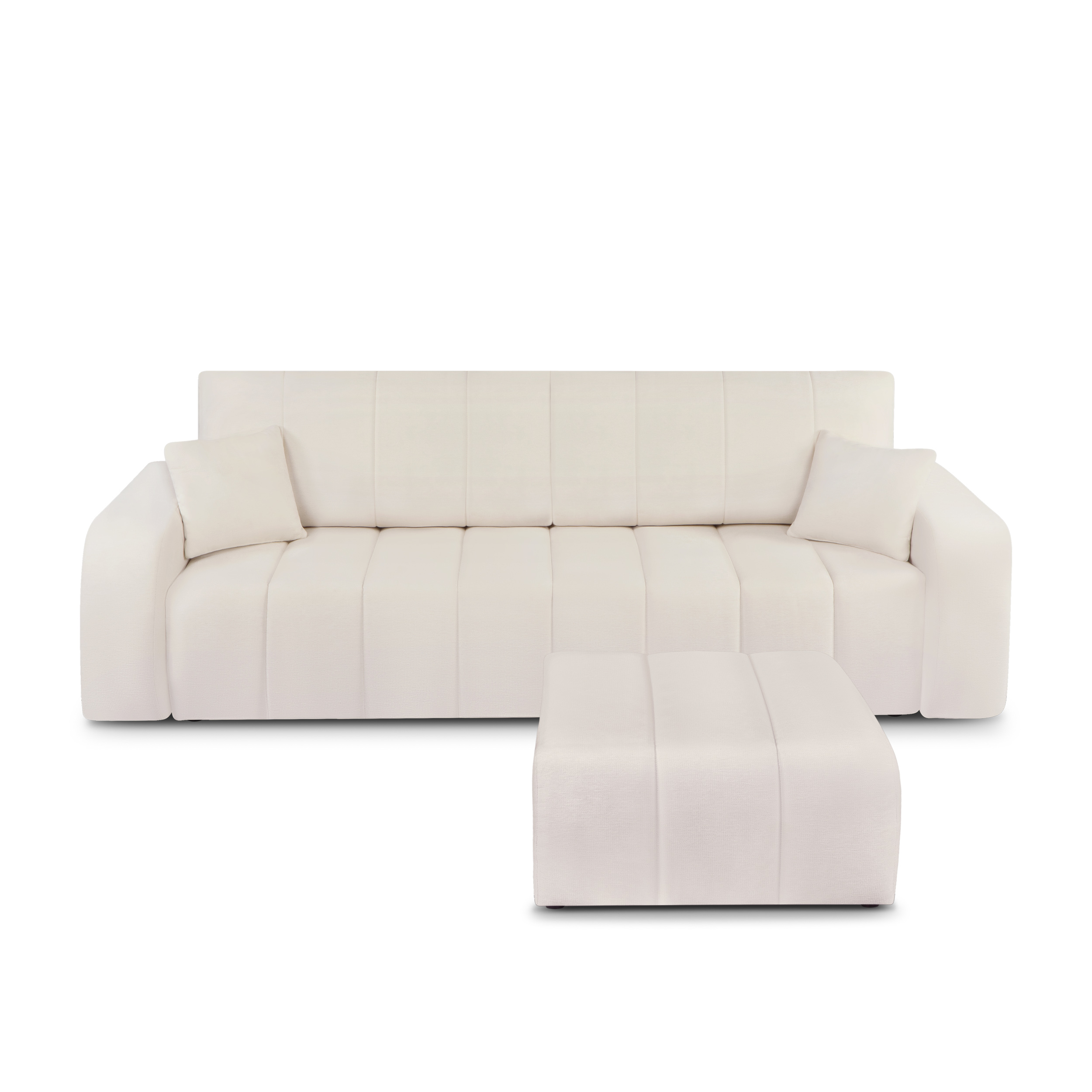 Sous son assise se cache un coffre de rangement spacieux, idéal pour garder à portée de main plaids, coussins ou linge de lit. Sa structure mêlant bois de pin et panneaux de particules assure une bonne robustesse dans le temps, tandis que sa mousse offre un confort d'assise ferme et équilibré au quotidien. Avec ses pieds discrets, ses 248 cm de long et son design intemporel, le canapé BELEM allie style et fonctionnalité avec simplicité.