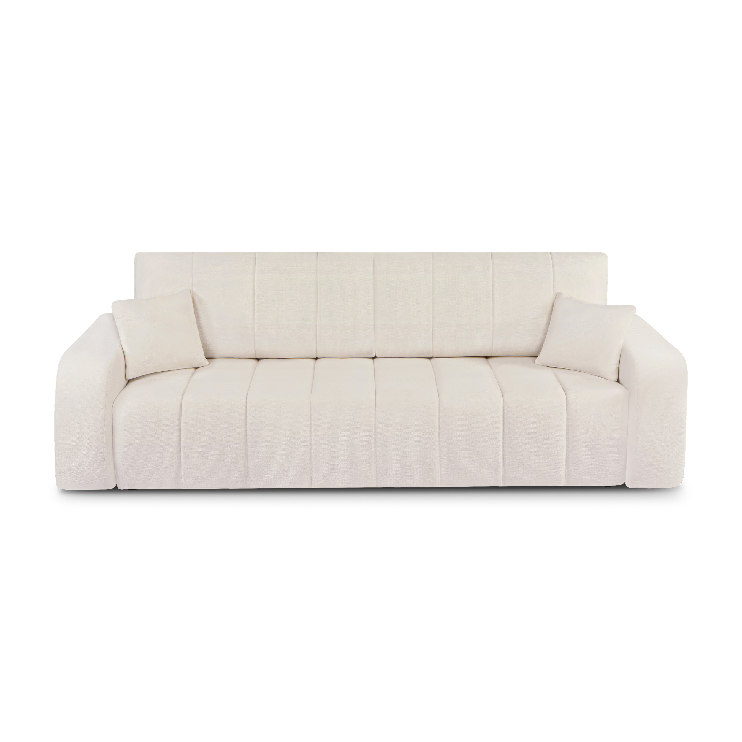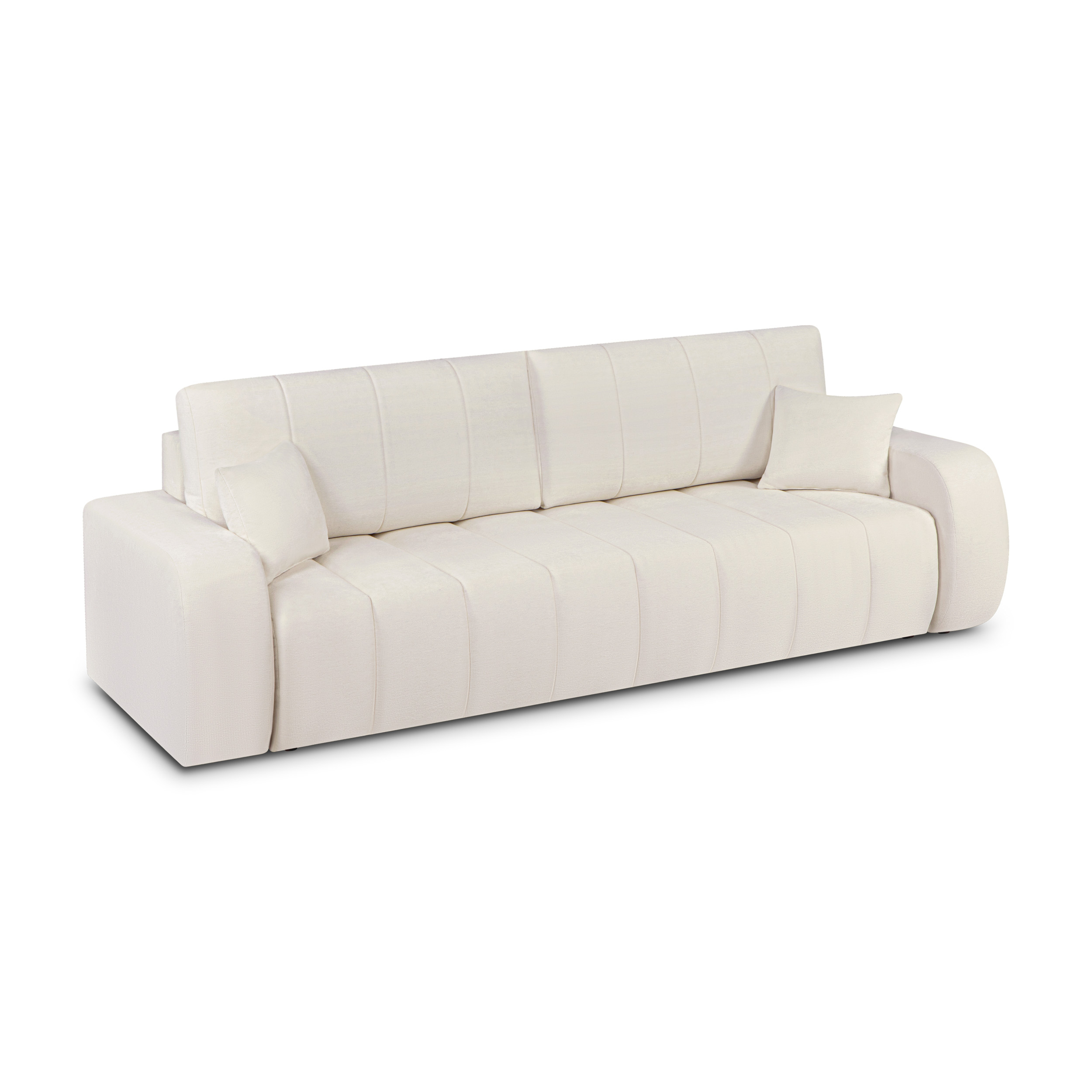 Craquez pour le canapé droit BELEM, 3 places, alliant confort et fonctionnalité. Son revêtement en tissu chenille apporte douceur et élégance, tandis que sa fonction convertible en fait un allié pratique au quotidien.