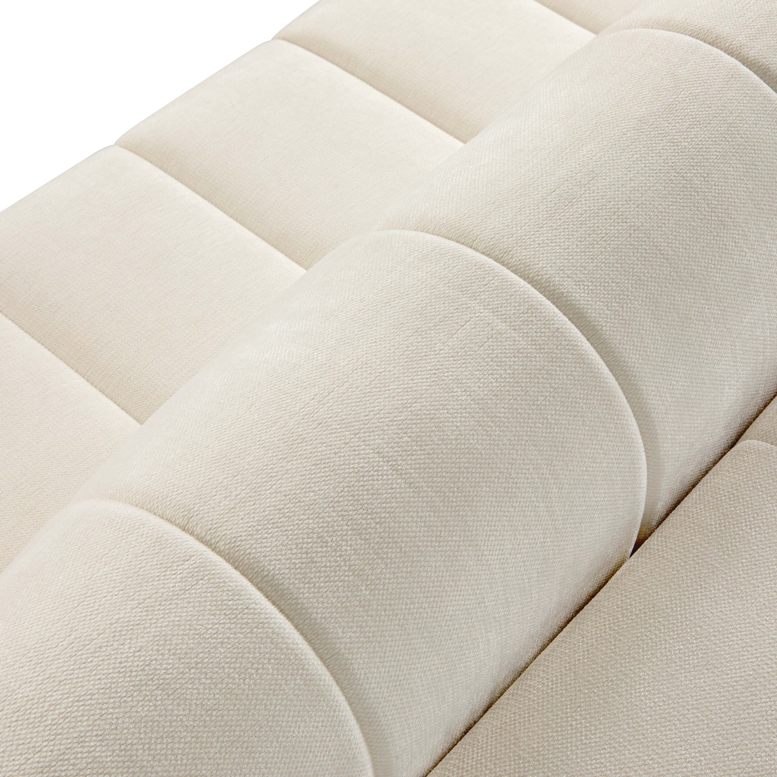 Revêtu d'un tissu chenille très doux au toucher, le canapé BELEM crée une atmosphère chaleureuse et enveloppante. Ce tissu s'intègre facilement à tout type de décoration, qu'elle soit contemporaine, bohème ou scandinave. Les deux coussins décoratifs fournis renforcent son esprit cosy.