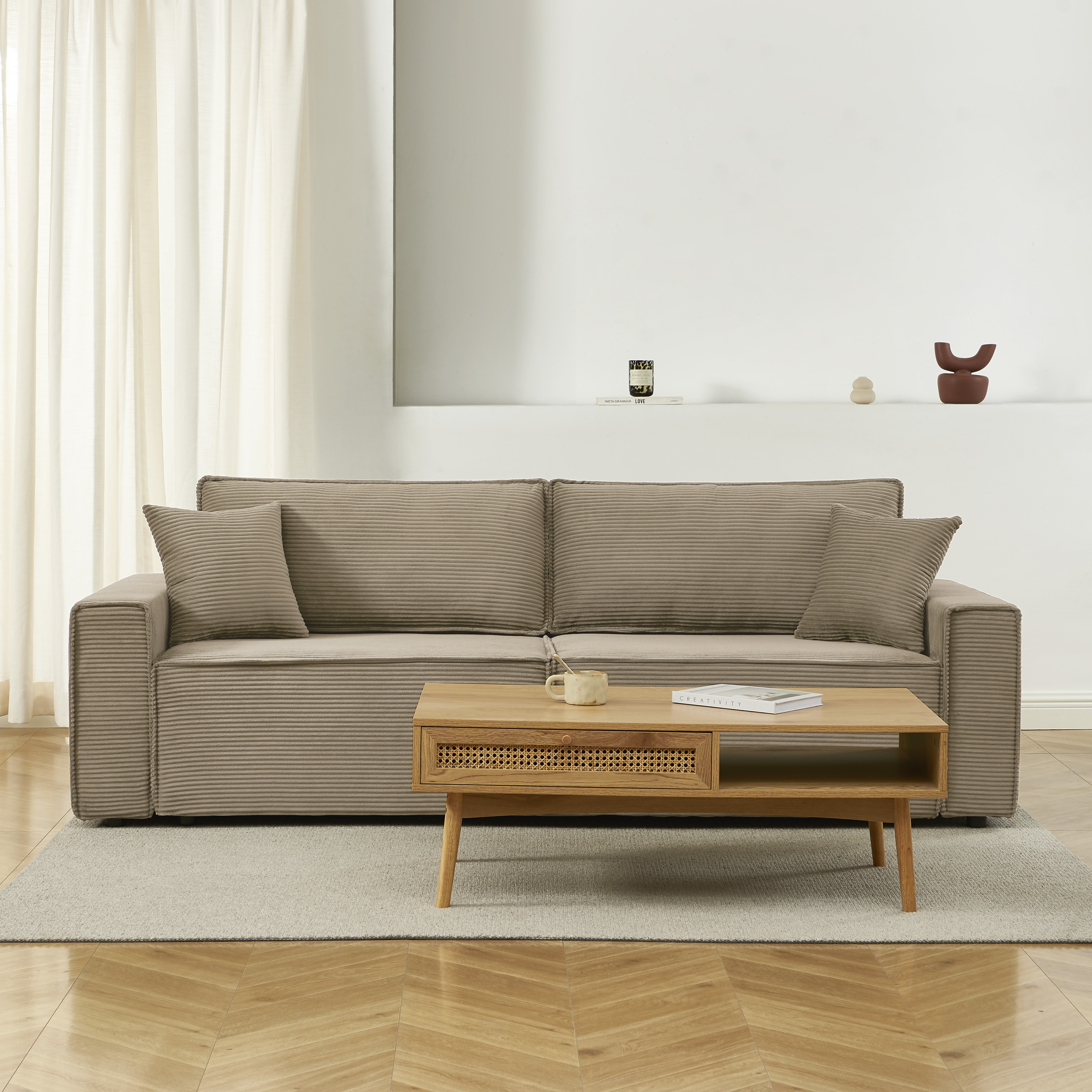 Canapé droit convertible 3 places ZOLA velours côtelé taupe