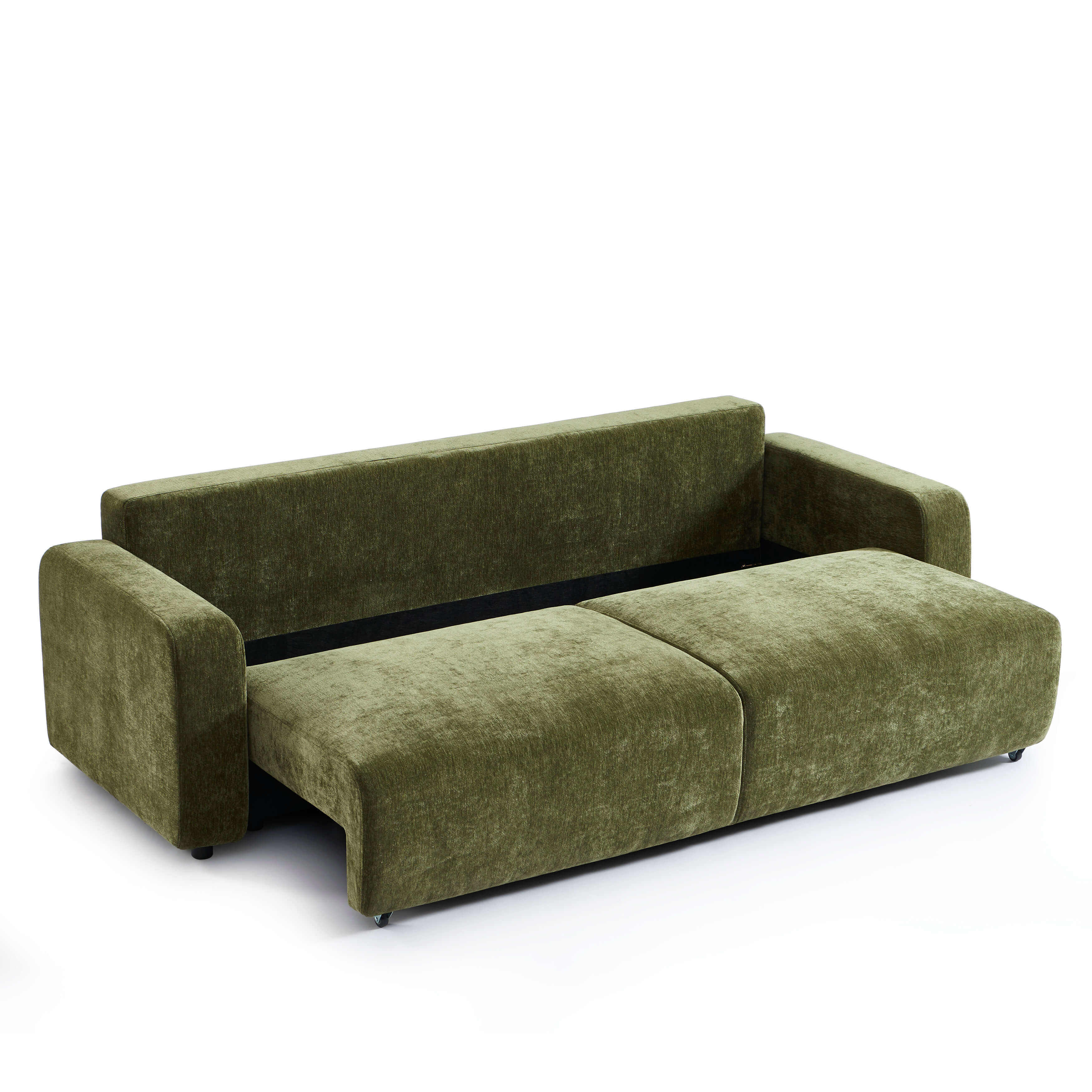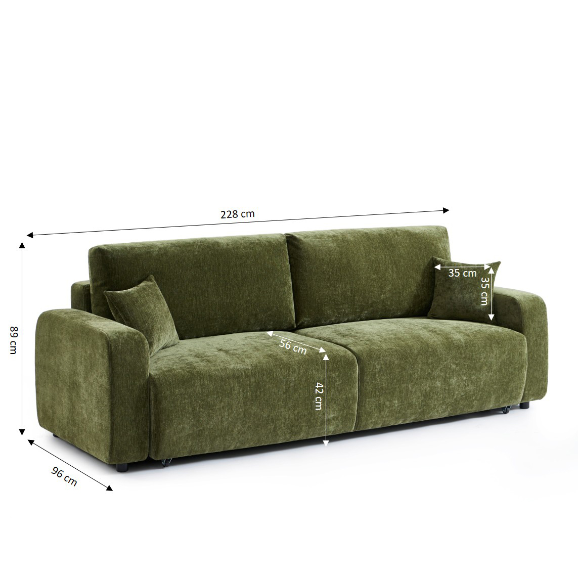 Banquette convertible NOMA 3 places tissu bouclette vert kaki