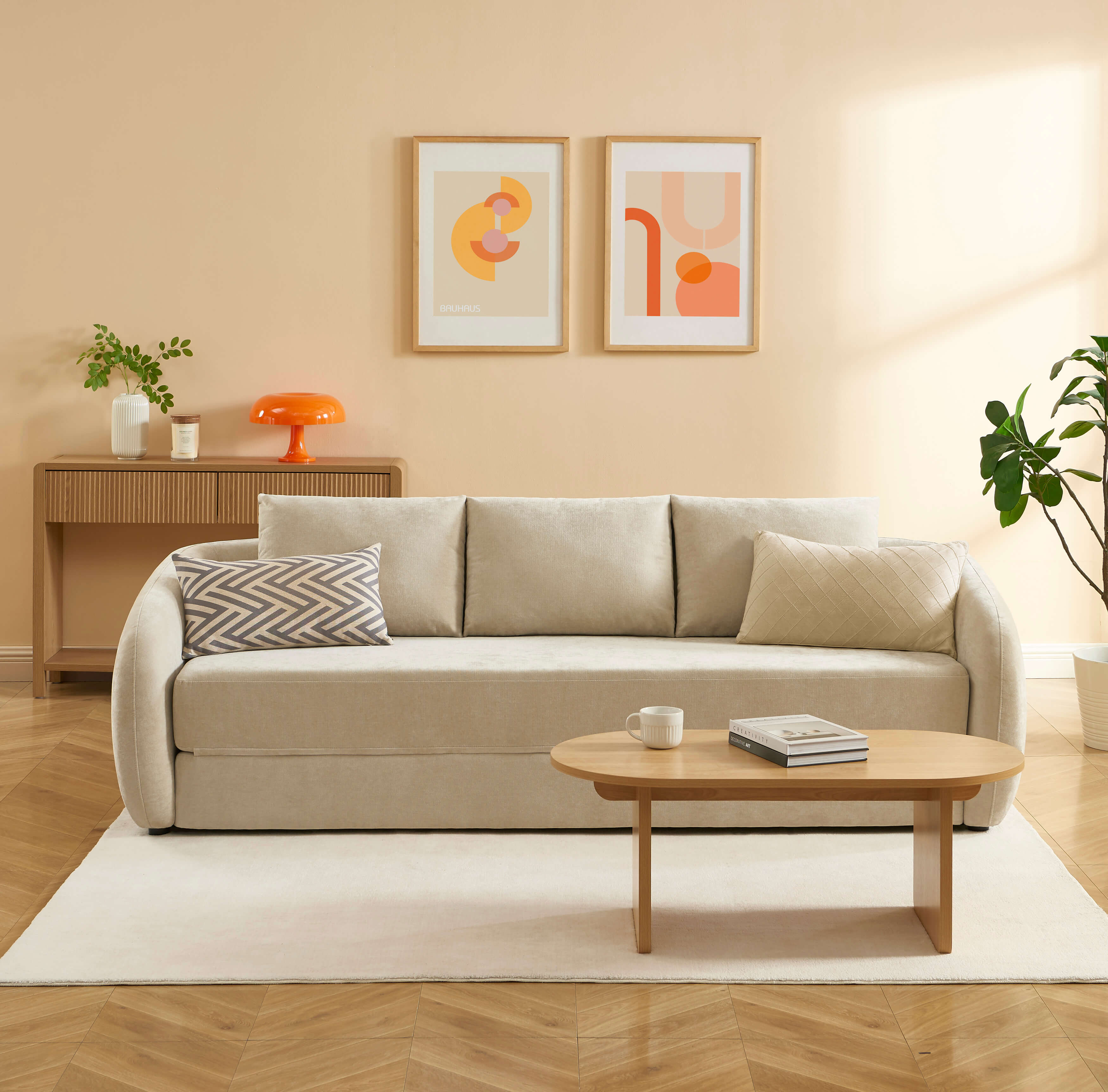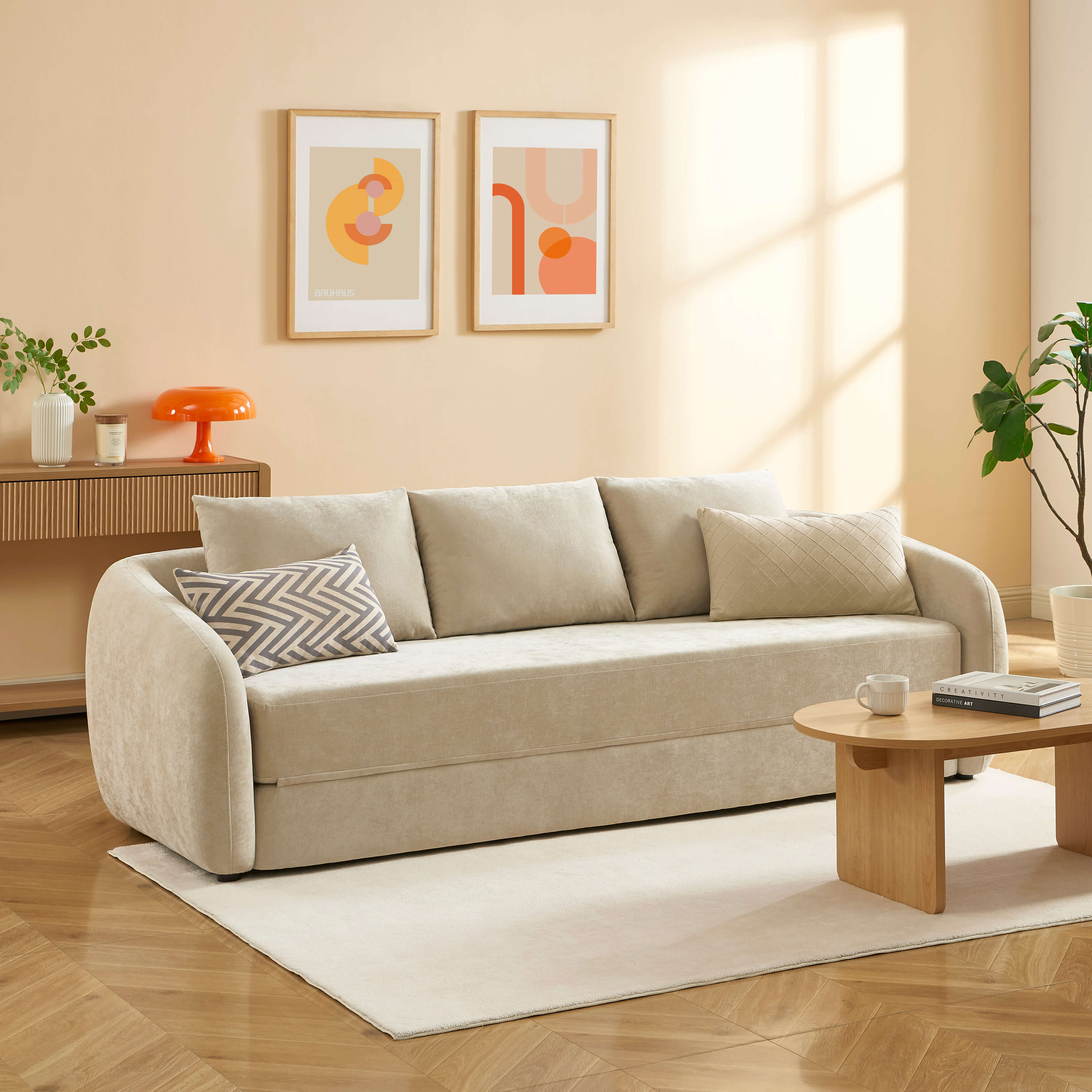 Avec son revêtement en tissu chenille, doux et chaleureux, ce canapé 3 places s'impose comme une assise élégante et accueillante au quotidien. En un geste, il se déplie dans la longueur pour se transformer en lit 2 places confortable, grâce à ses couches de mousse généreuses. Un allié idéal pour accueillir famille et amis.