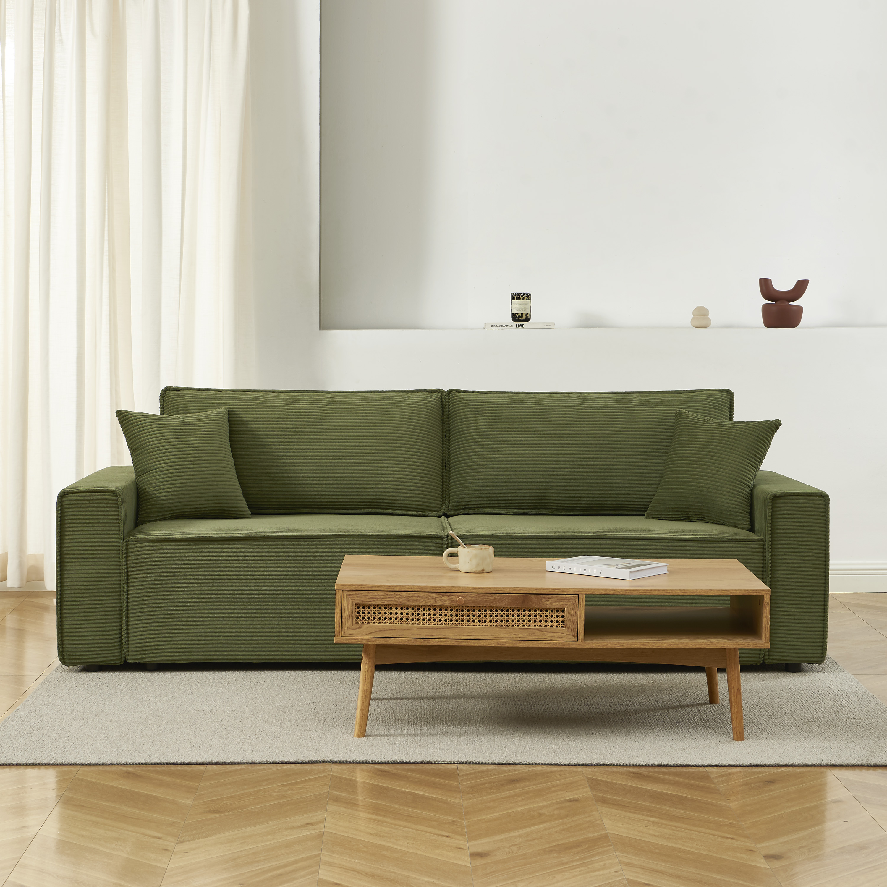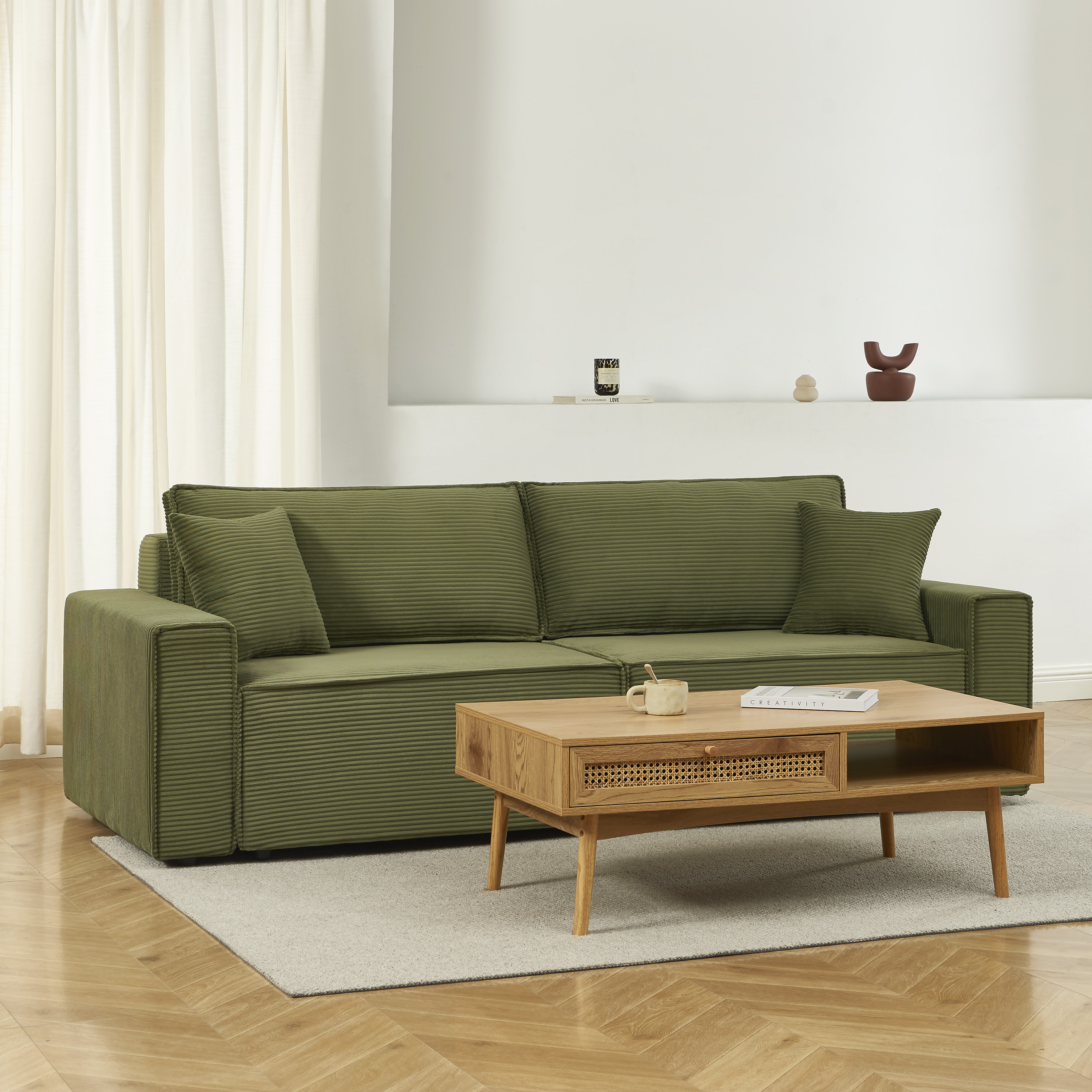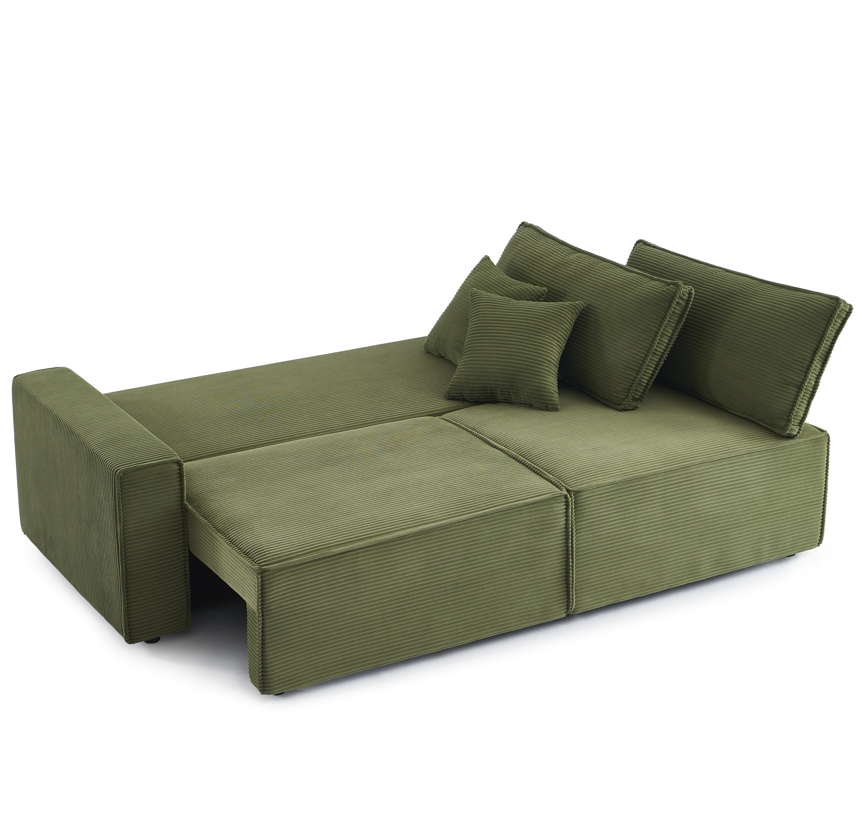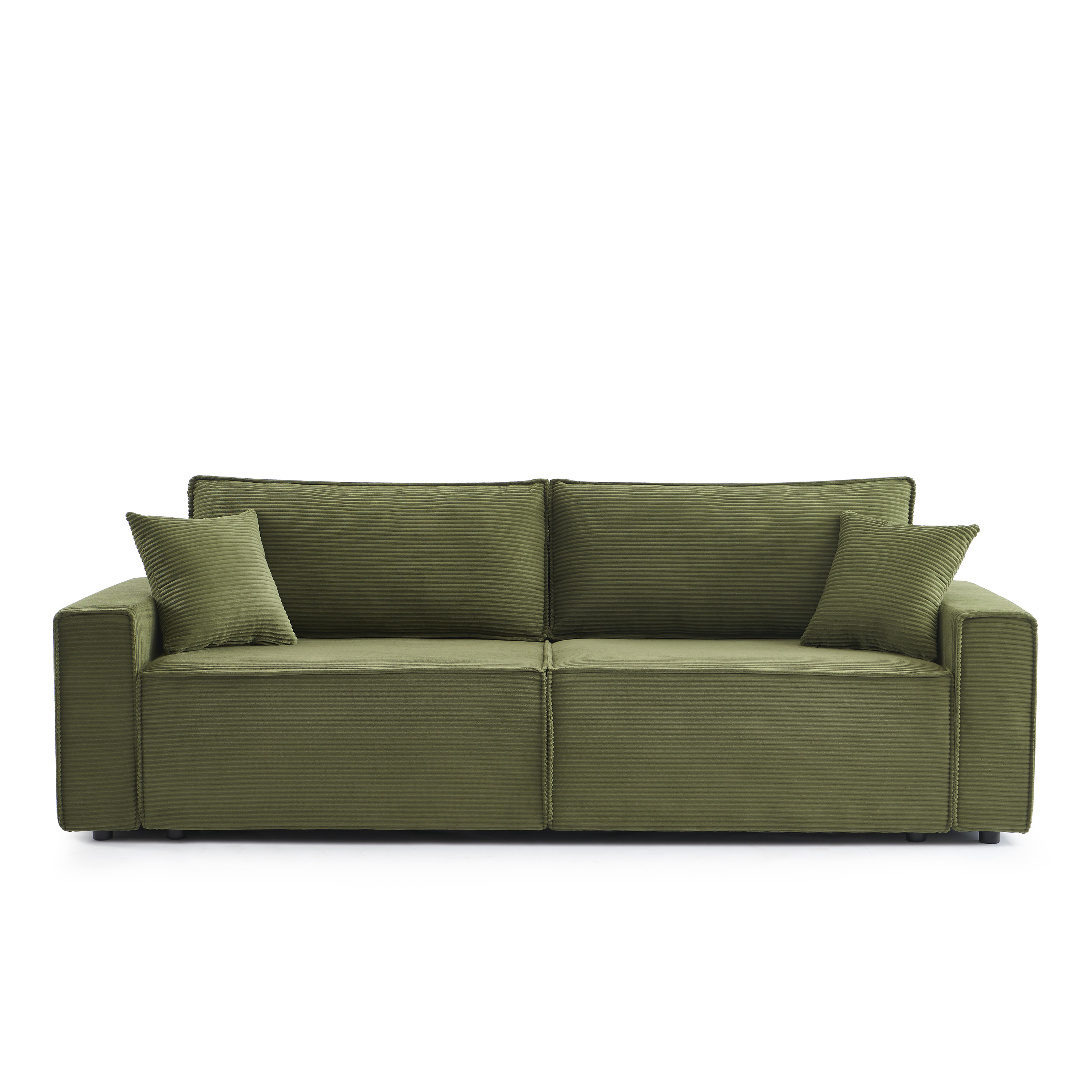 Canapé droit convertible 3 places ZOLA velours côtelé vert