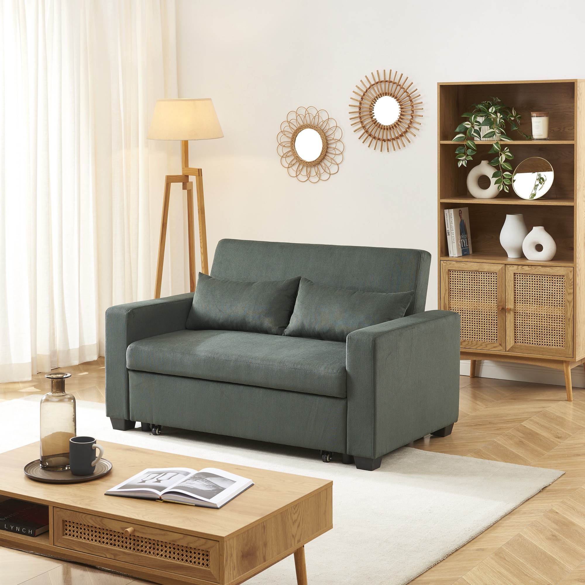 Canapé droit EVA convertible velours côtelé vert 2 places