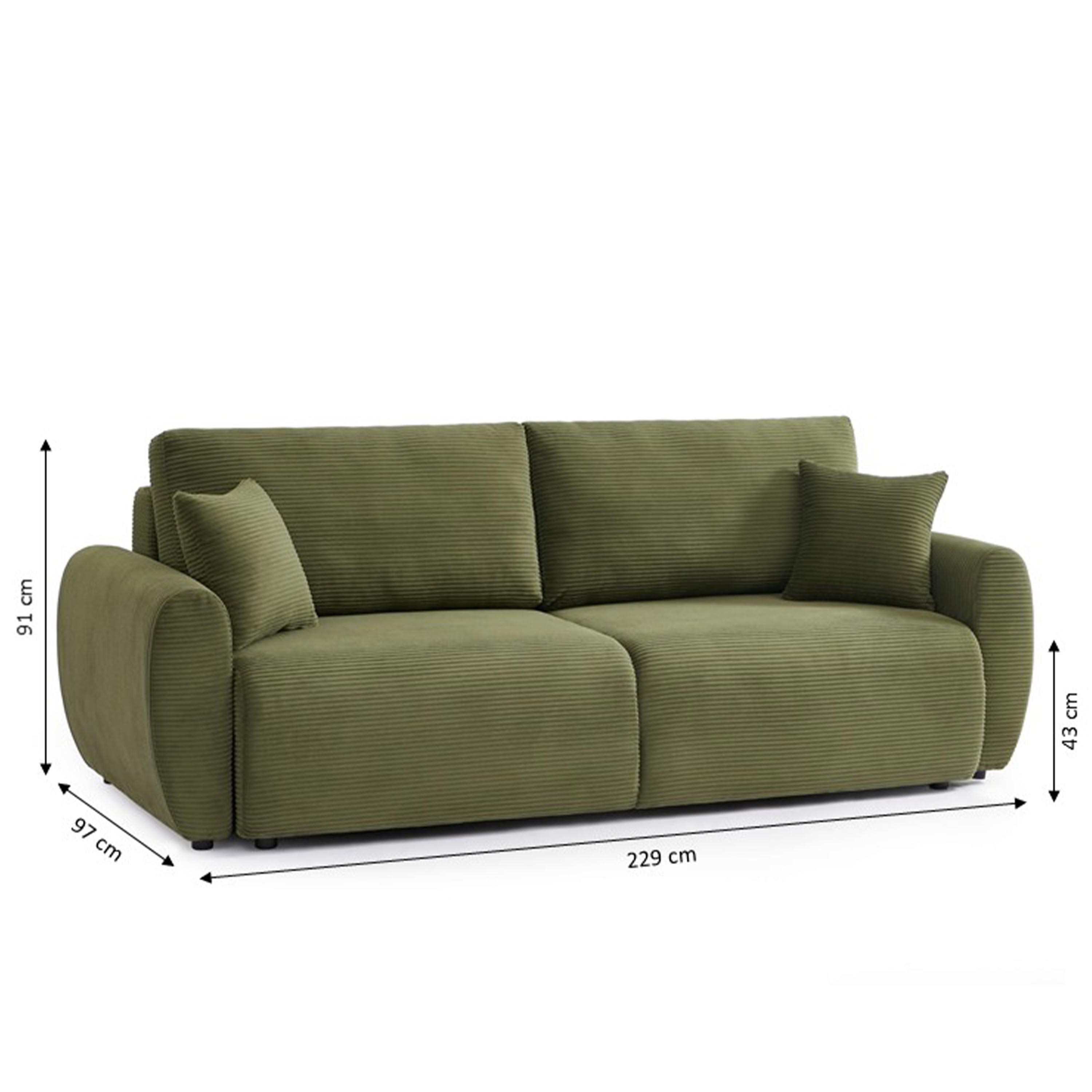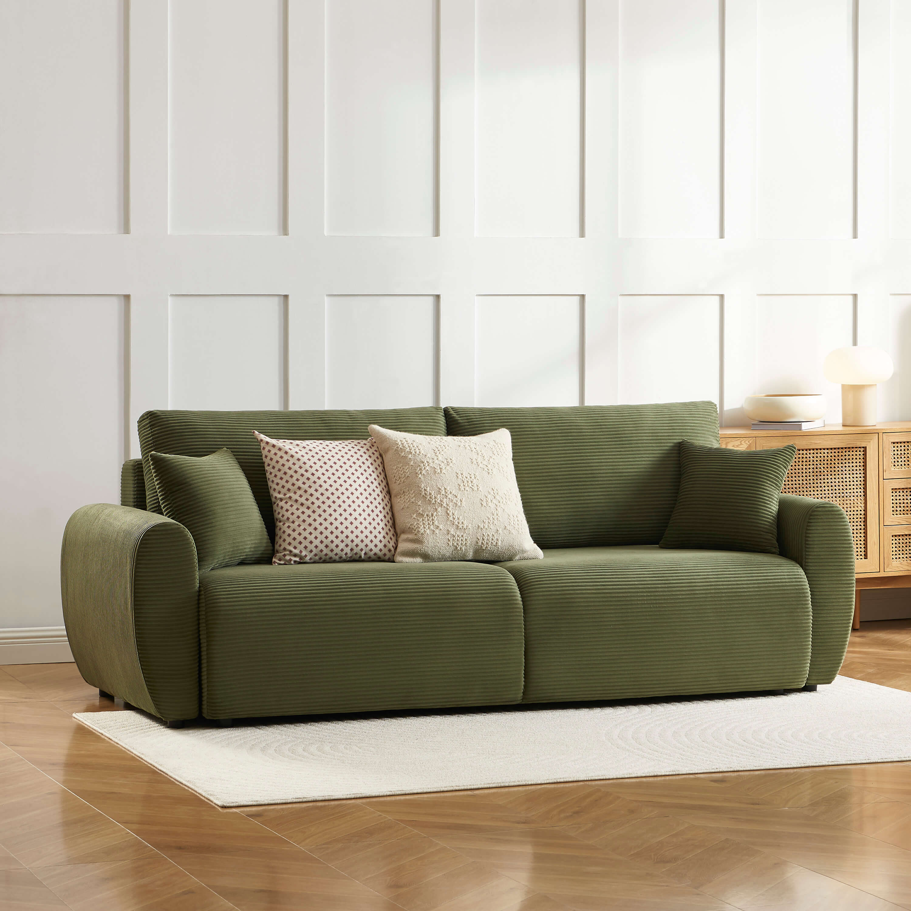 Canapé droit convertible 3 places DANILO velours côtelé vert