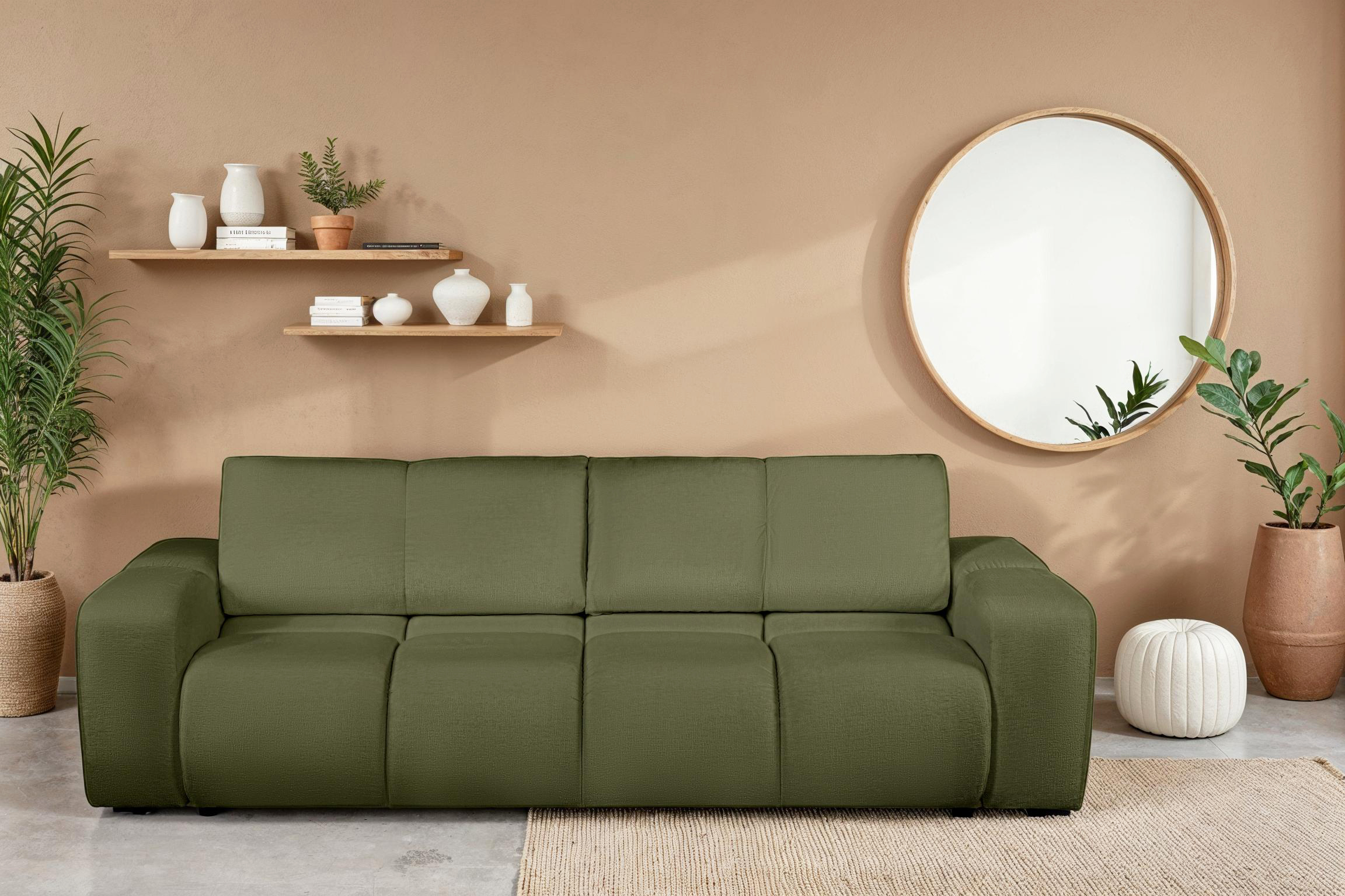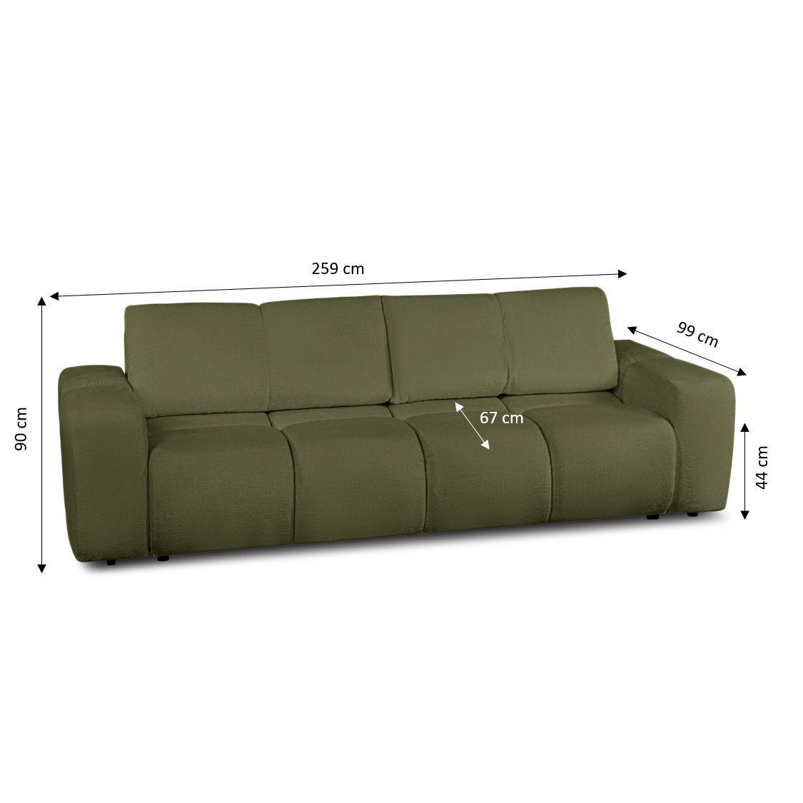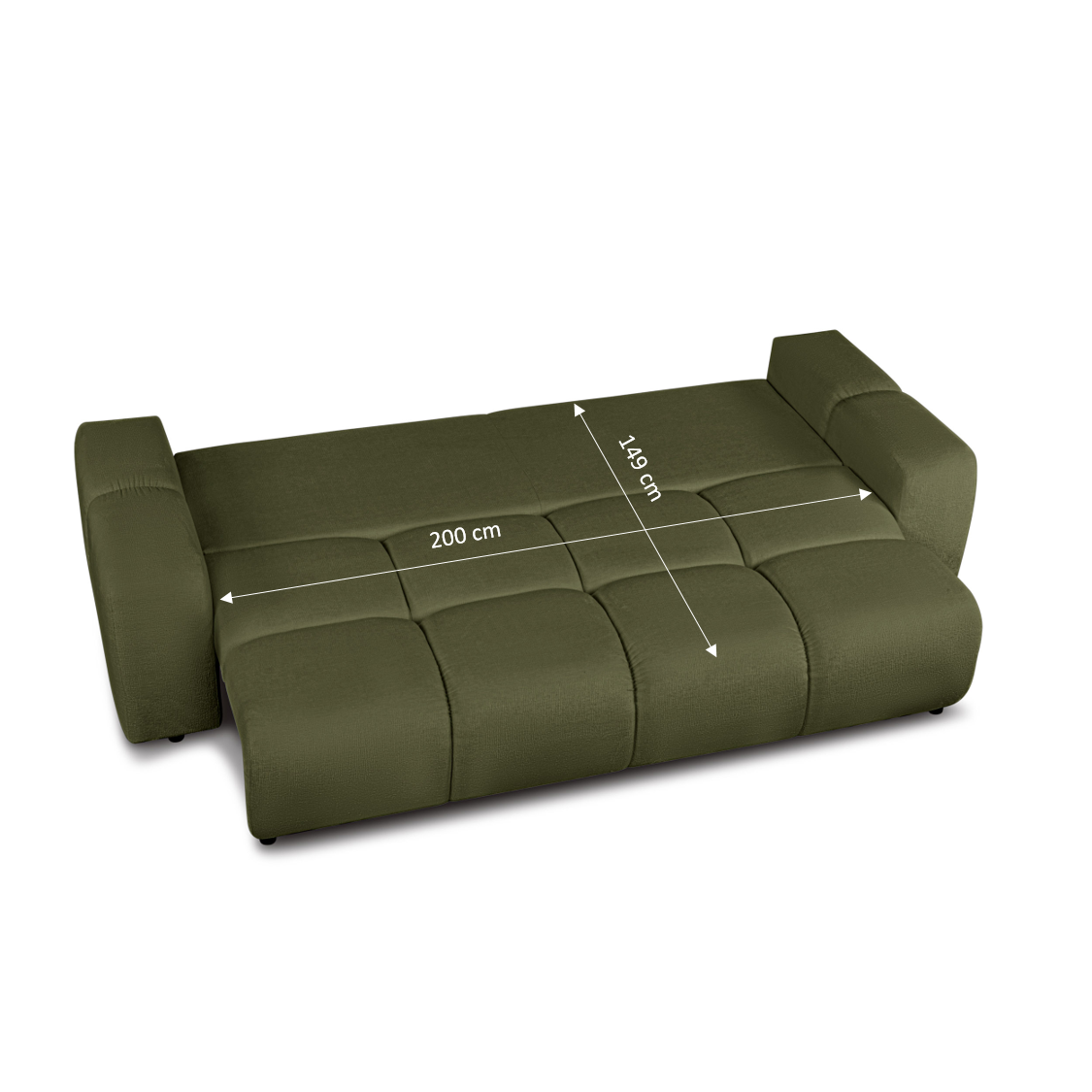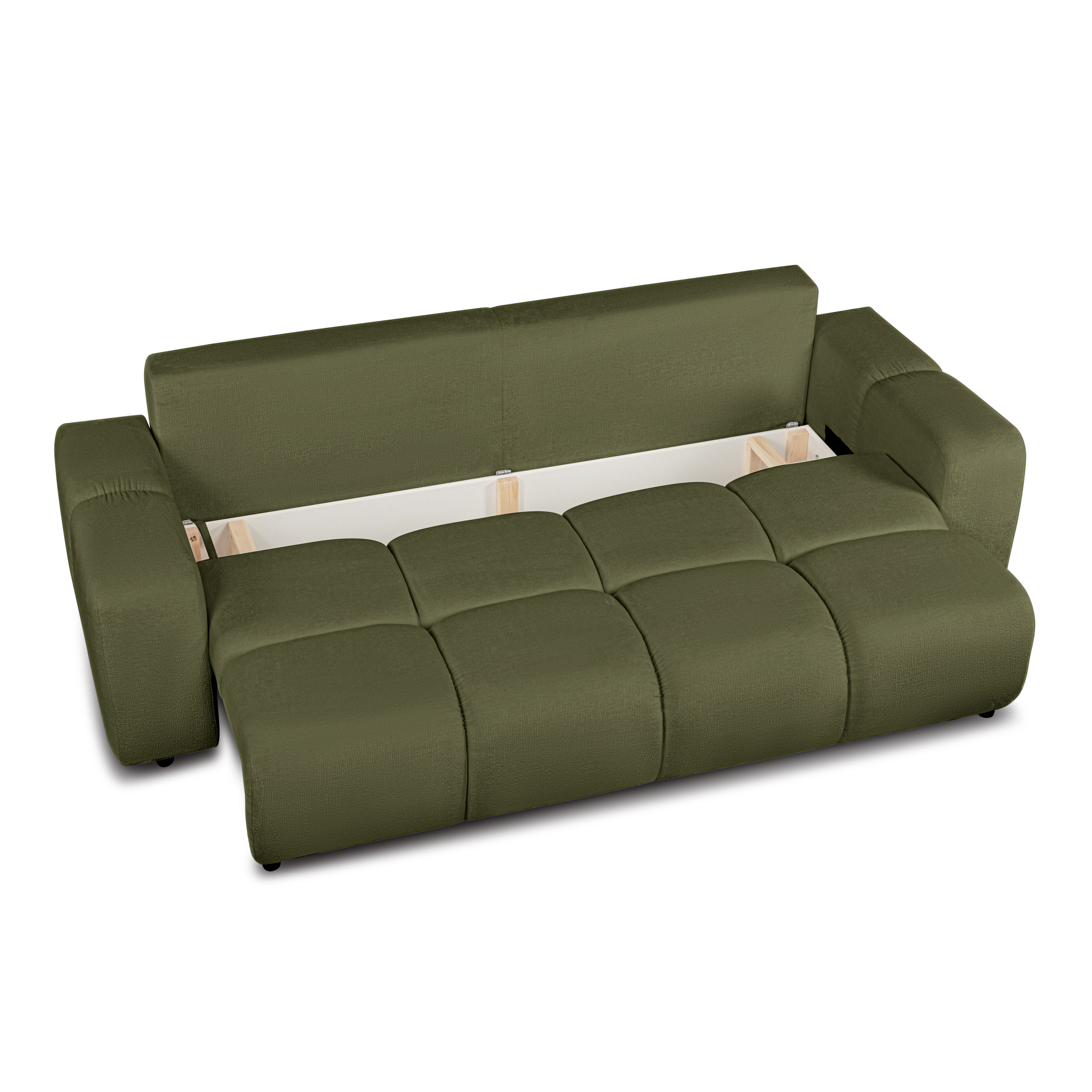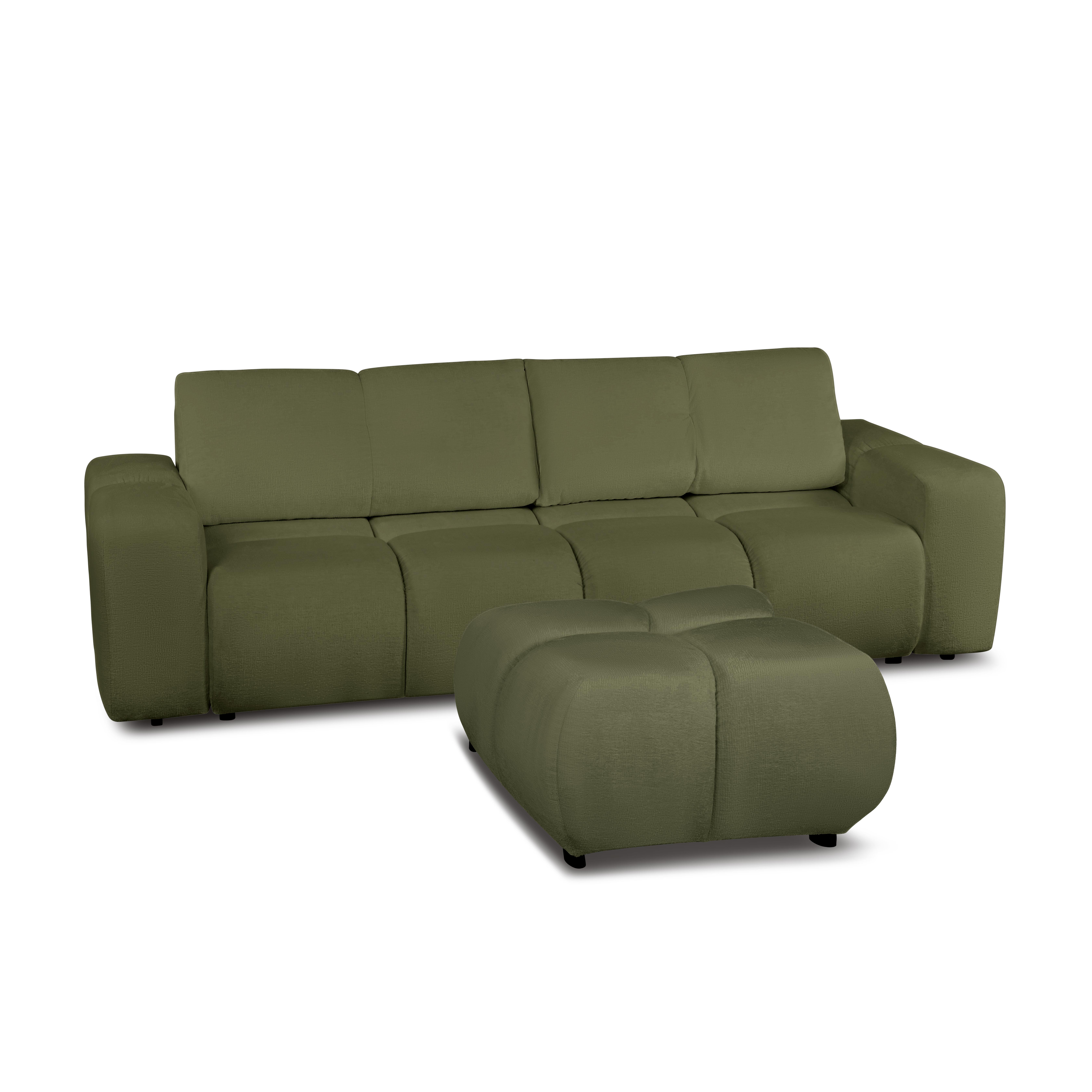 Canapé droit convertible SORELLA 3 places tissu chenille vert kaki