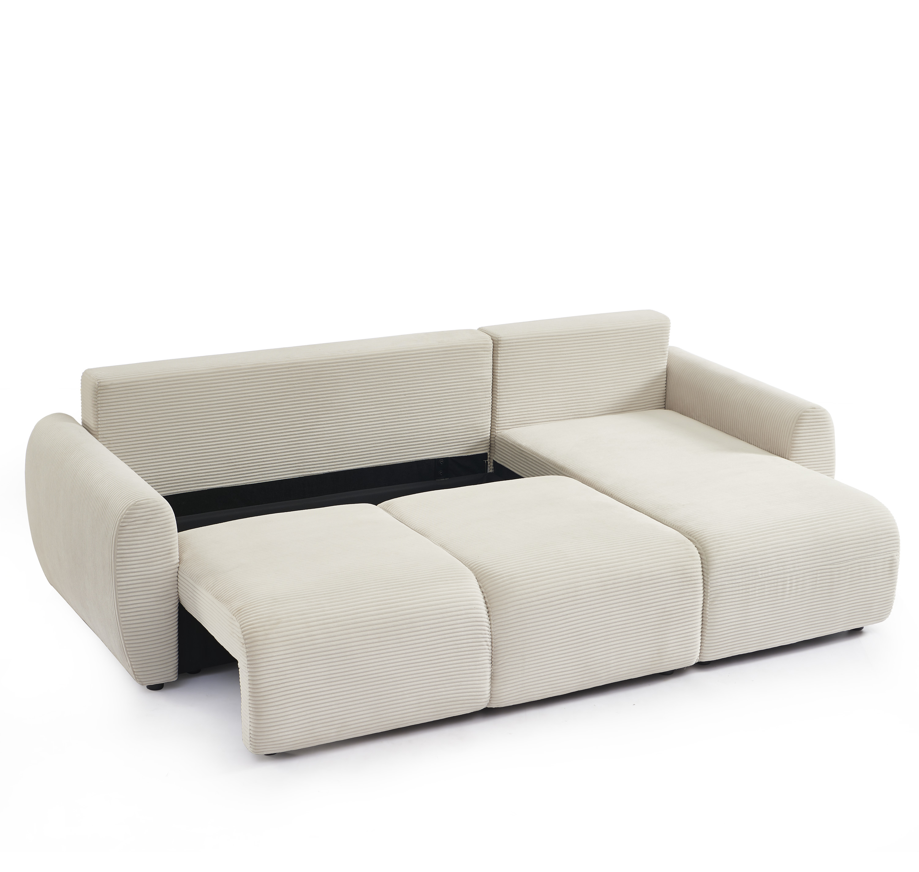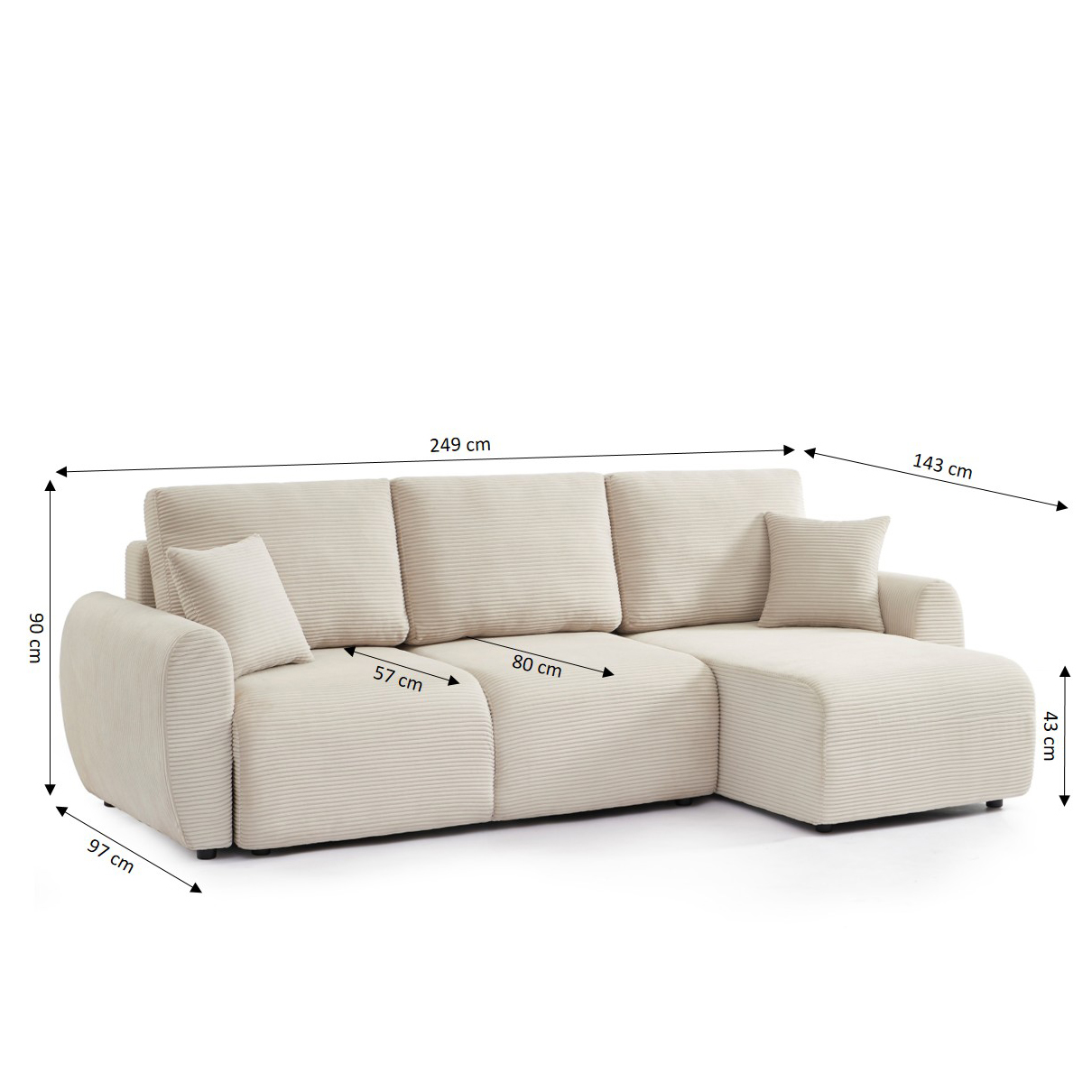 Canapé d'angle convertible et réversible 4 places DANILO velours côtelé beige