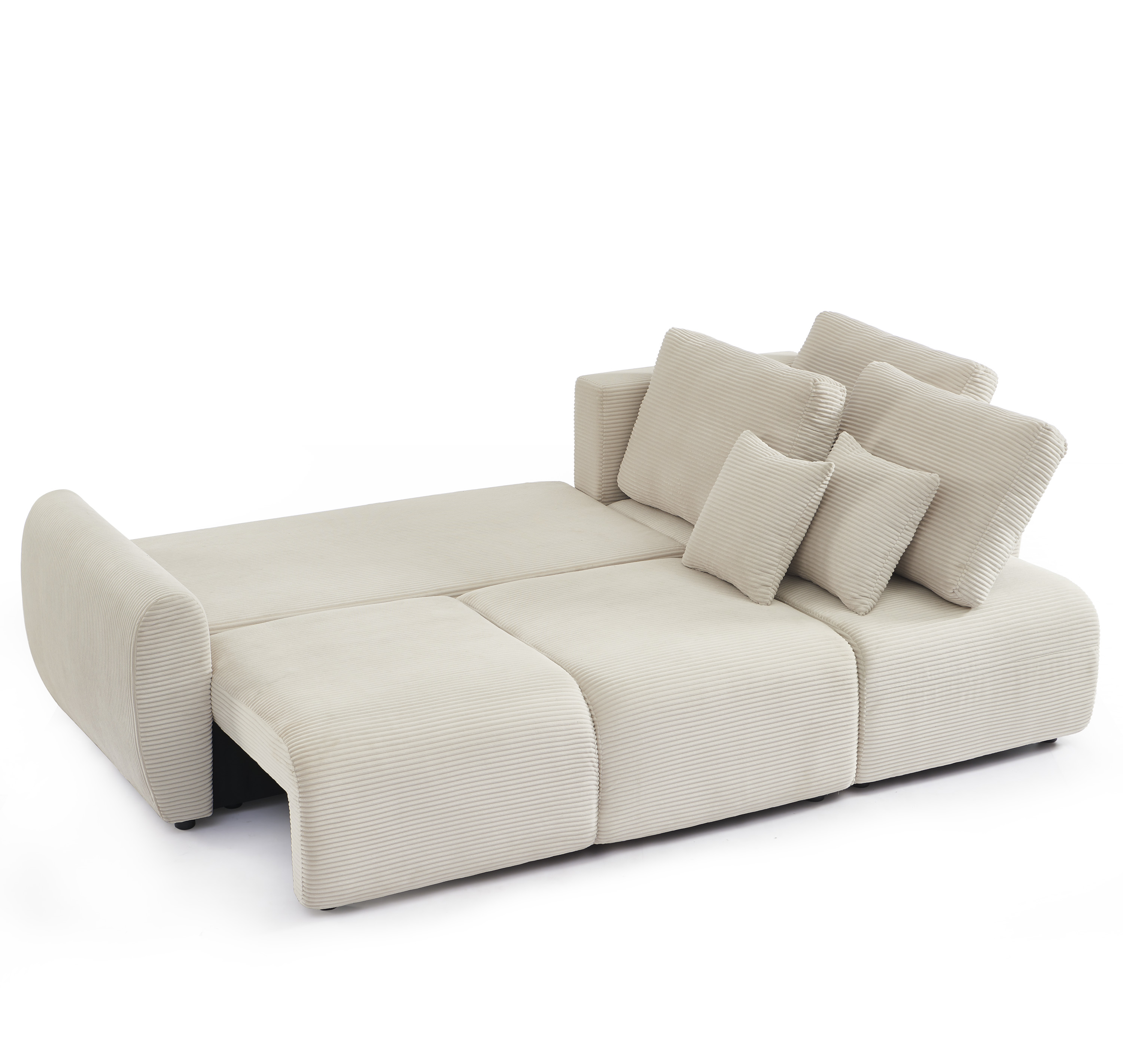 Un accoudoir est rangé dans le coffre et le deuxième accoudoir est soigneusement rangé sous la méridienne. Il se trouve dans un compartiment fermé par une fermeture éclair.