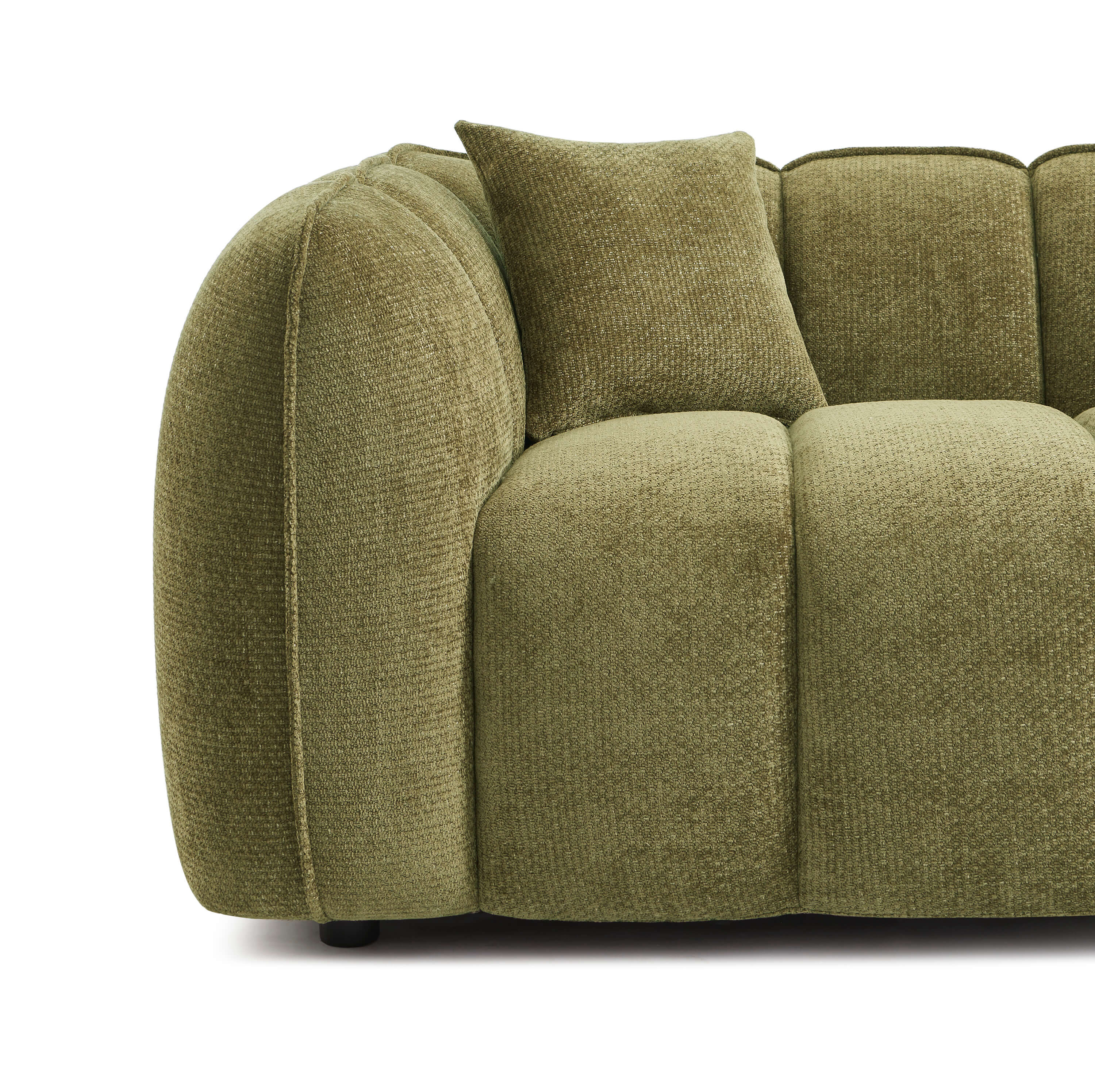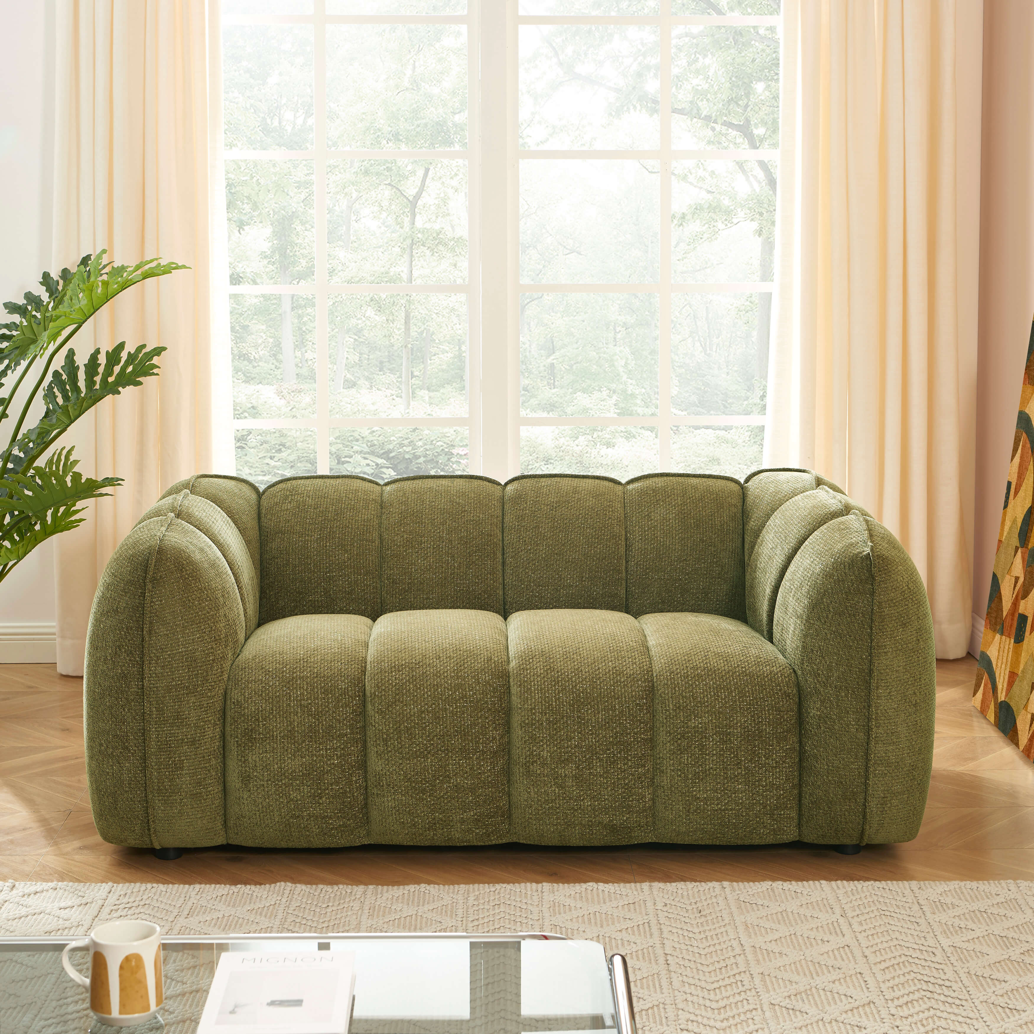 Le canapé MATILDA 2 places allie design contemporain et confort enveloppant grâce à son tissu chenille doux et ses lignes généreuses.