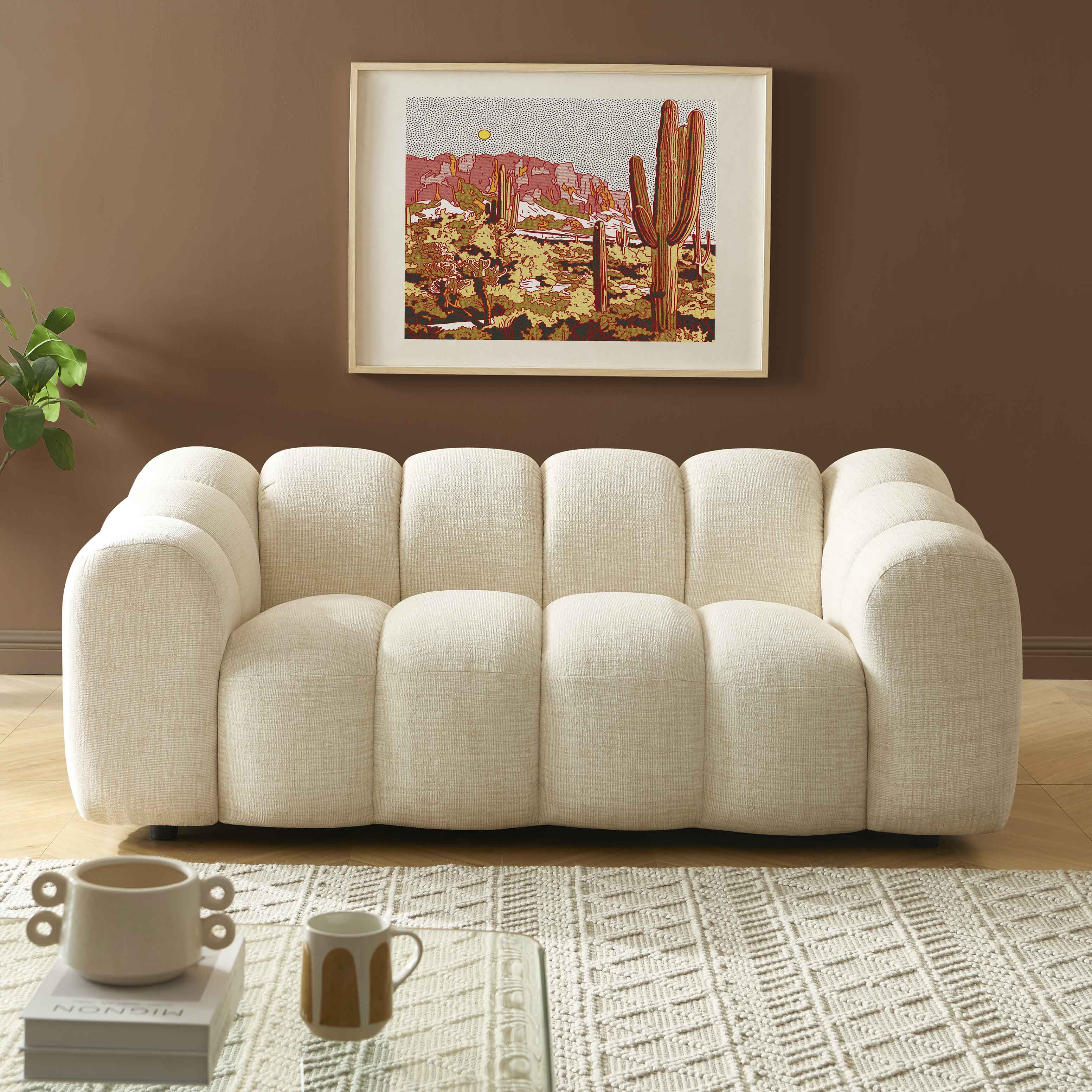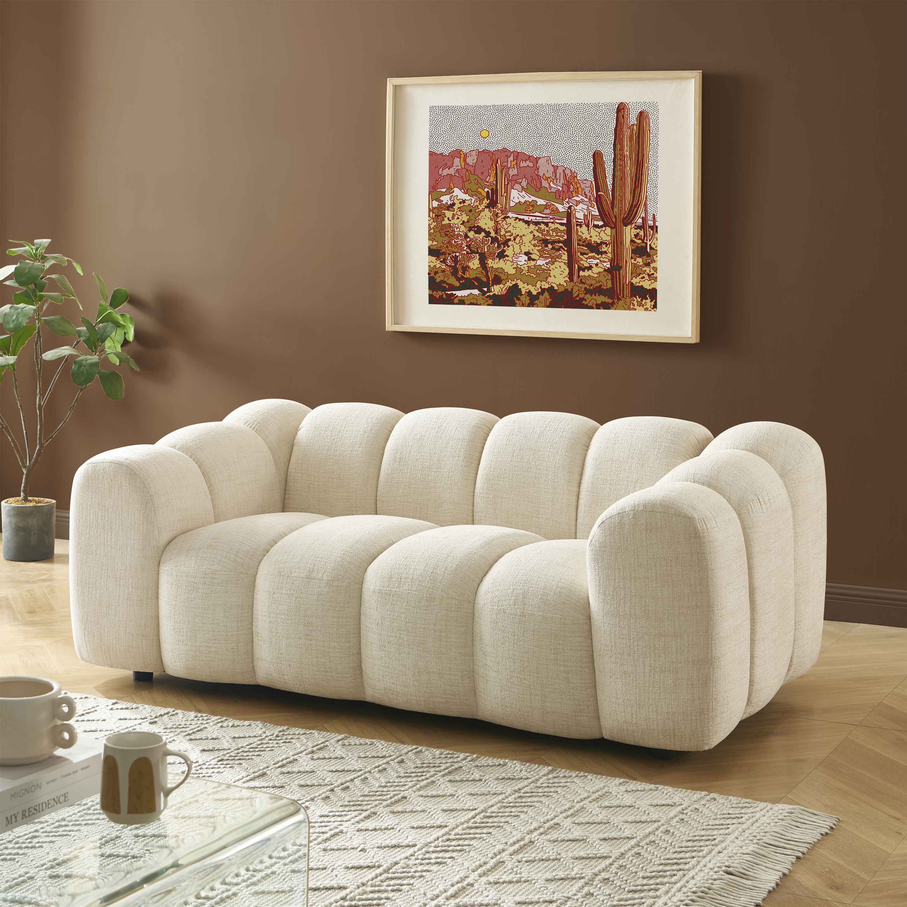 Avec ses lignes tout en rondeur et son tissu tweed, le canapé SUNNY 2 places allie confort et style pour un salon chaleureux au caractère affirmé.