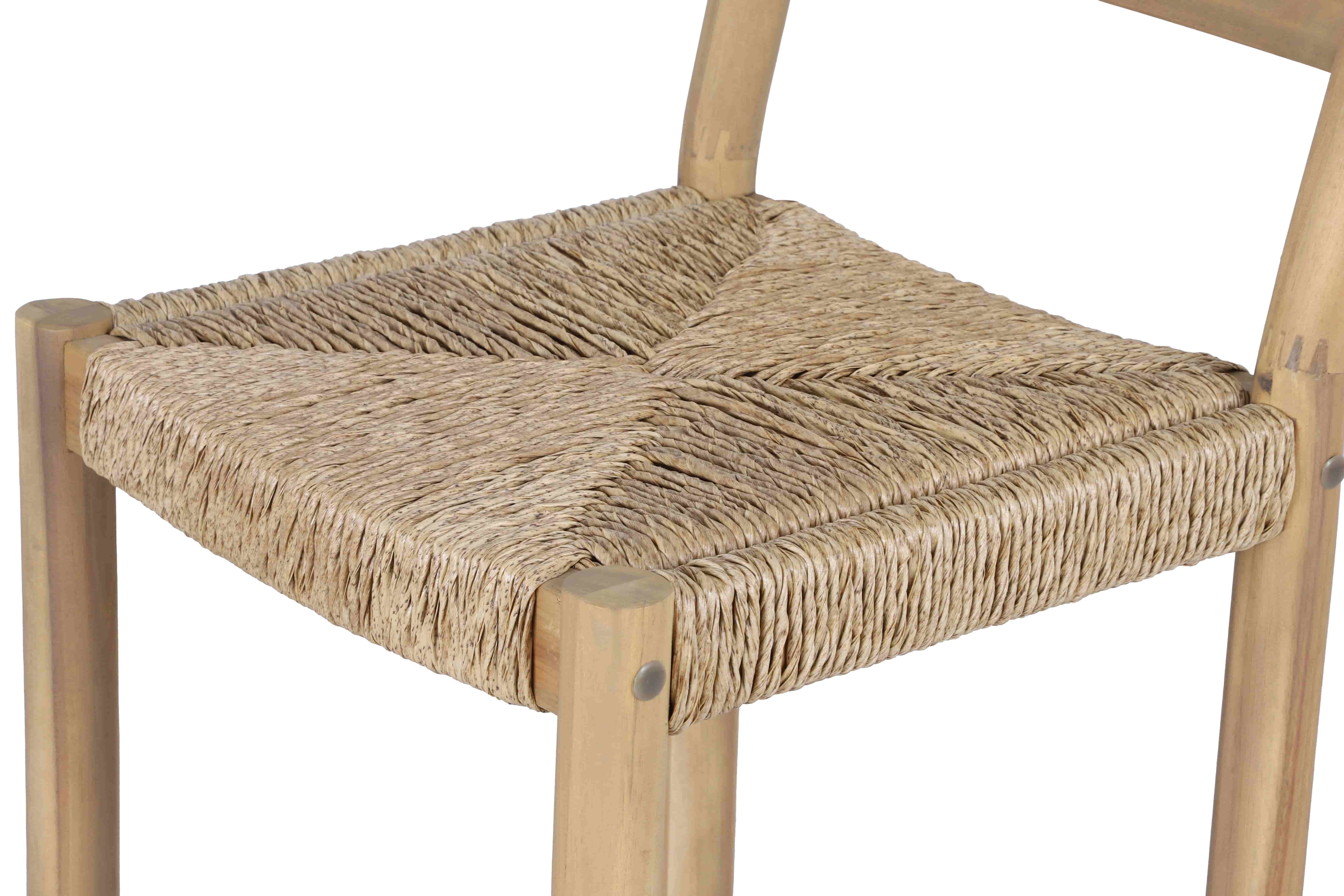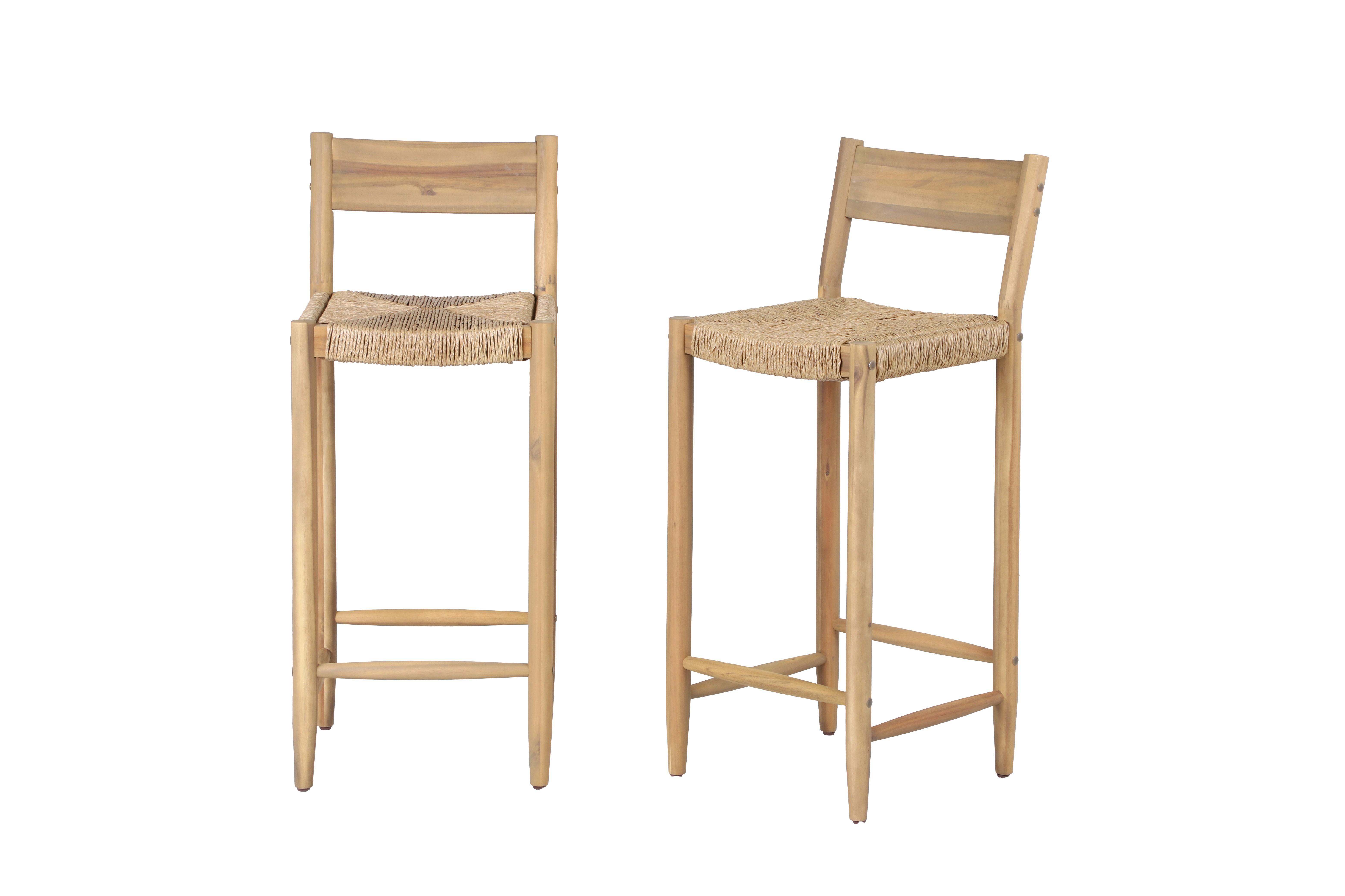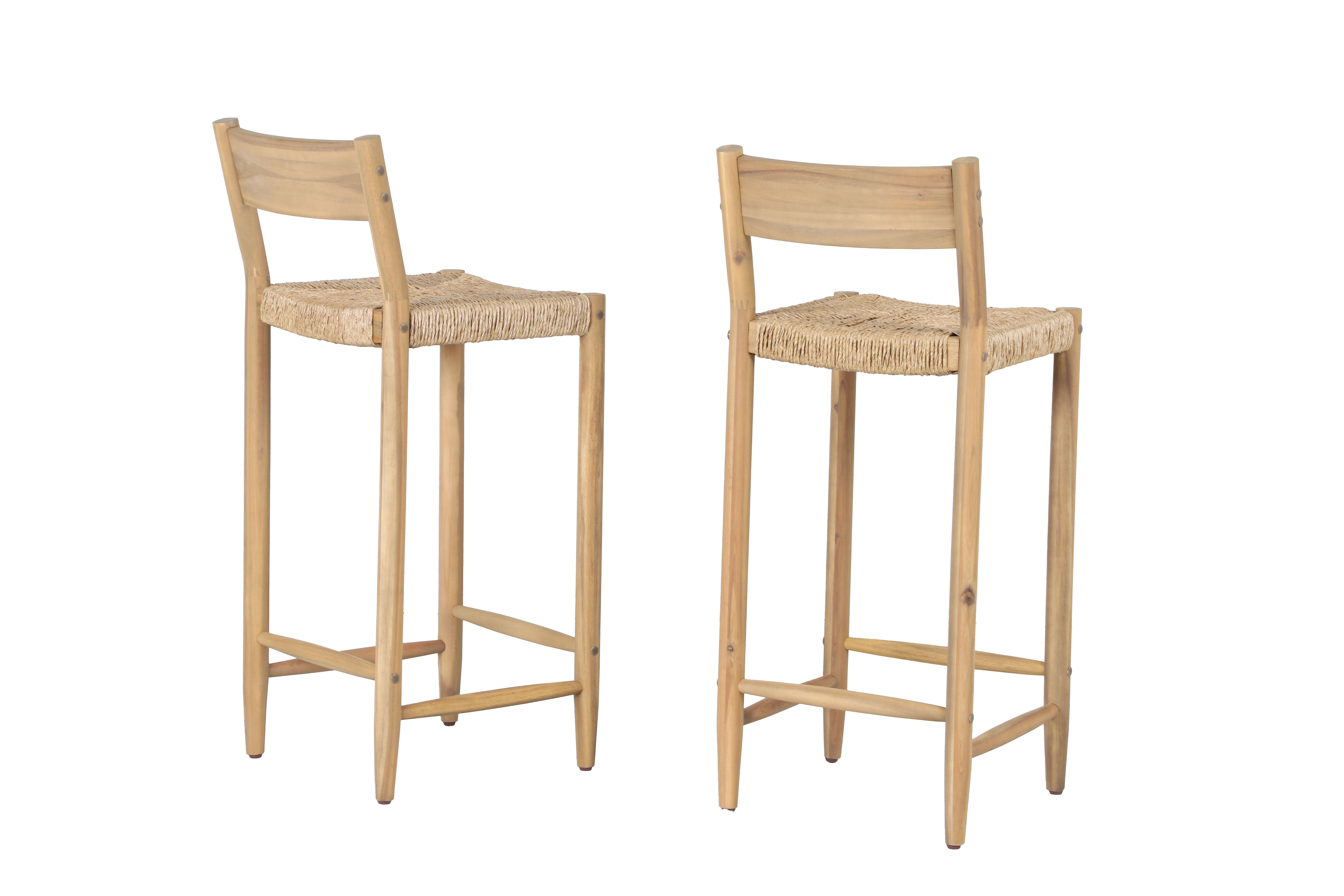 La structure et les pieds en bois d'acacia, associés à une assise en résine tressée, donnent aux tabourets NAHA une esthétique chaleureuse et naturelle. Leur style minimaliste s'adapte aussi bien à une cuisine moderne qu'à un bar extérieur convivial.