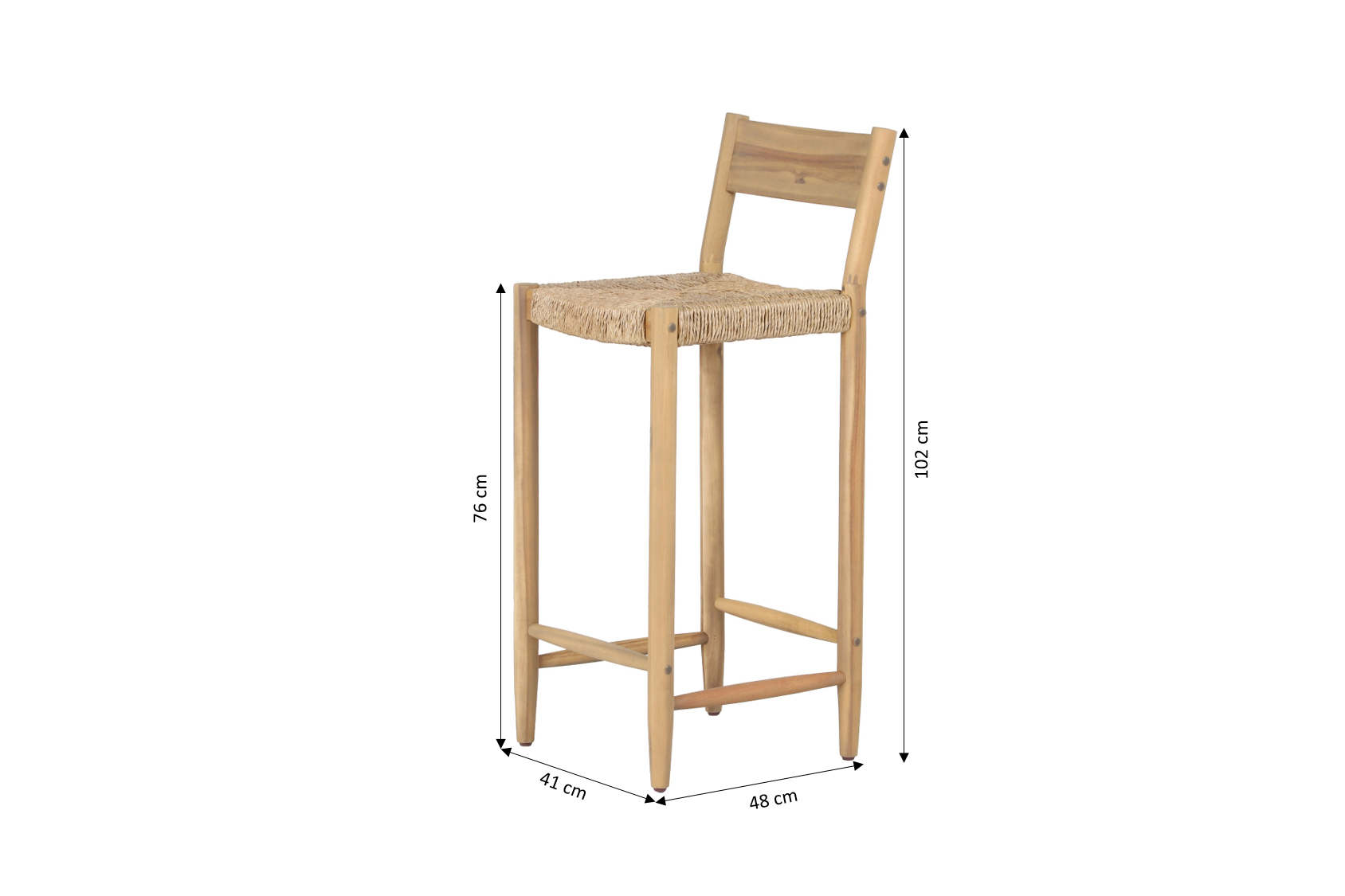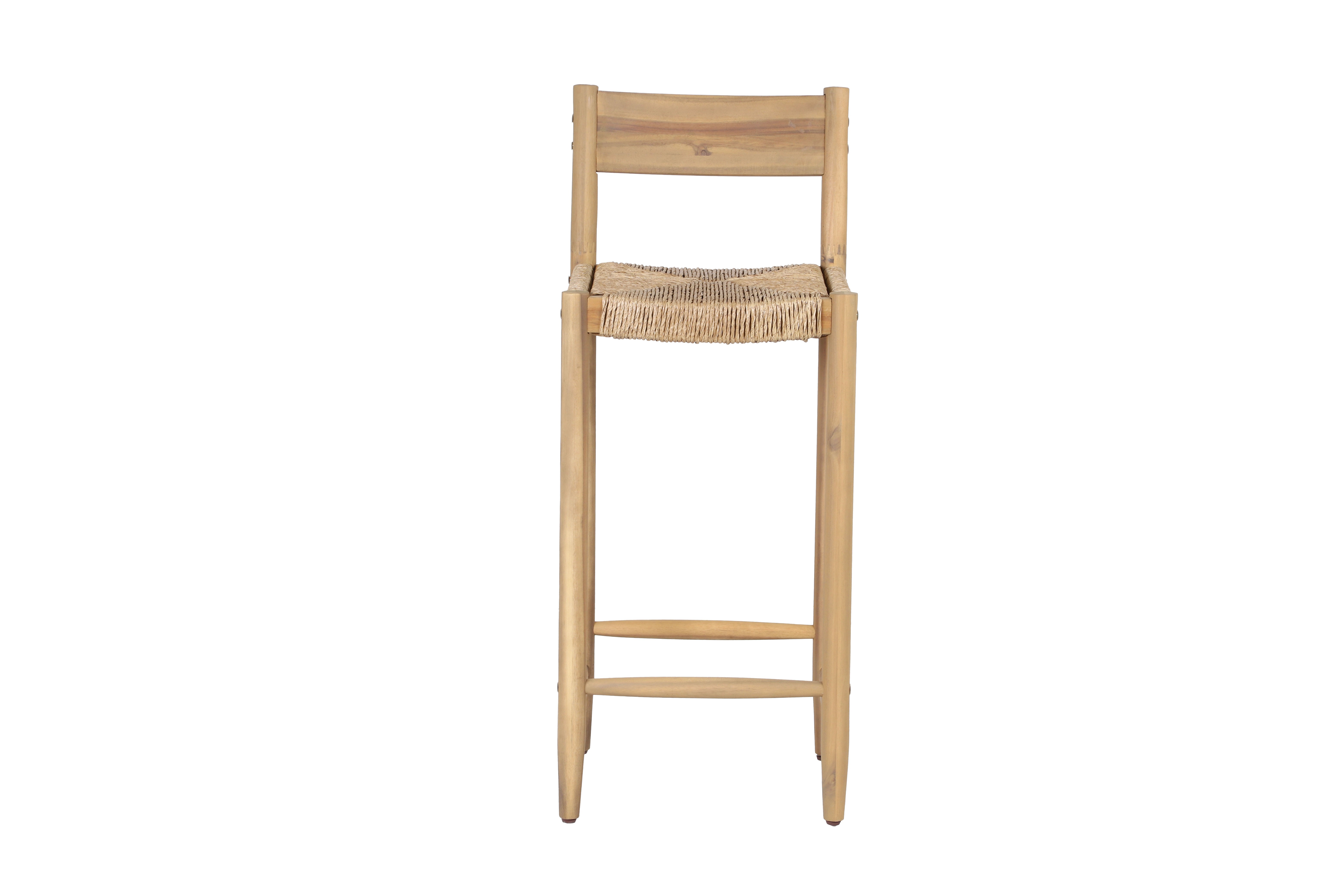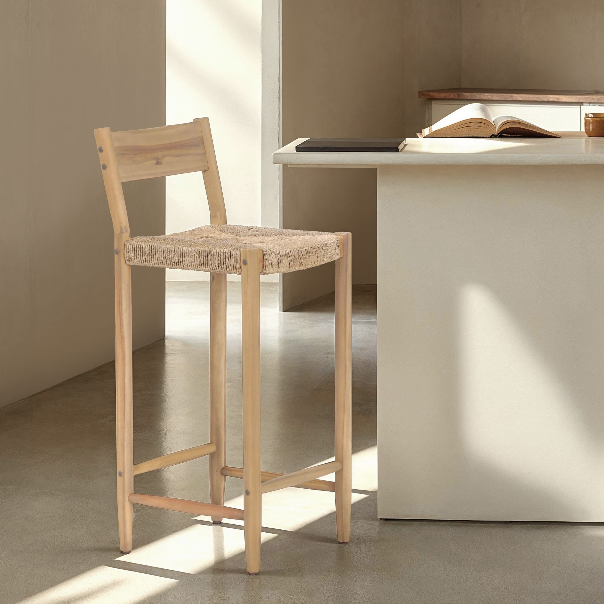 La structure et les pieds en bois d'acacia, associés à une assise en résine tressée, donnent aux tabourets NAHA une esthétique chaleureuse et naturelle. Leur style minimaliste s'adapte aussi bien à une cuisine moderne qu'à un bar extérieur convivial.