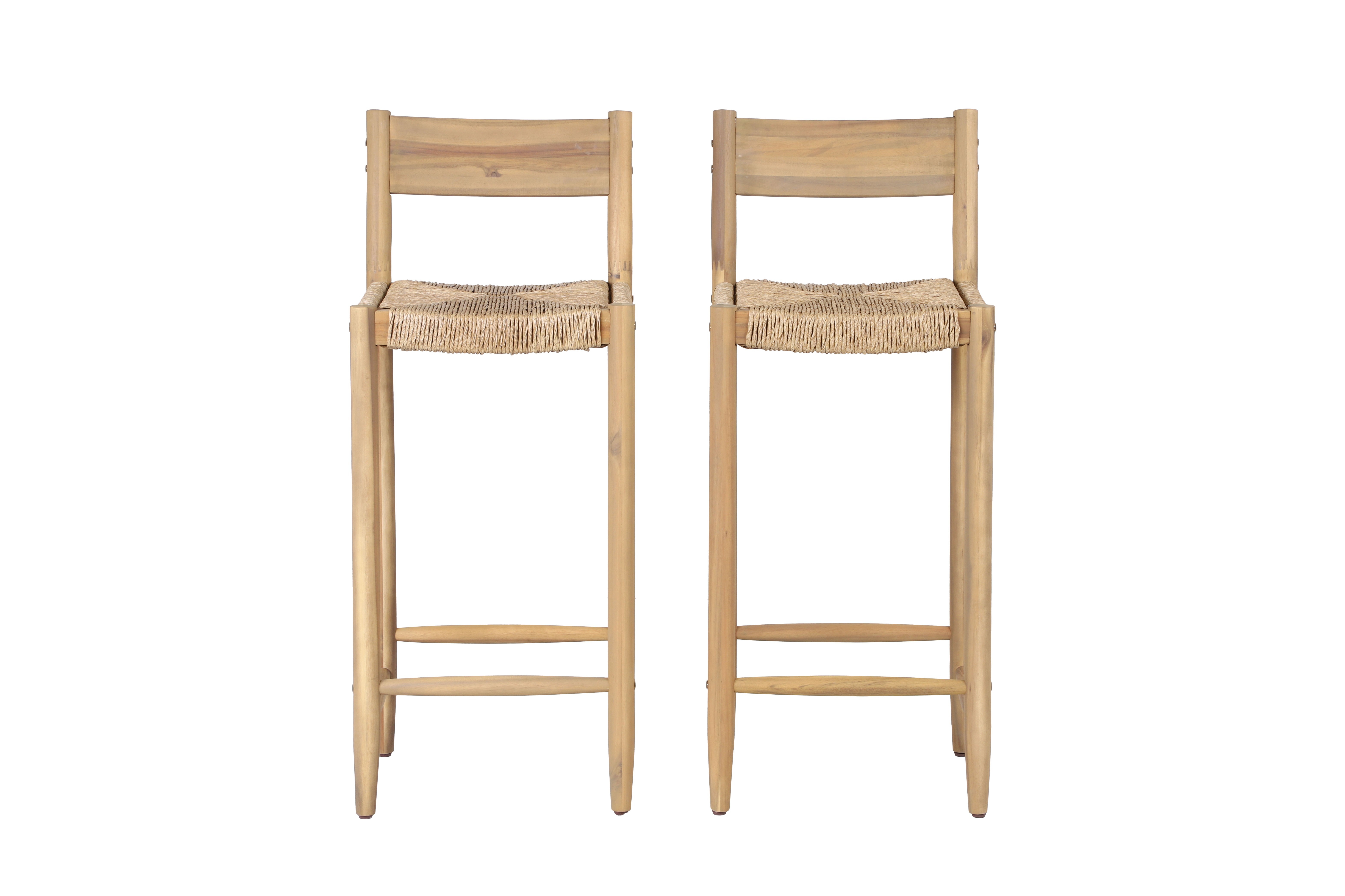 Le siège en résine tressée assure un confort optimal, tandis que la conception robuste en bois d'acacia garantit une stabilité durable. Grâce à leur polyvalence, ces tabourets s'intègrent parfaitement dans différents environnements, qu'ils soient en intérieur ou en extérieur.