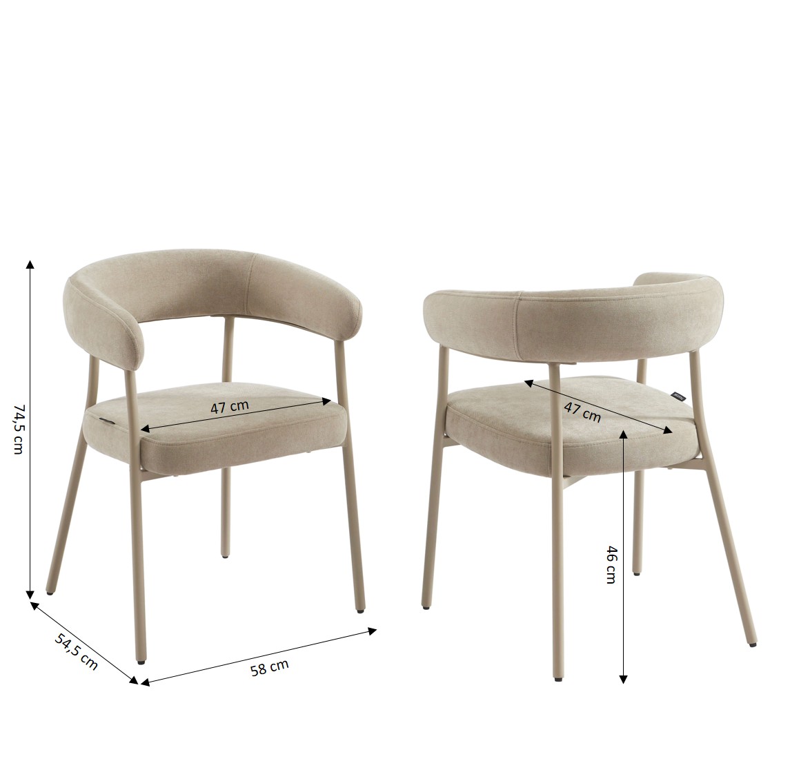 Lot de 2 chaises PANTONE tissu et pieds métal taupe