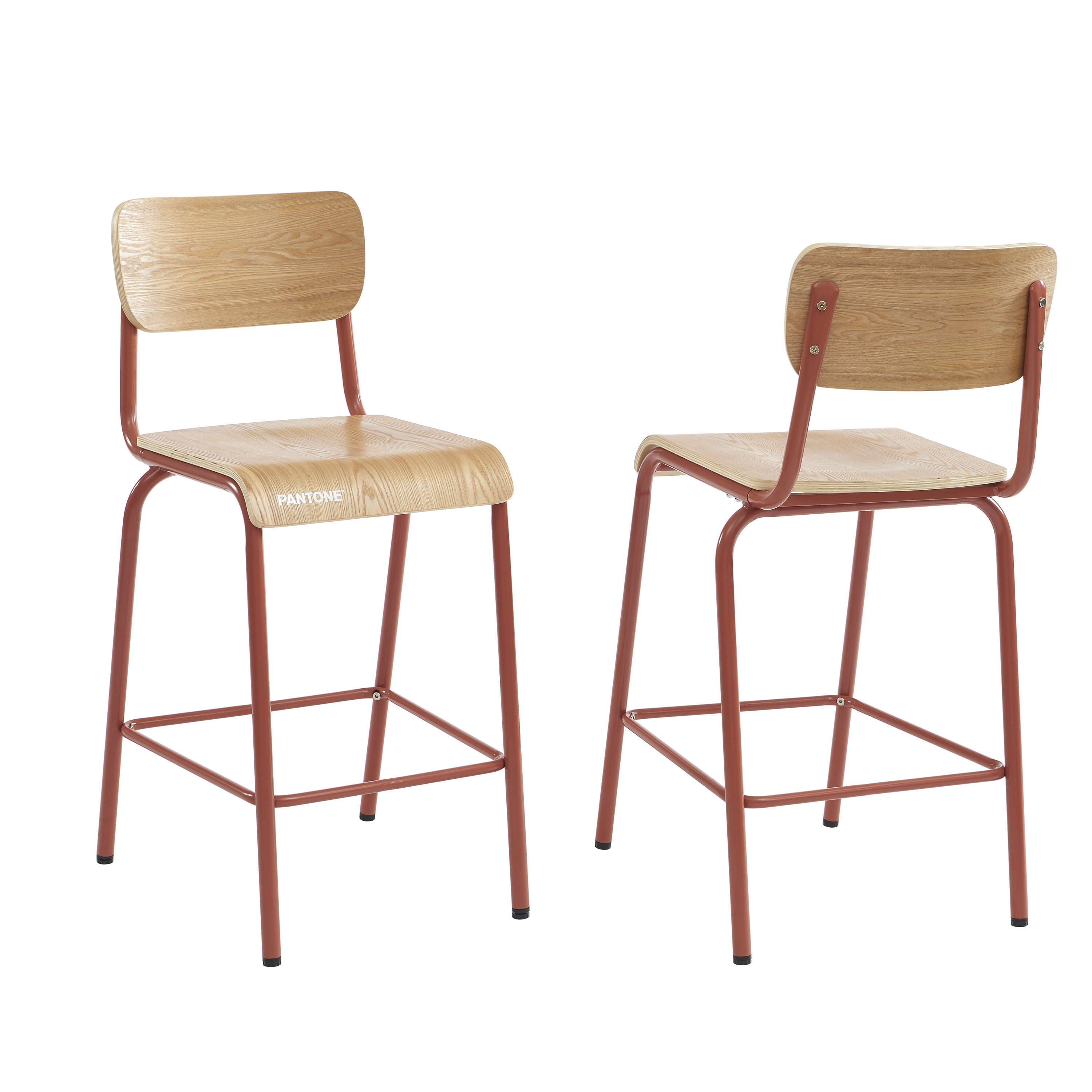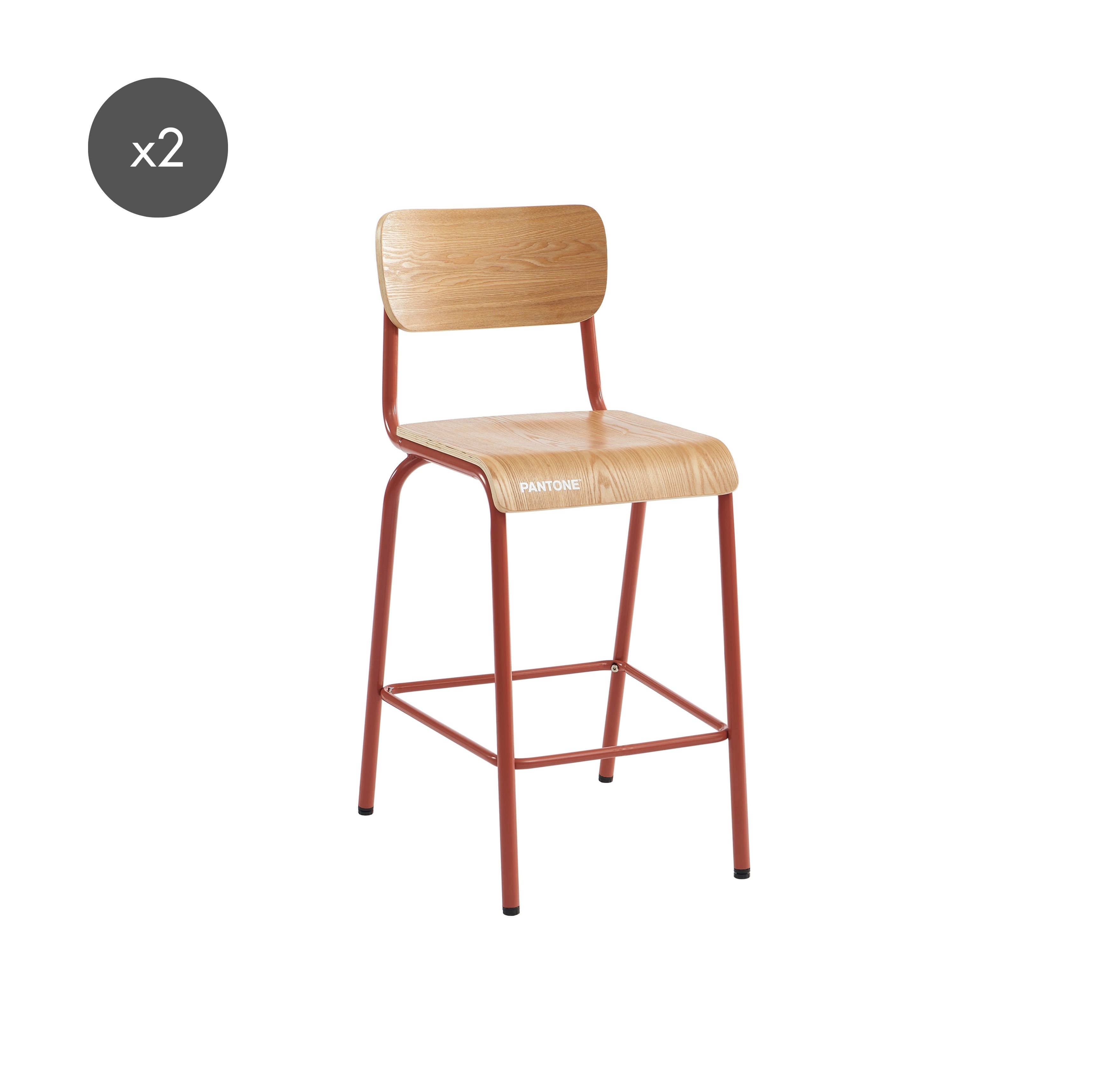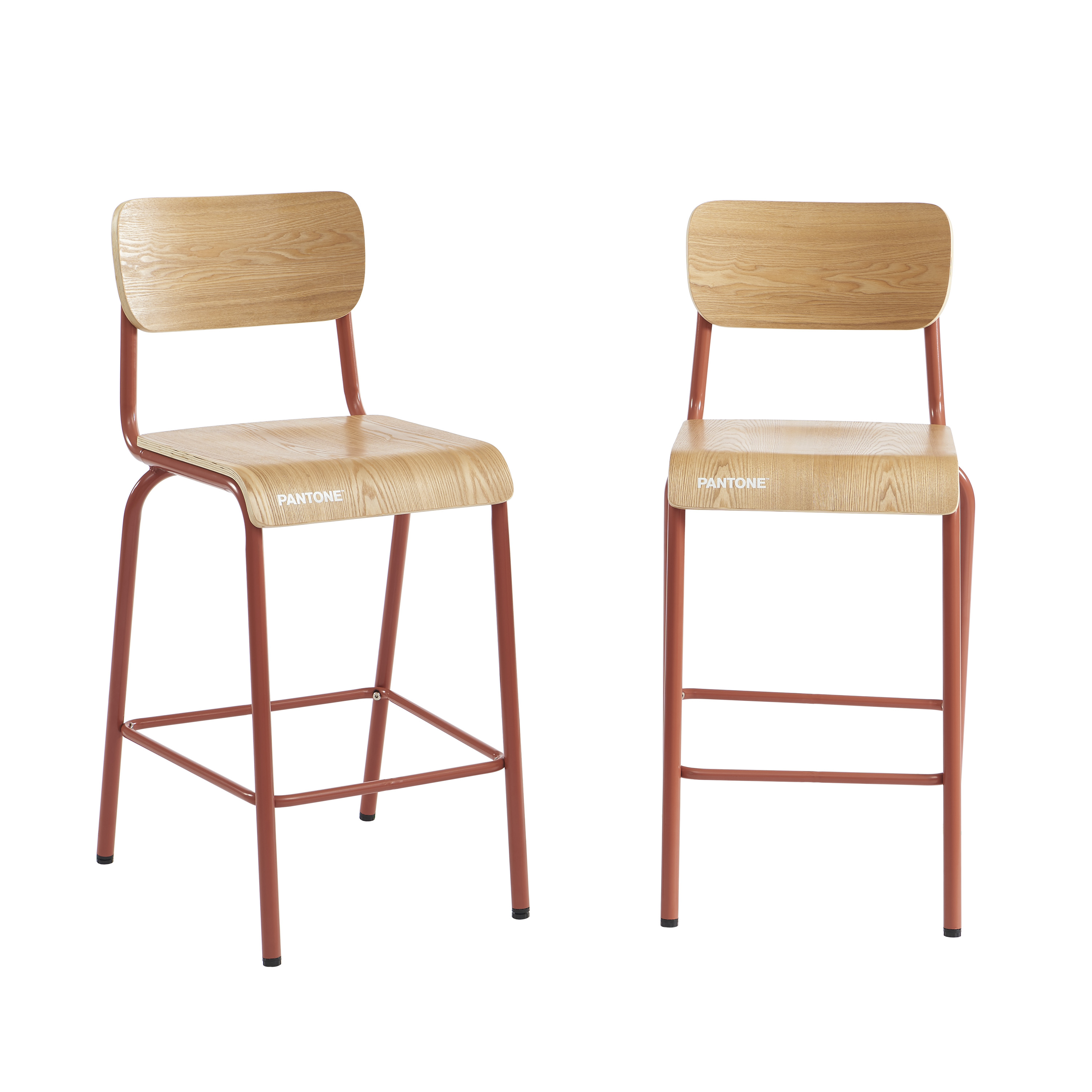 Lot de 2 chaises de bar PANTONE® en placage frêne - pieds métal - Dimensions : 48 x 59 x 98 cm - collection PANTONE®