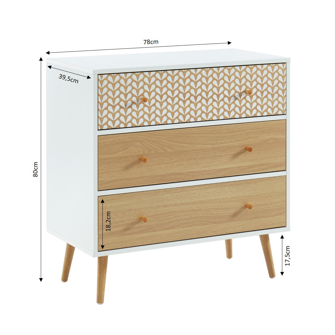 - 3 tiroirs, dont 1 à motifs