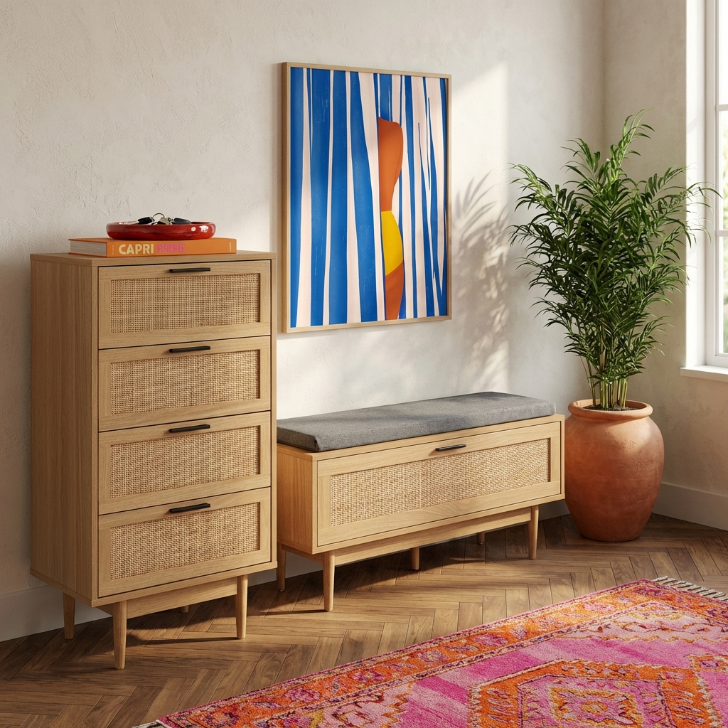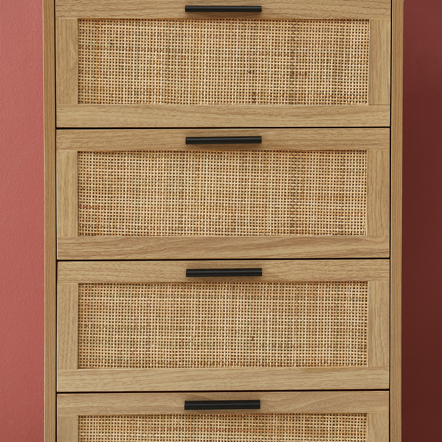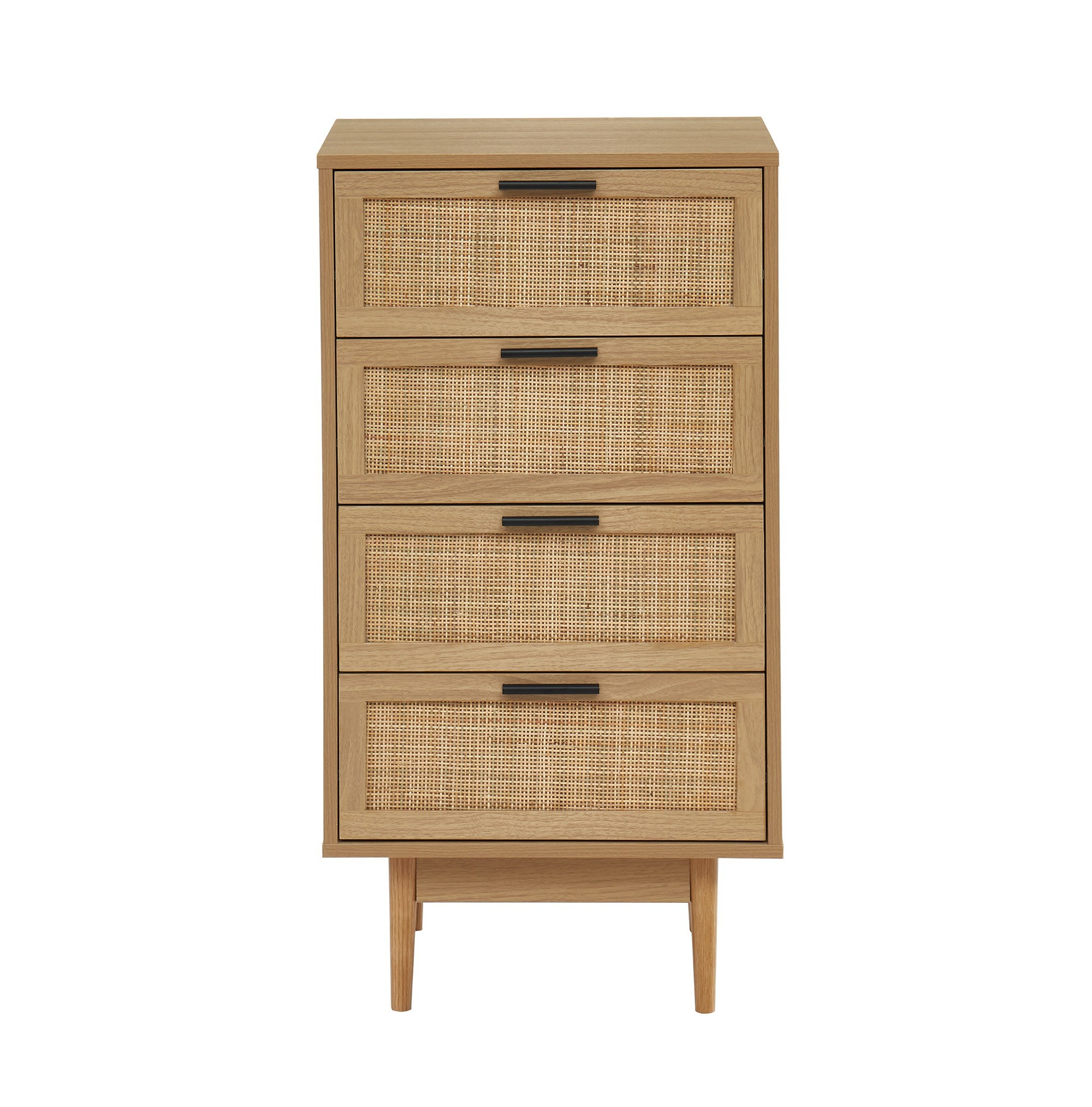 Chiffonnier AMANA effet chêne et cannage rotin 4 tiroirs 50cm