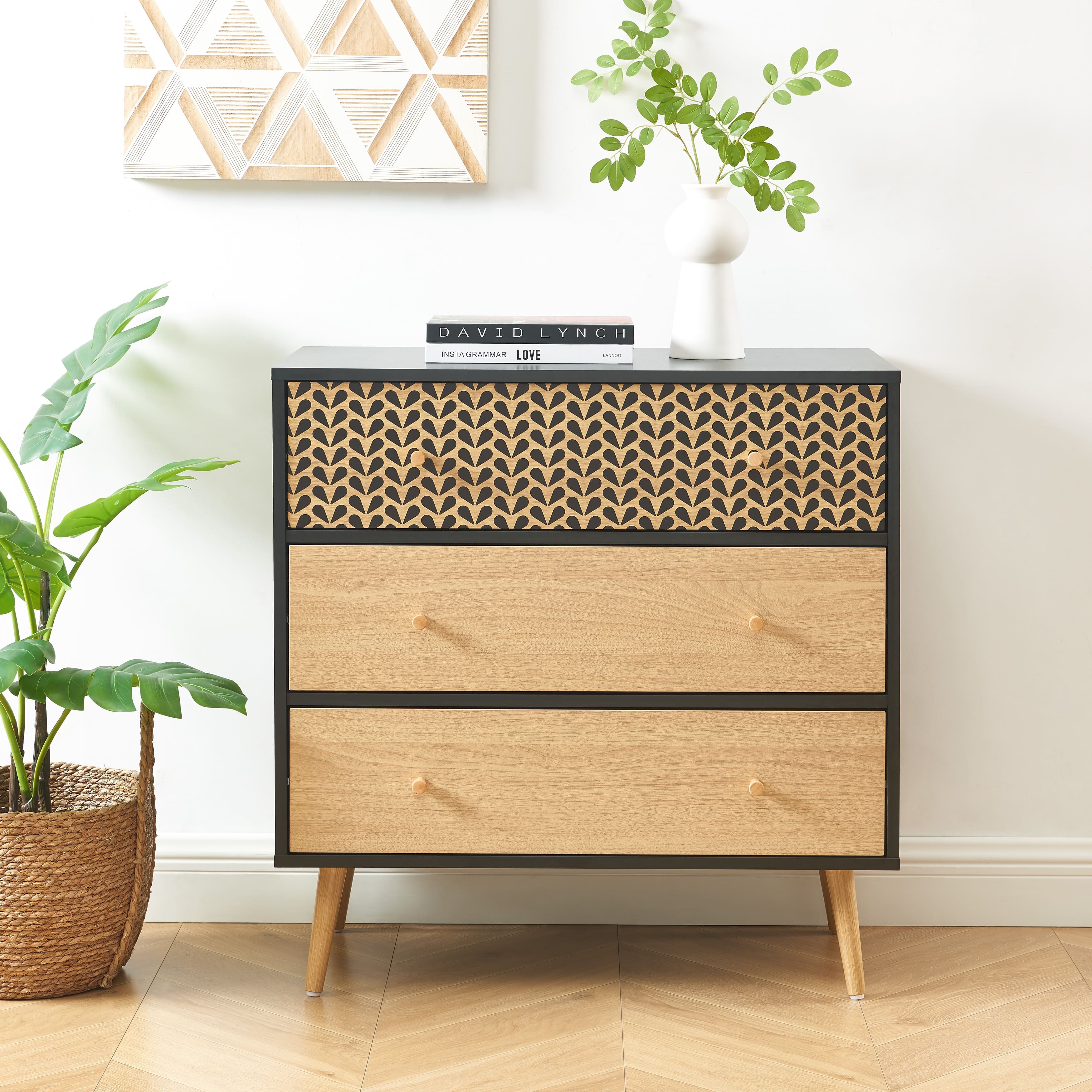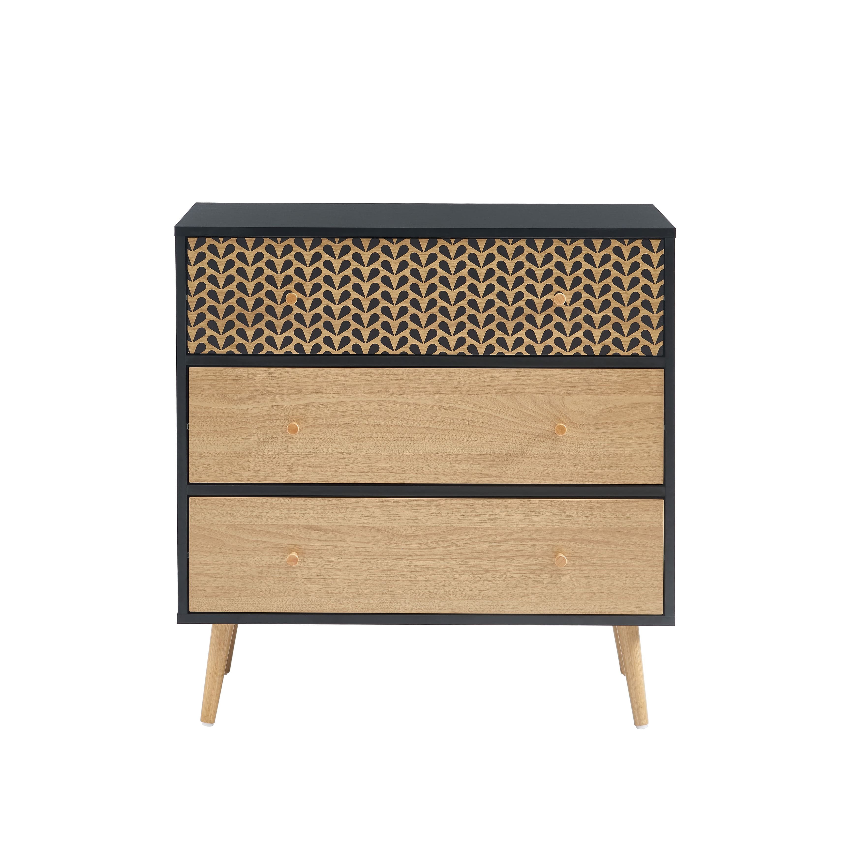 Alliez esthétisme et practicité avec la commode CAPUCINE. Rangez vos vêtements ou encore vos objets avec les tiroirs de la commode. Plongez dans l'atmosphère scandinave avec la commode grâce à son revêtement effet bois et noir, que ce soit pour une chambre d'adulte ou d'enfant.