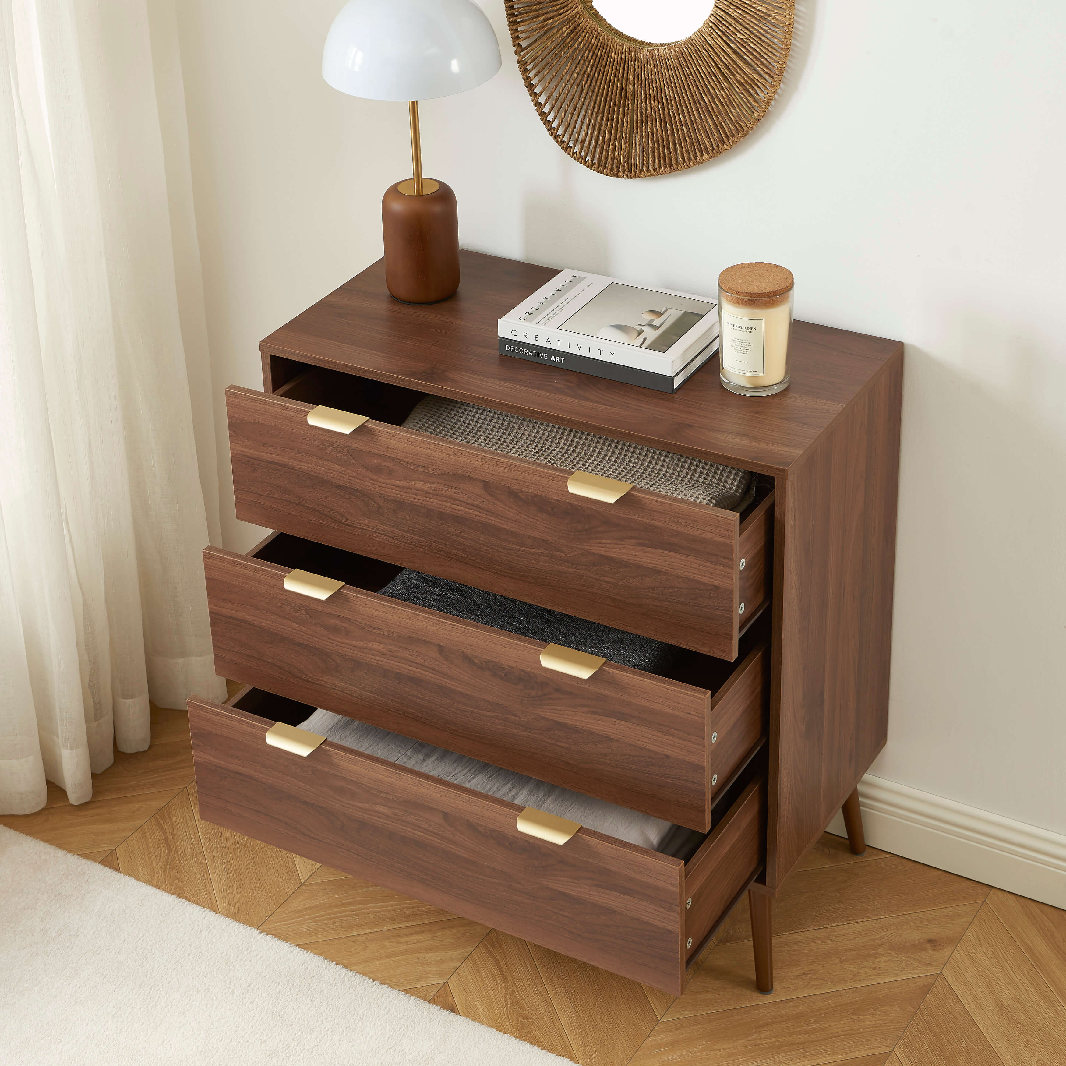 Commode JEANNE 3 tiroirs effet noyer 80cm