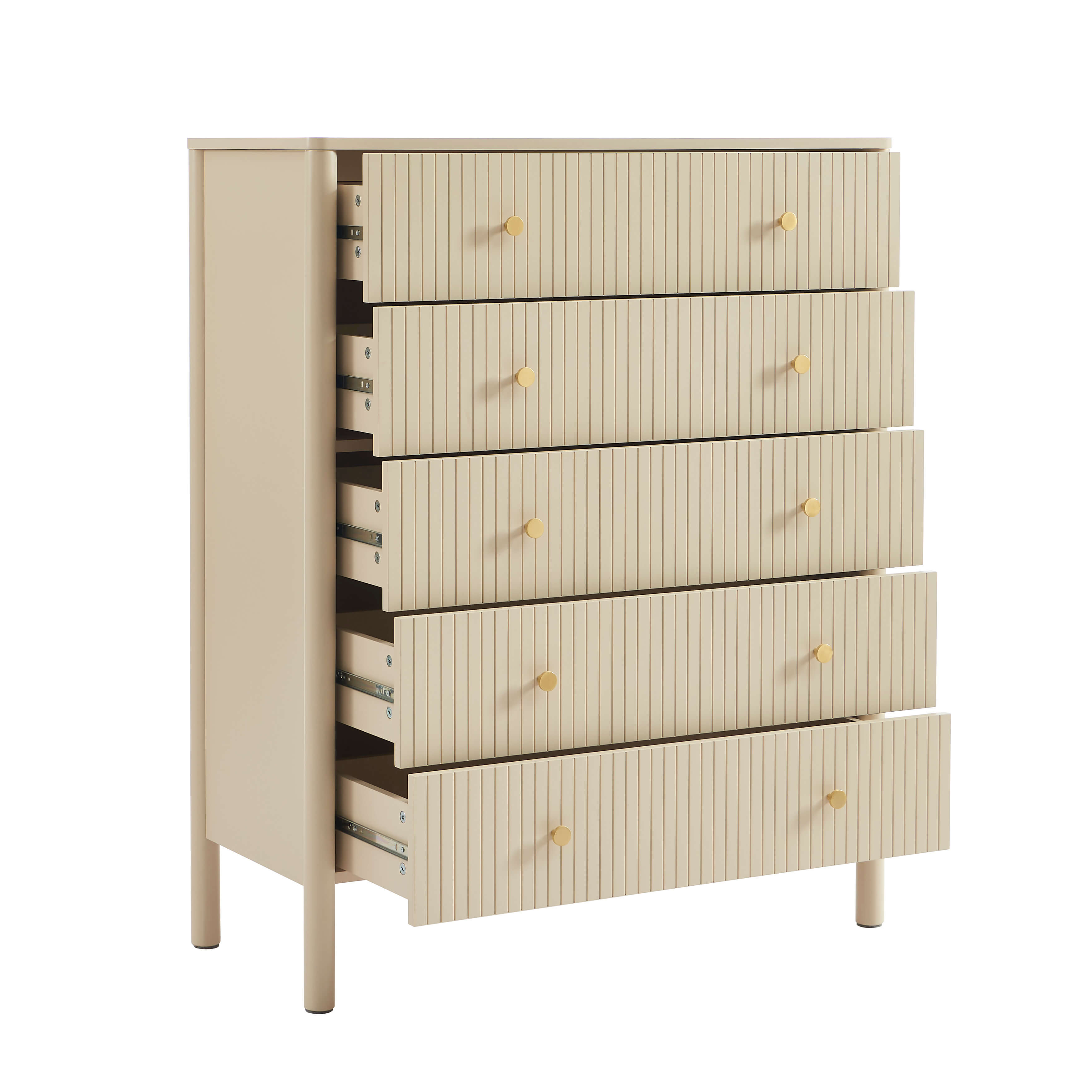 Commode CLEO laqué beige 5 tiroirs 90cm
