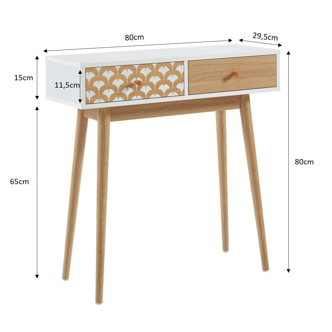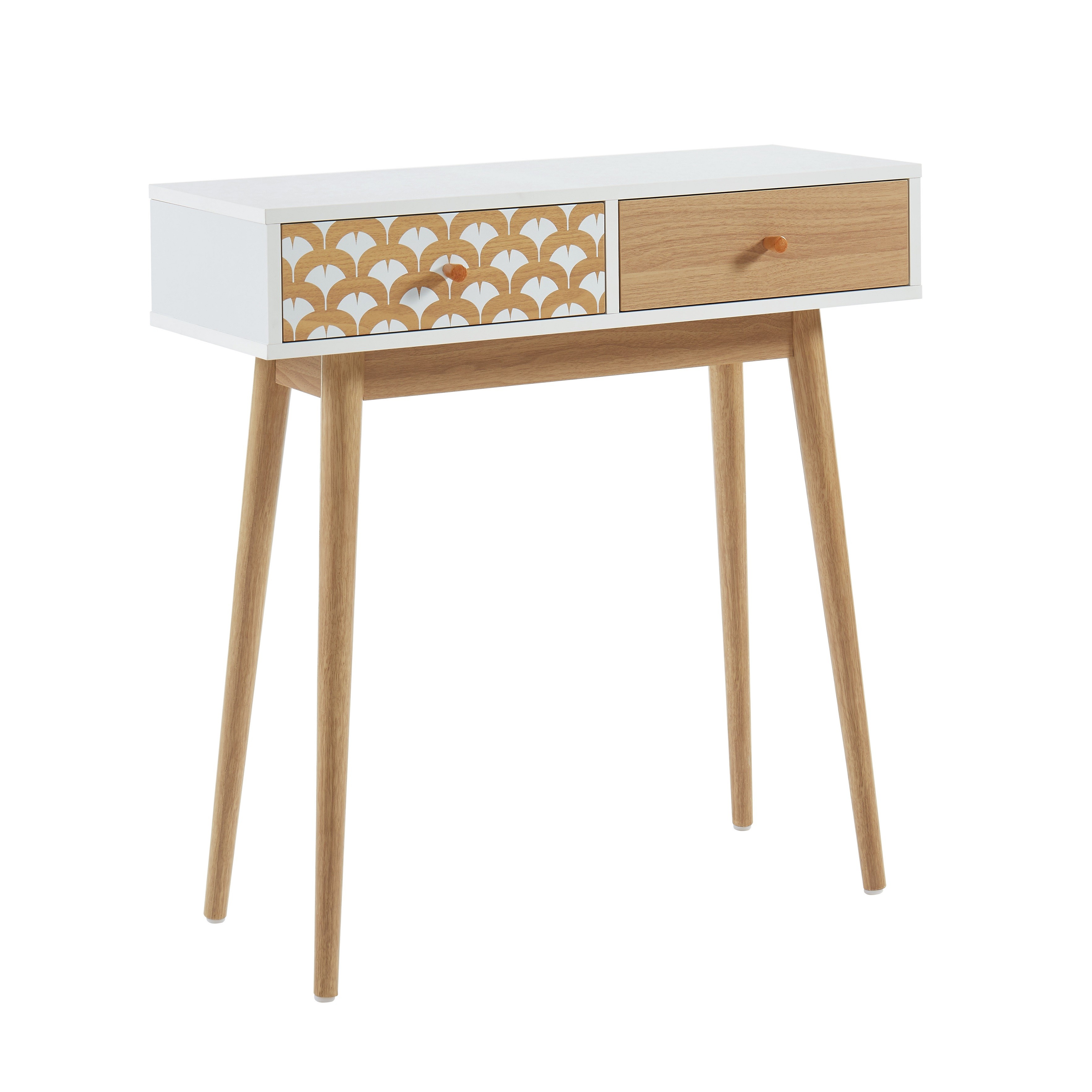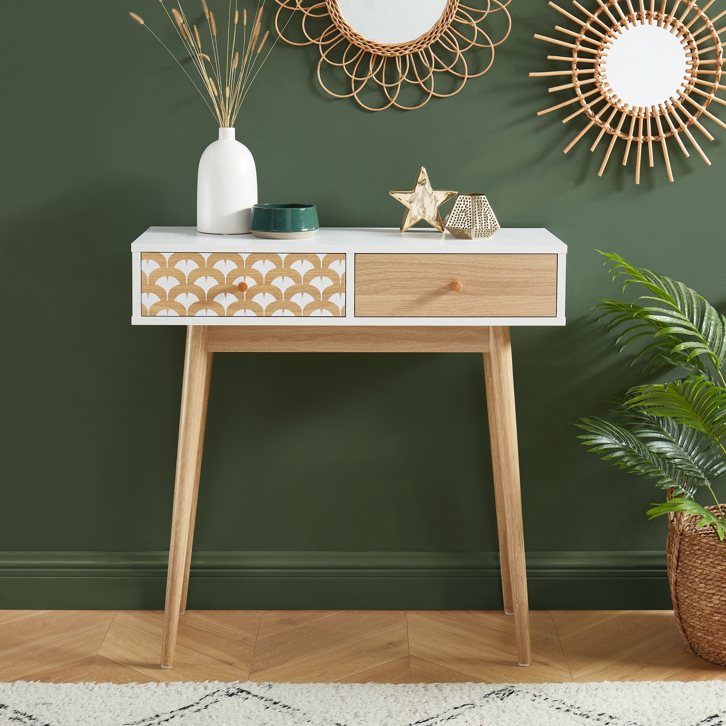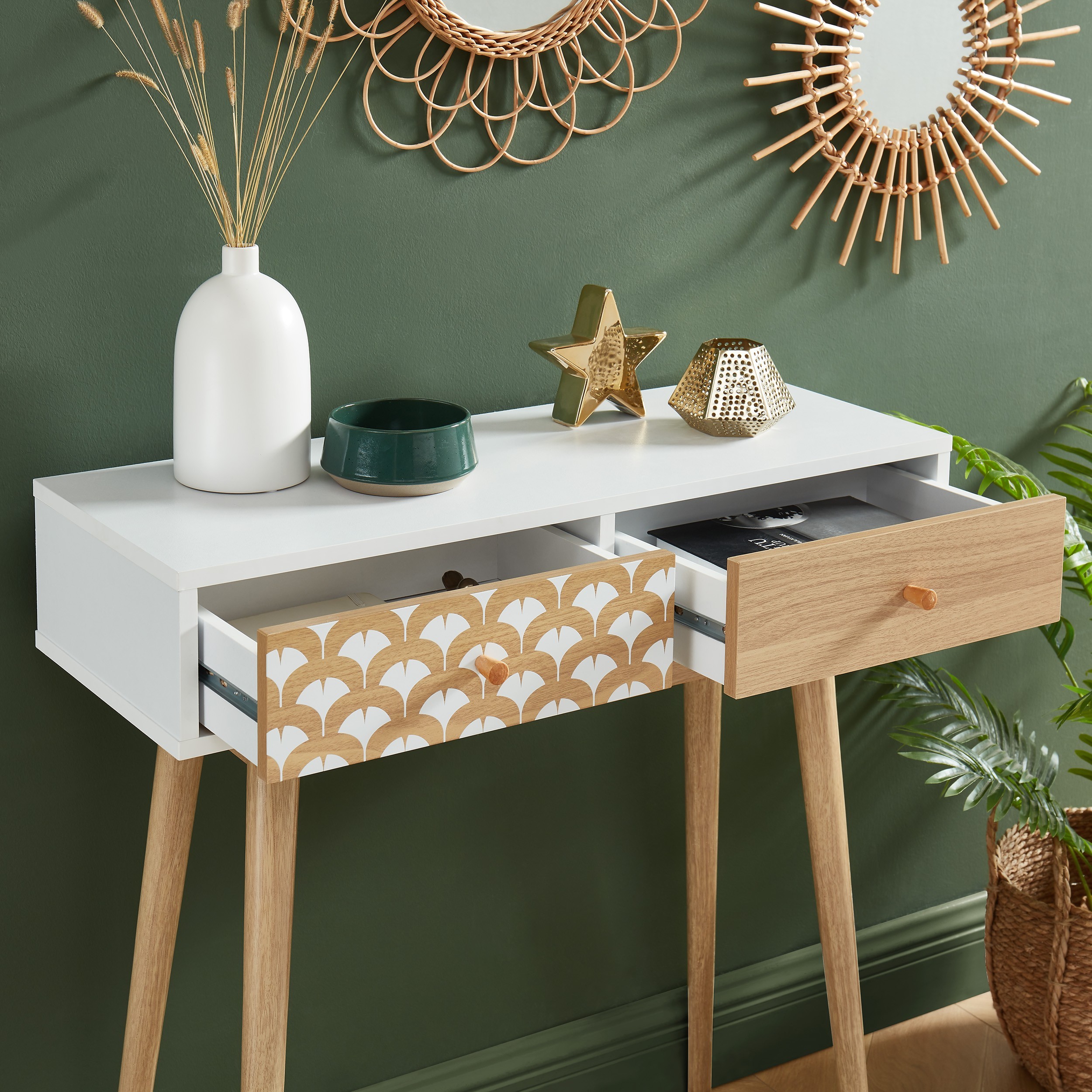 Console UTAH à imprimés - 2 tiroirs - Coloris blanc et effet bois - L80cm
