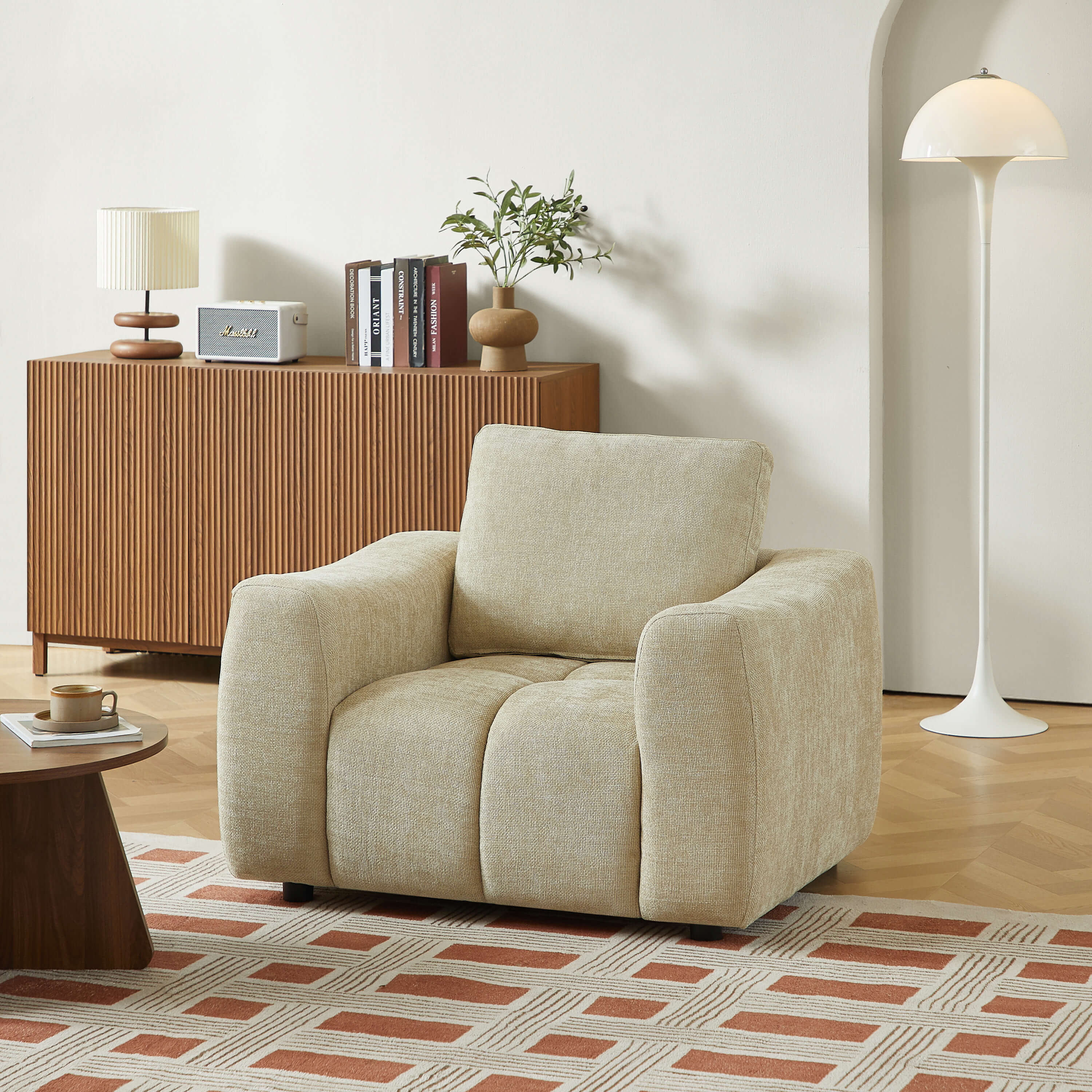 L'ensemble KEREA en tissu chenille, composé d'un canapé droit fixe 3 places et d'un fauteuil 1 place, allie élégance et confort. Son revêtement doux, associé à des assises confortables, offre un espace de détente idéal, seul ou à plusieurs.