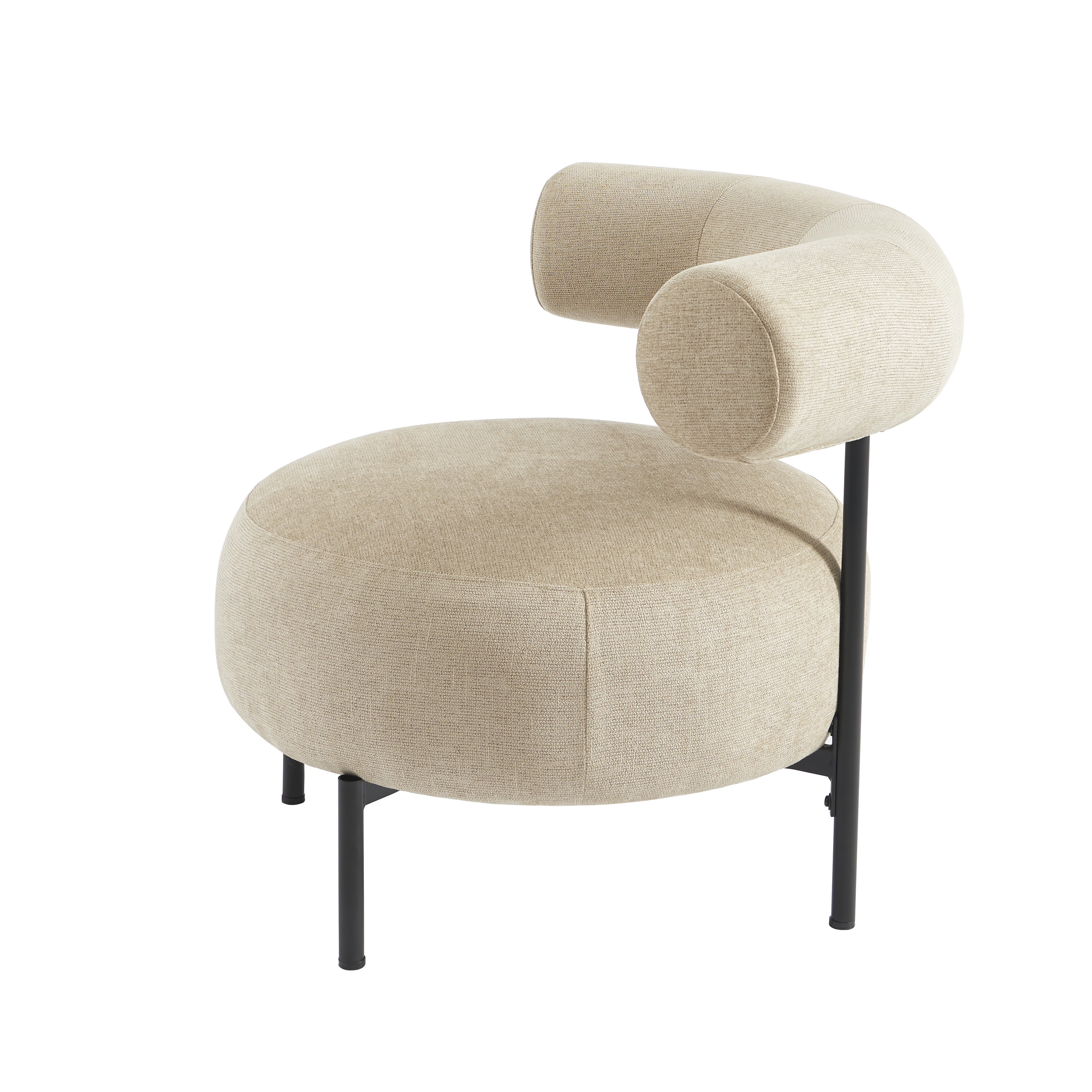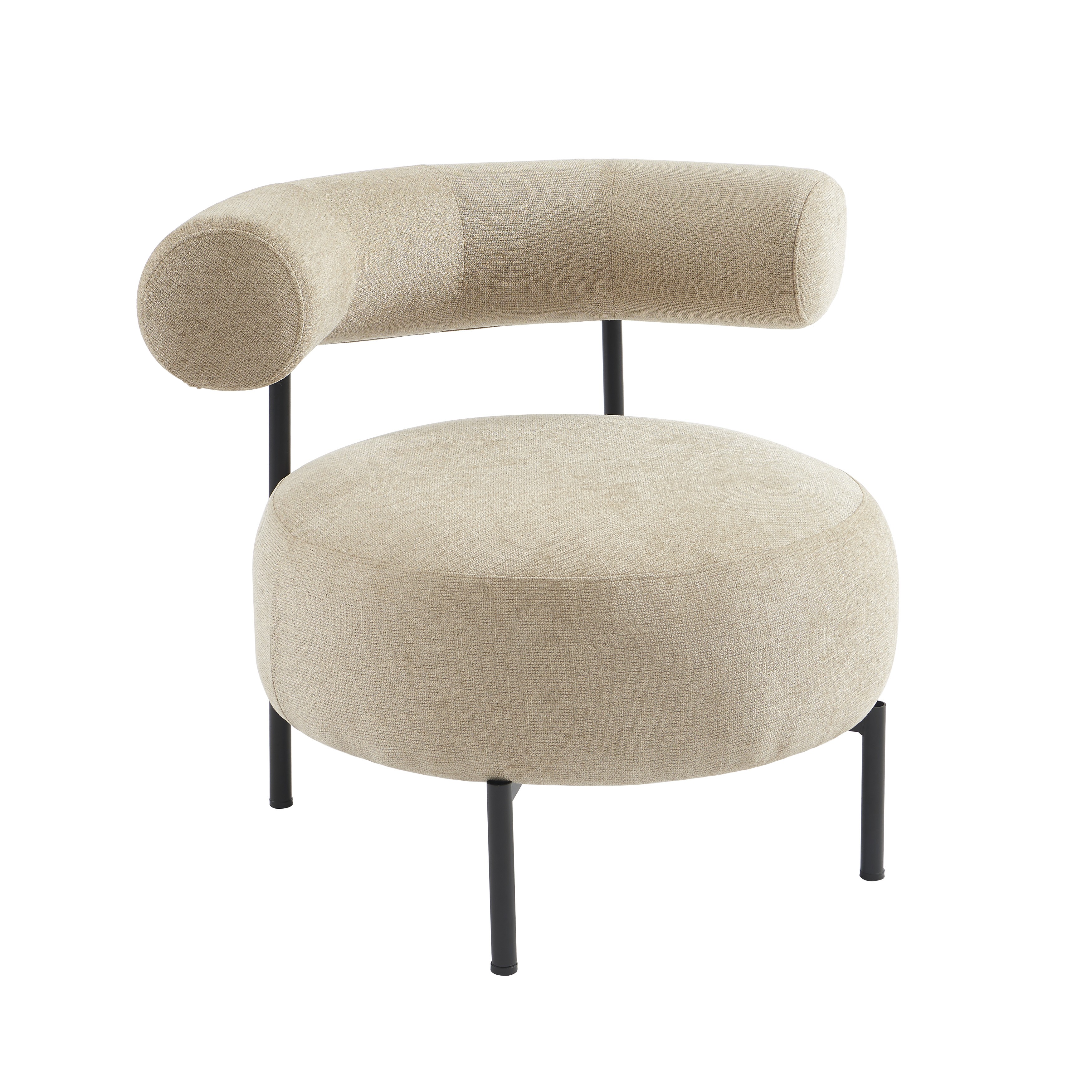 Fauteuil FAREL tissu chenille beige et pieds métal noir
