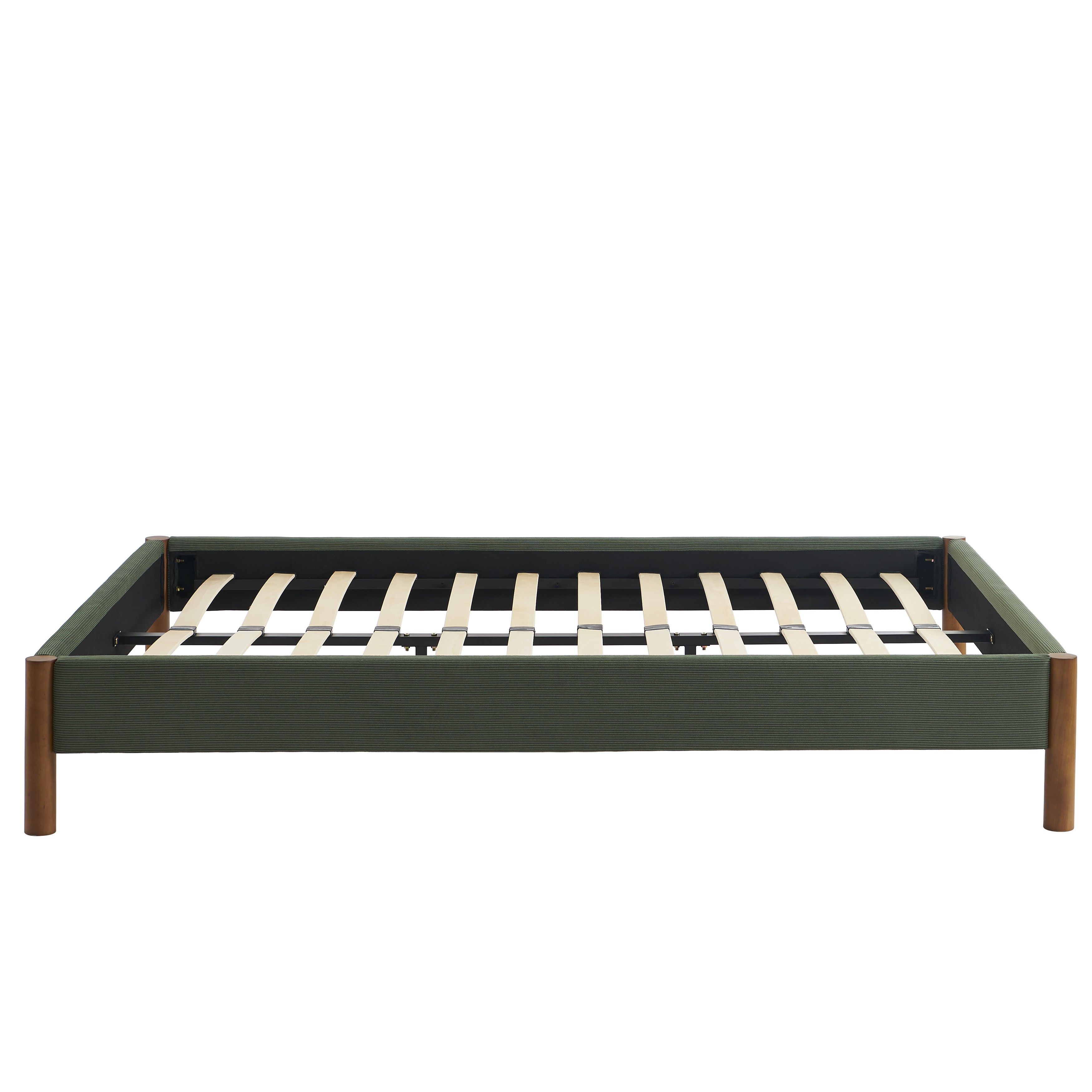 Lit BOWI velours côtelé kaki 140x190 sommier inclus
