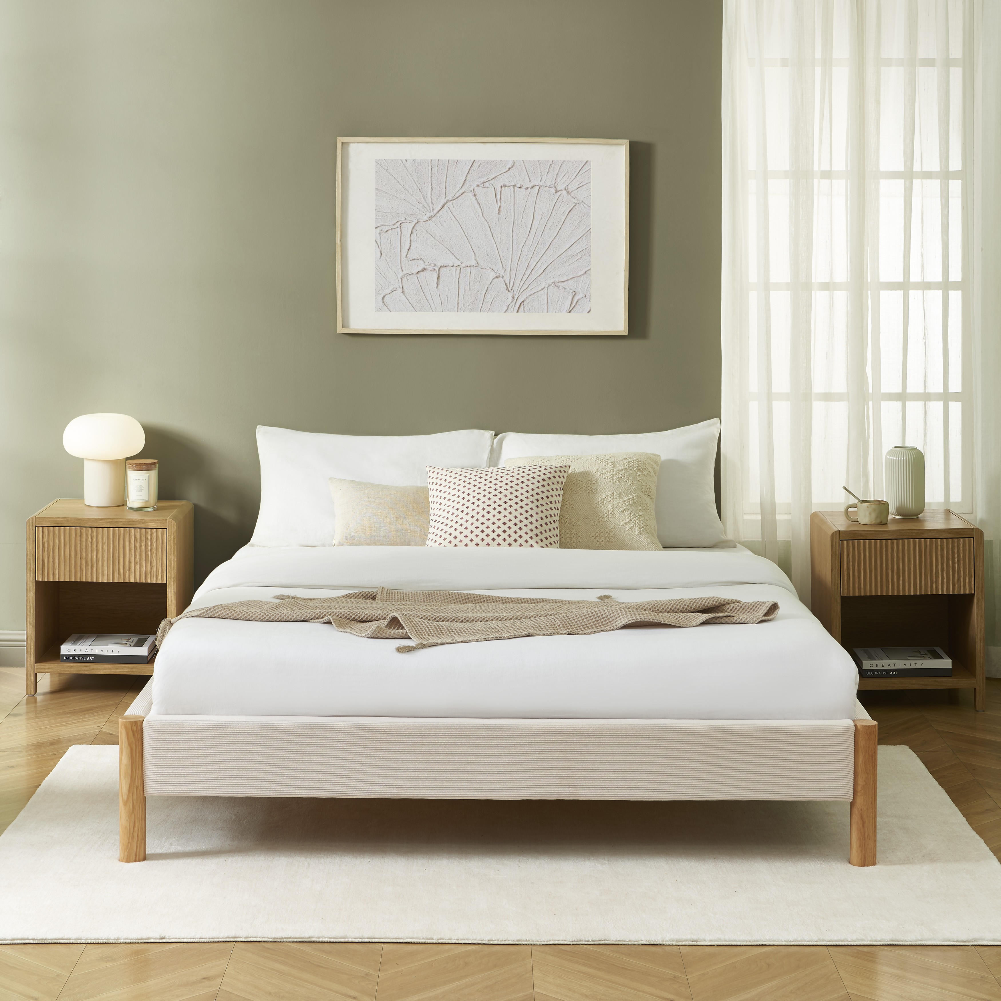 Avec son revêtement en velours côtelé et son design minimaliste, le lit BOWI trouve facilement sa place dans différents univers déco. Son allure épurée s'intègre parfaitement dans une chambre au style scandinave, où les matières naturelles et les teintes douces sont à l'honneur. Il complète également une ambiance bohème en s'associant à des textiles en lin, des tapis en fibres tressées et des accessoires en rotin. Pour une décoration plus moderne, il peut être mis en valeur avec des touches de noir, des luminaires design et du mobilier en métal ou en bois clair.