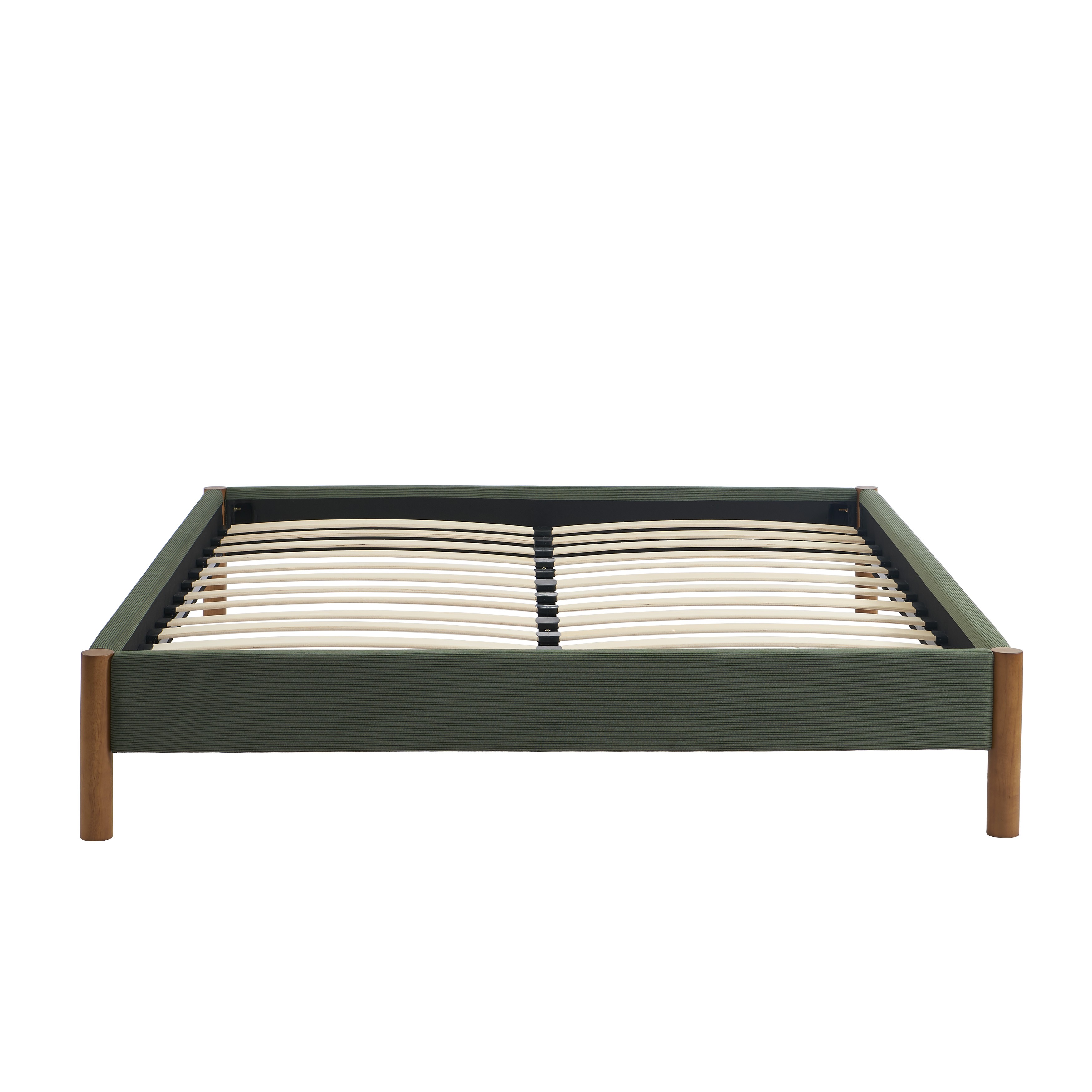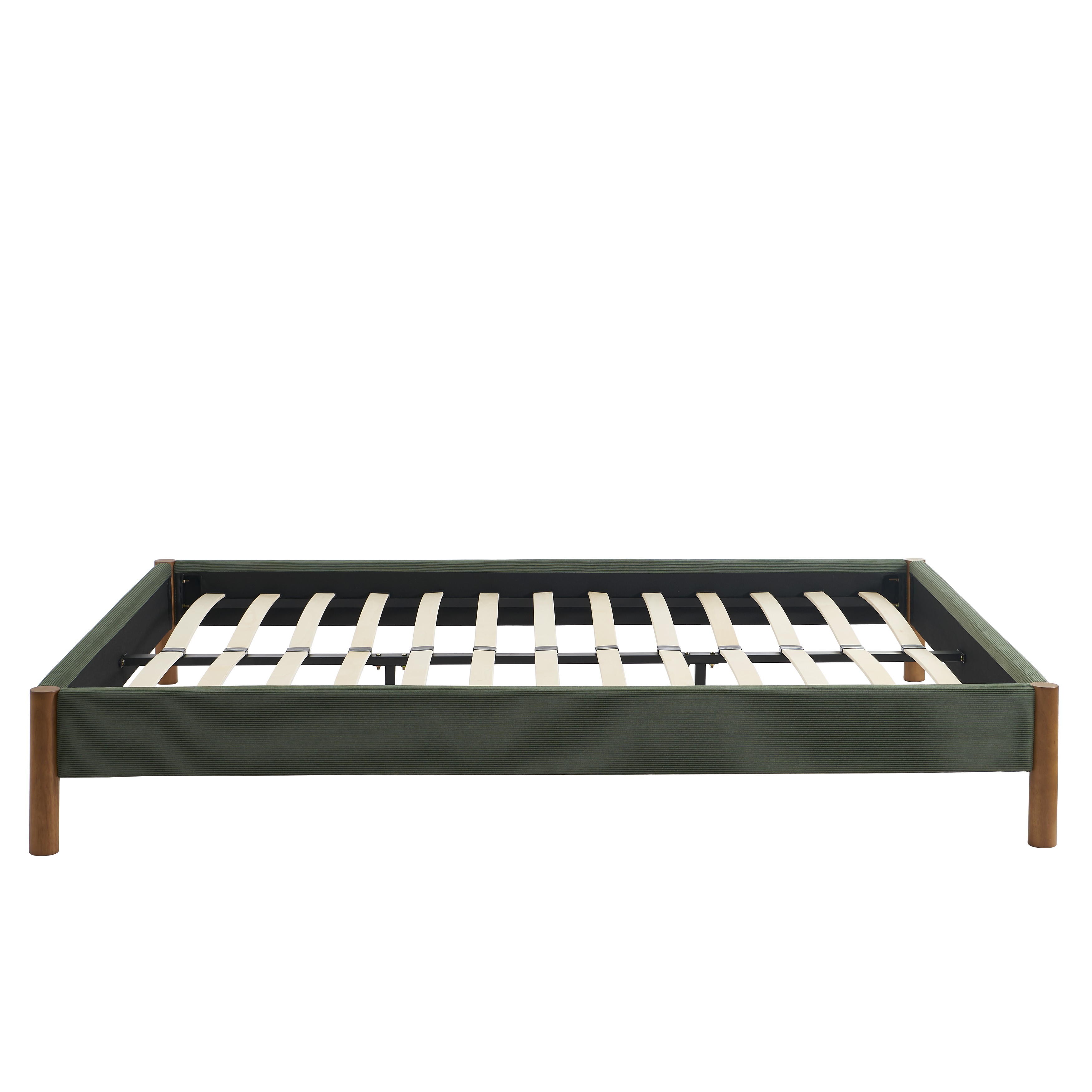 Lit BOWI velours côtelé kaki 160x200 sommier inclus