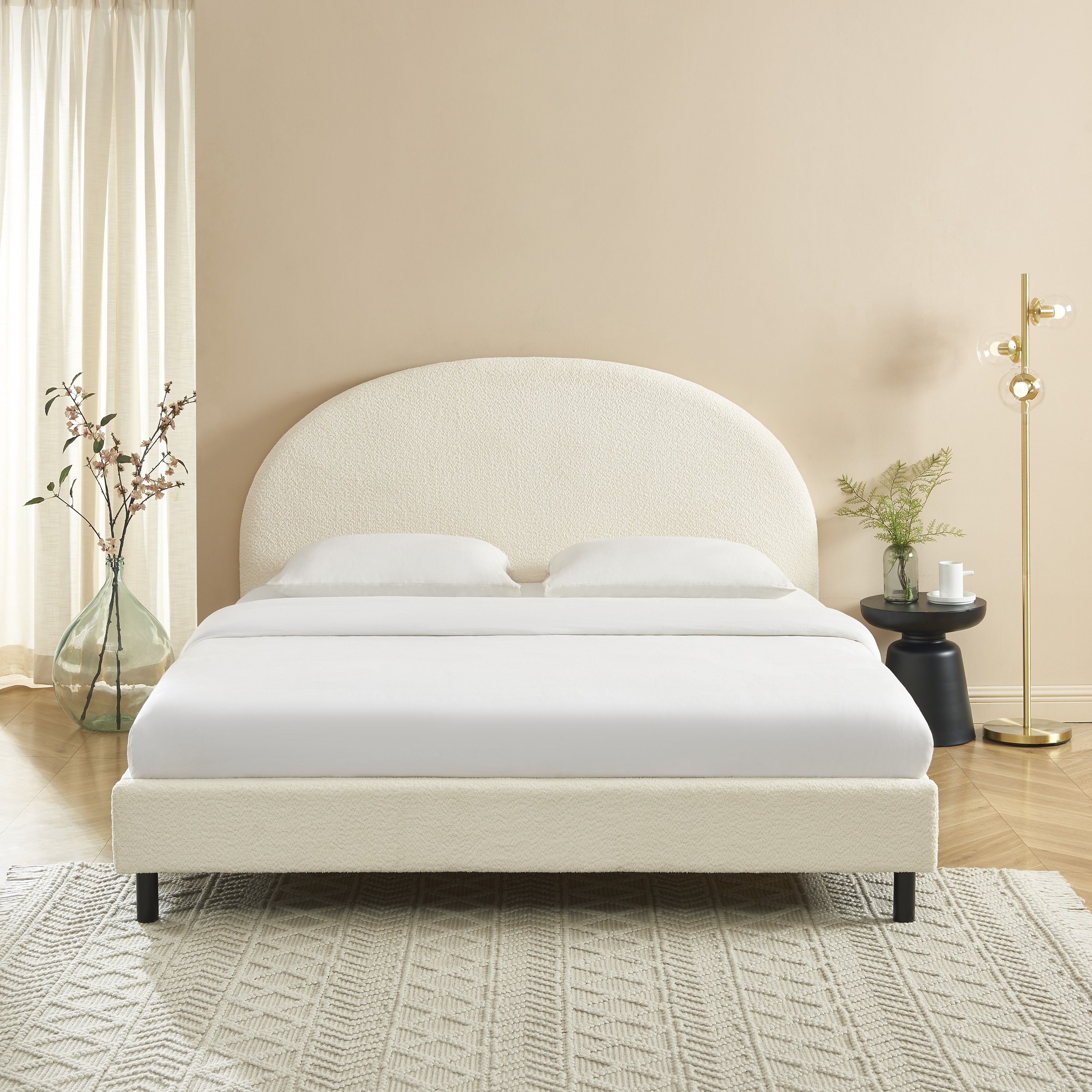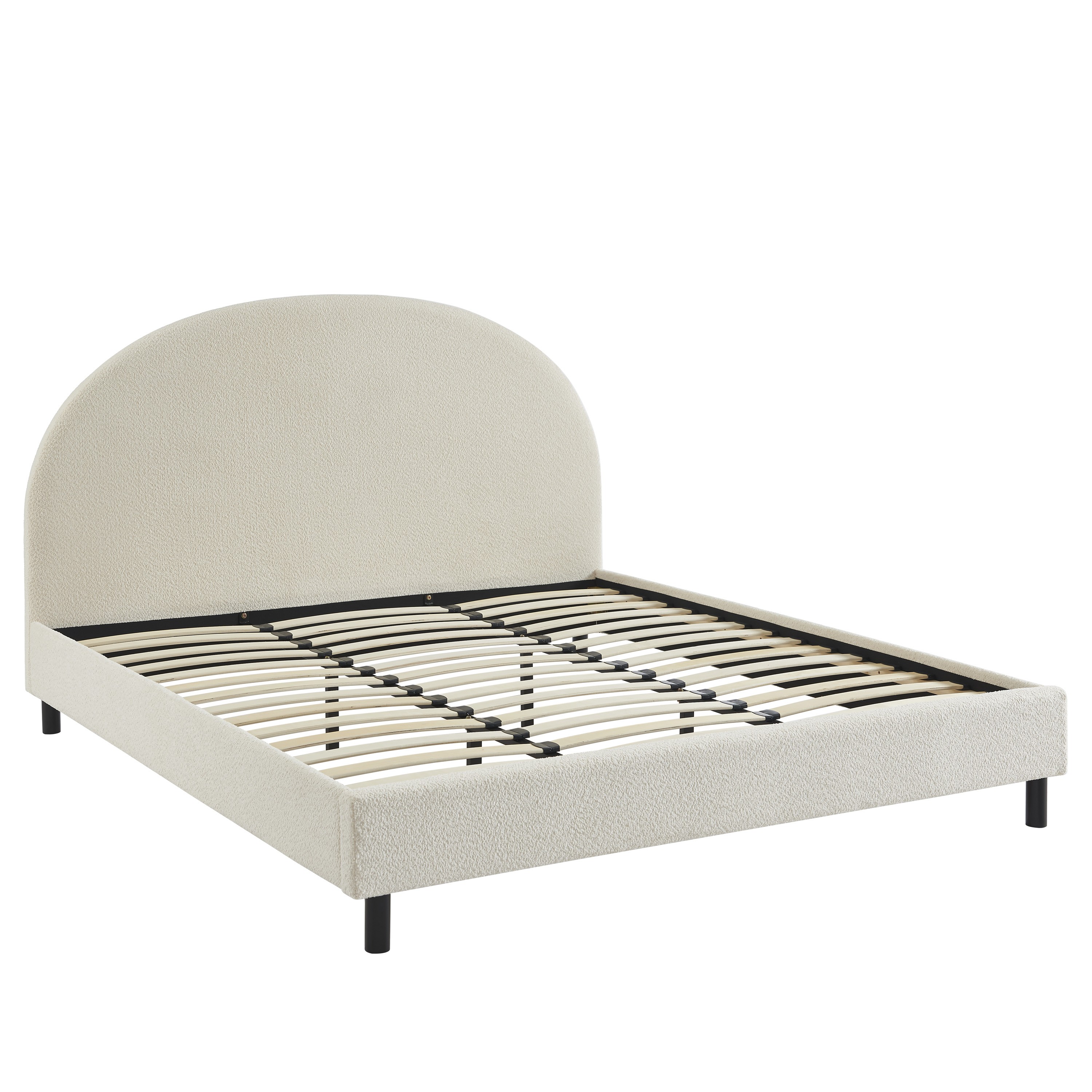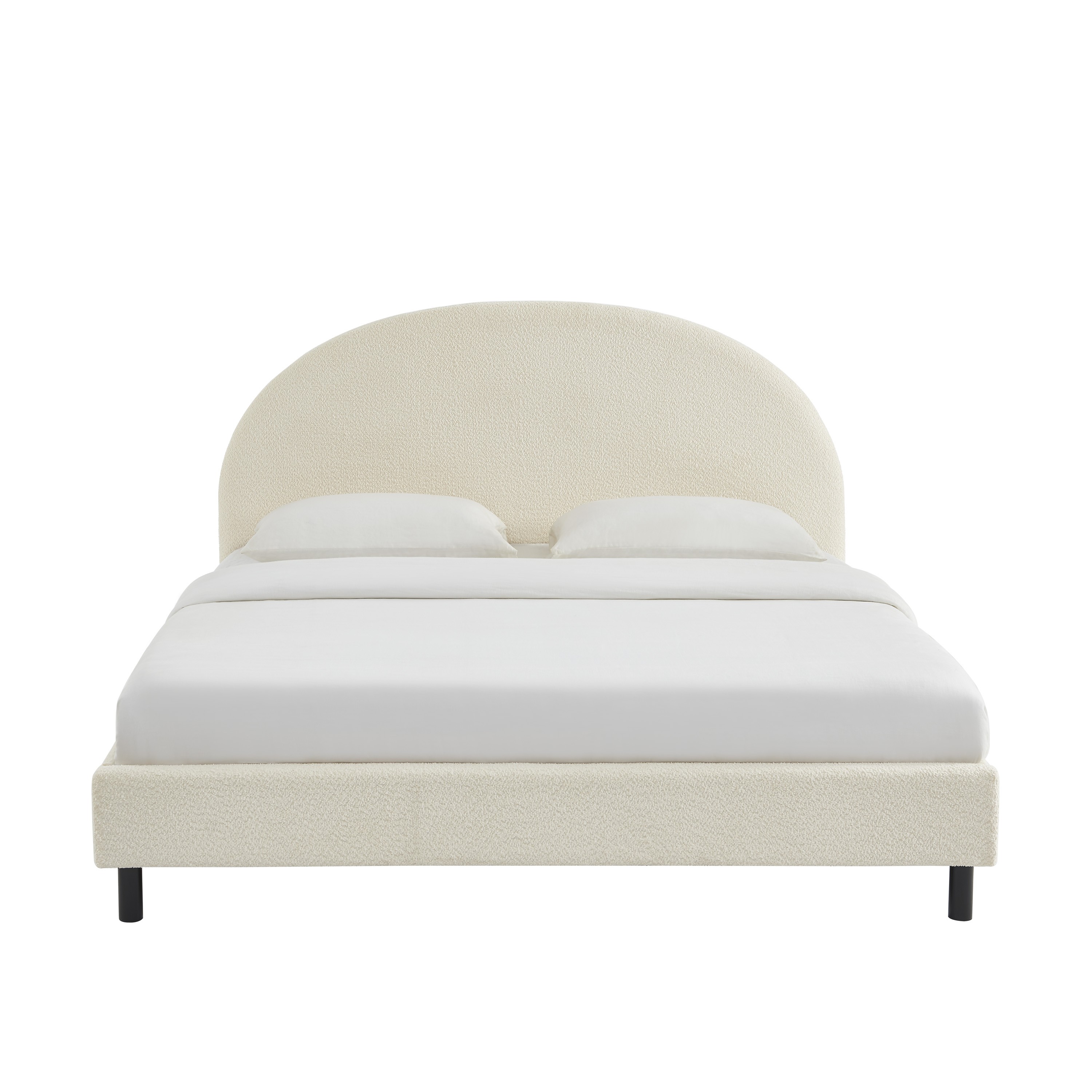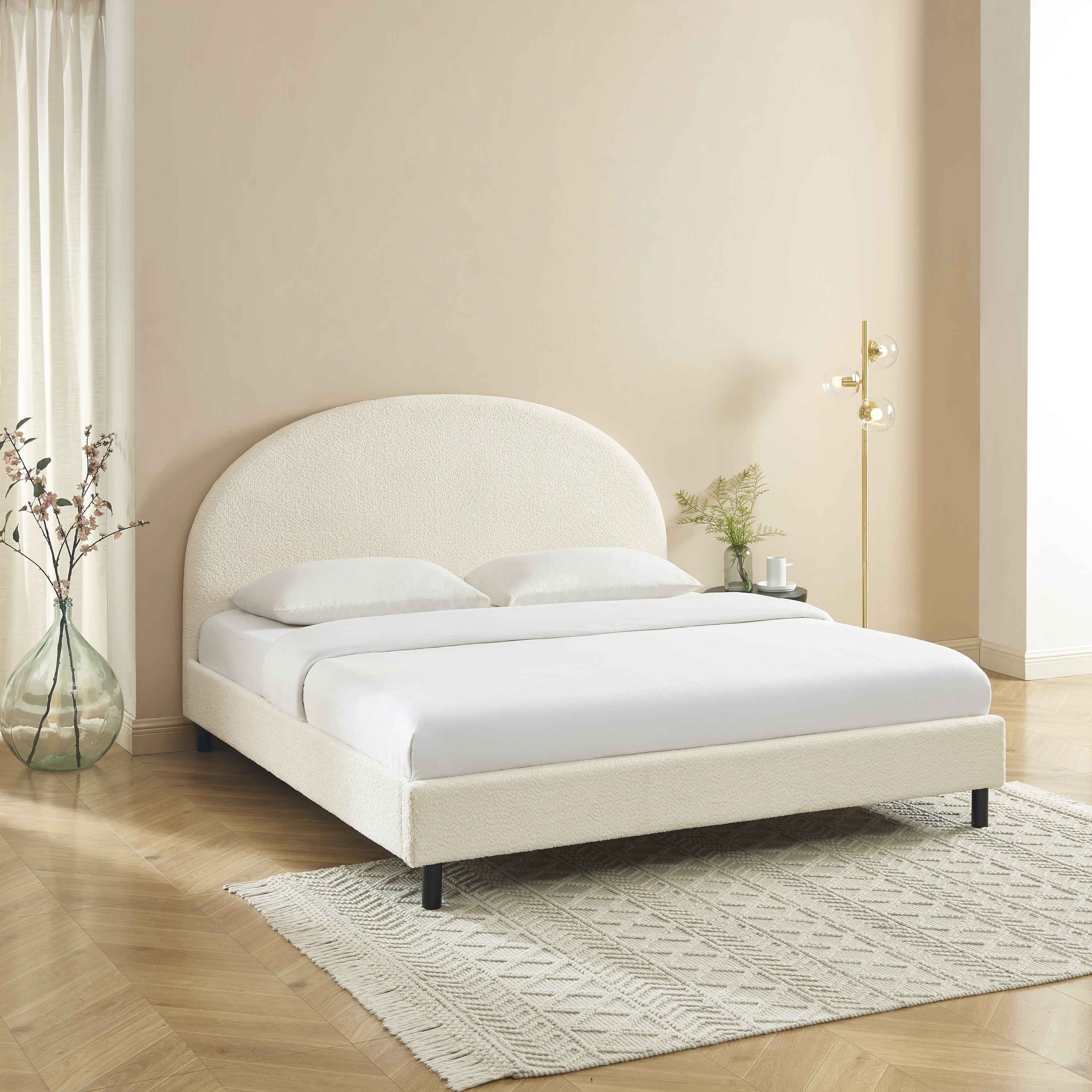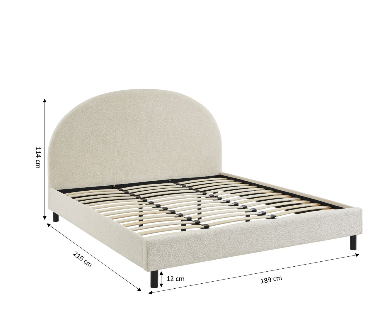 Lit double OLAF tissu bouclette écru 180x200 sommier inclus