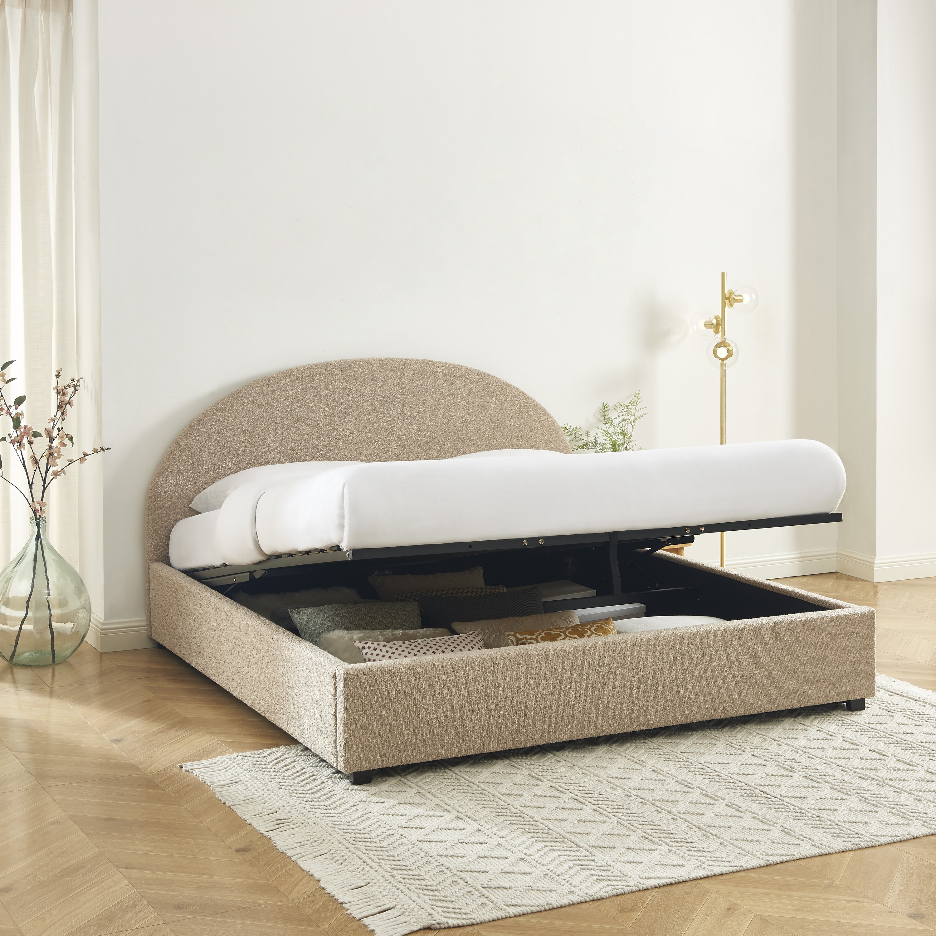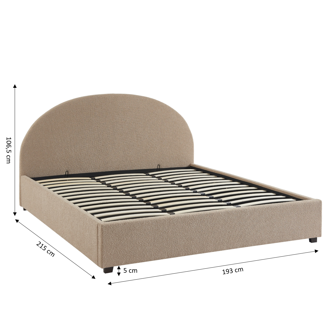 Lit coffre OLAF tissu bouclette beige 180x200 sommier inclus