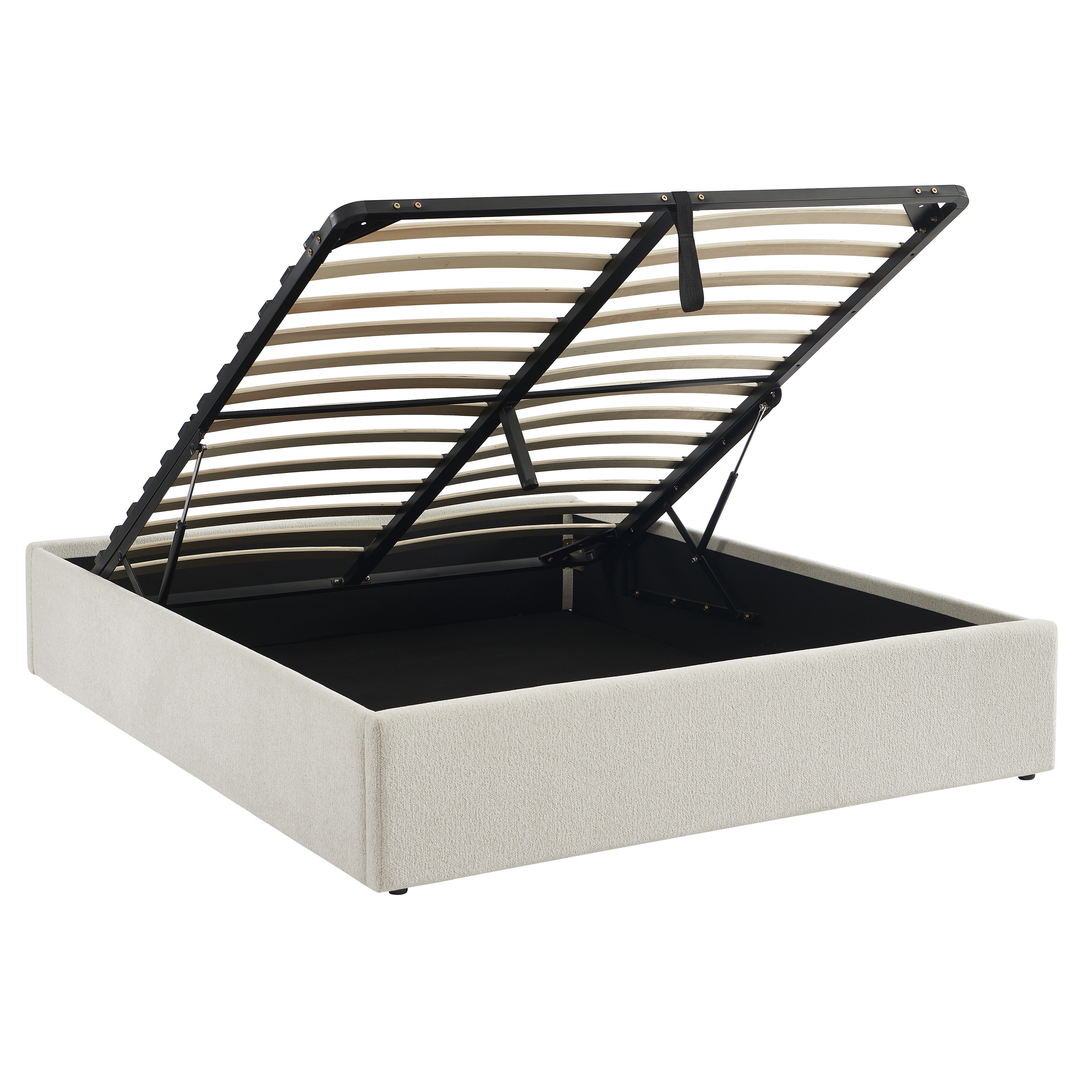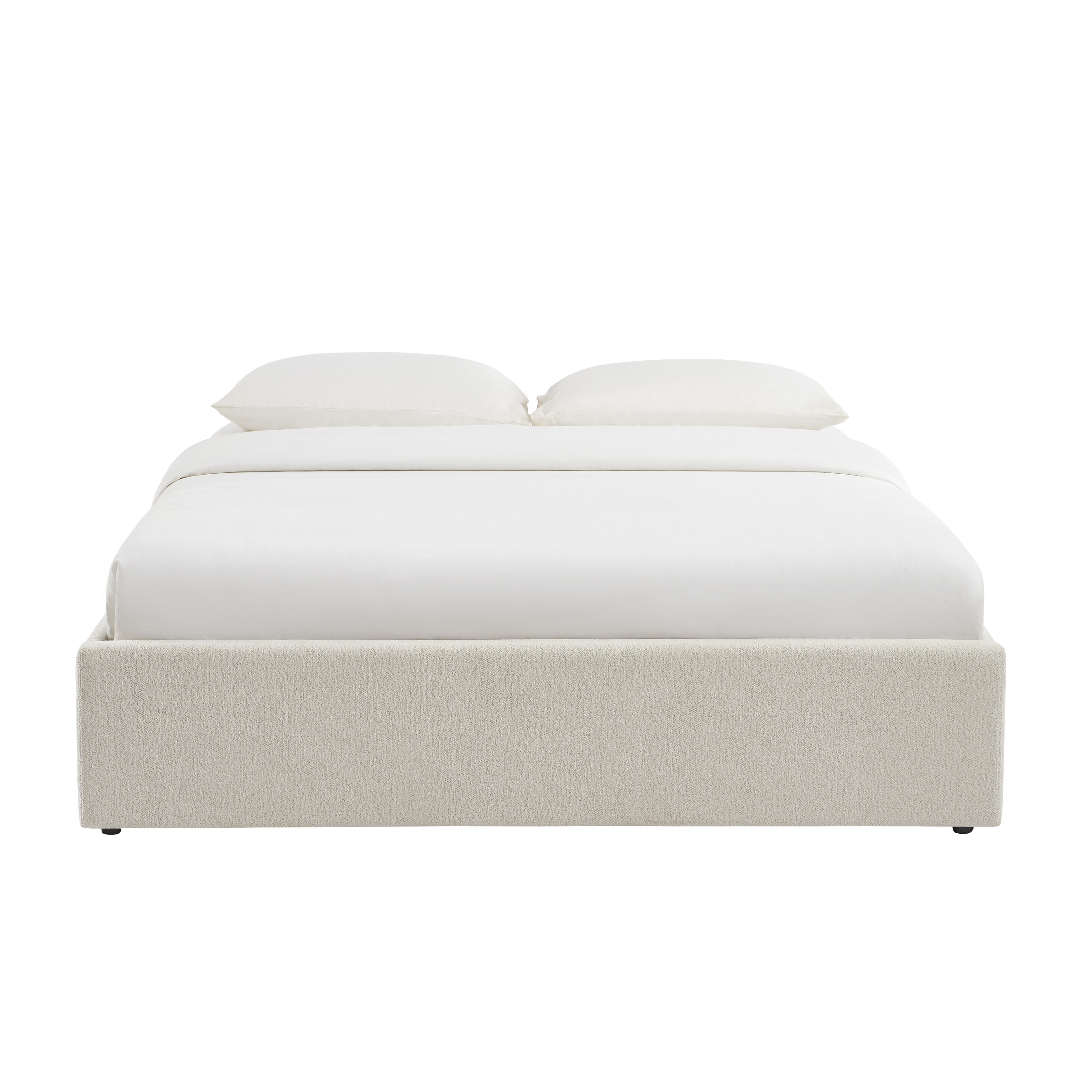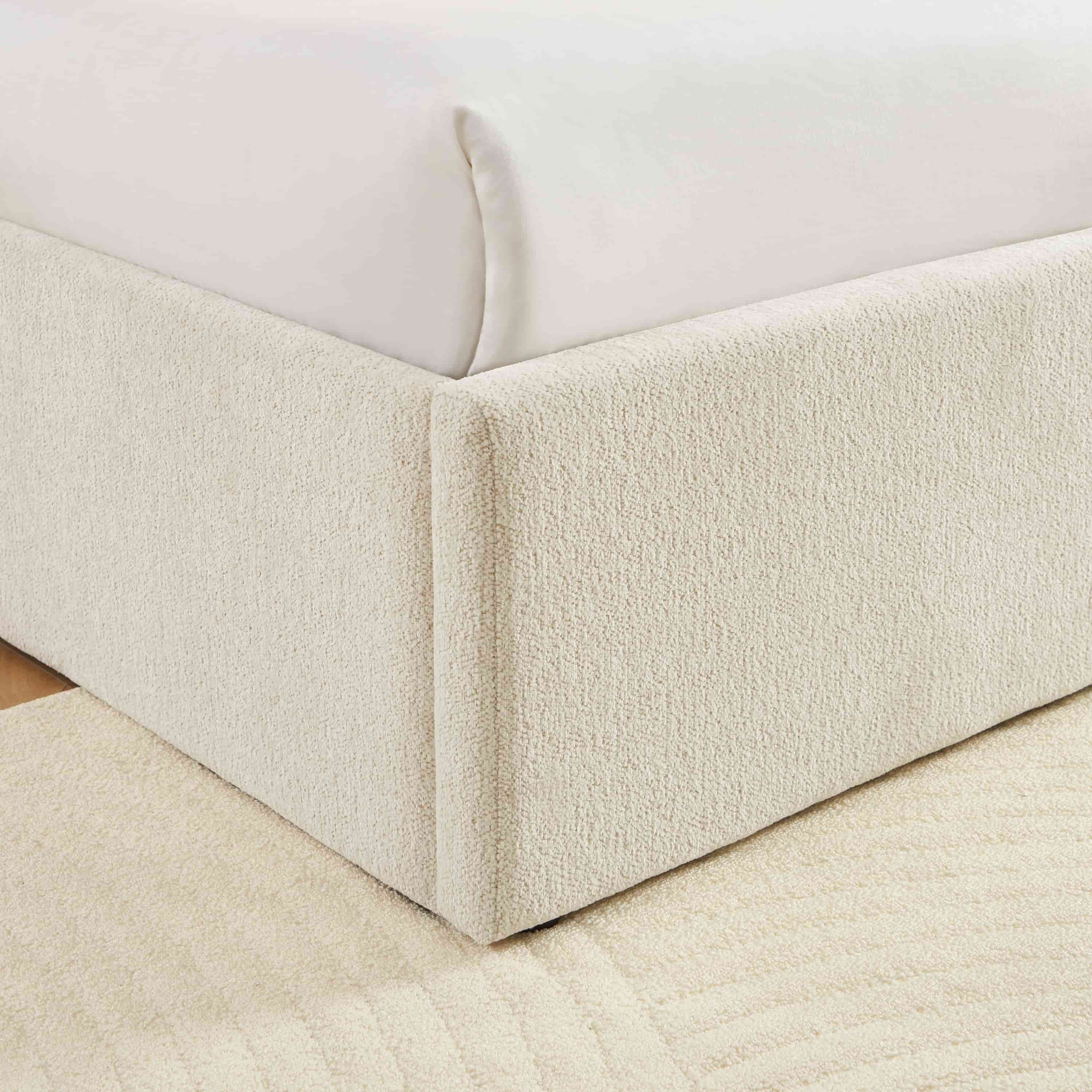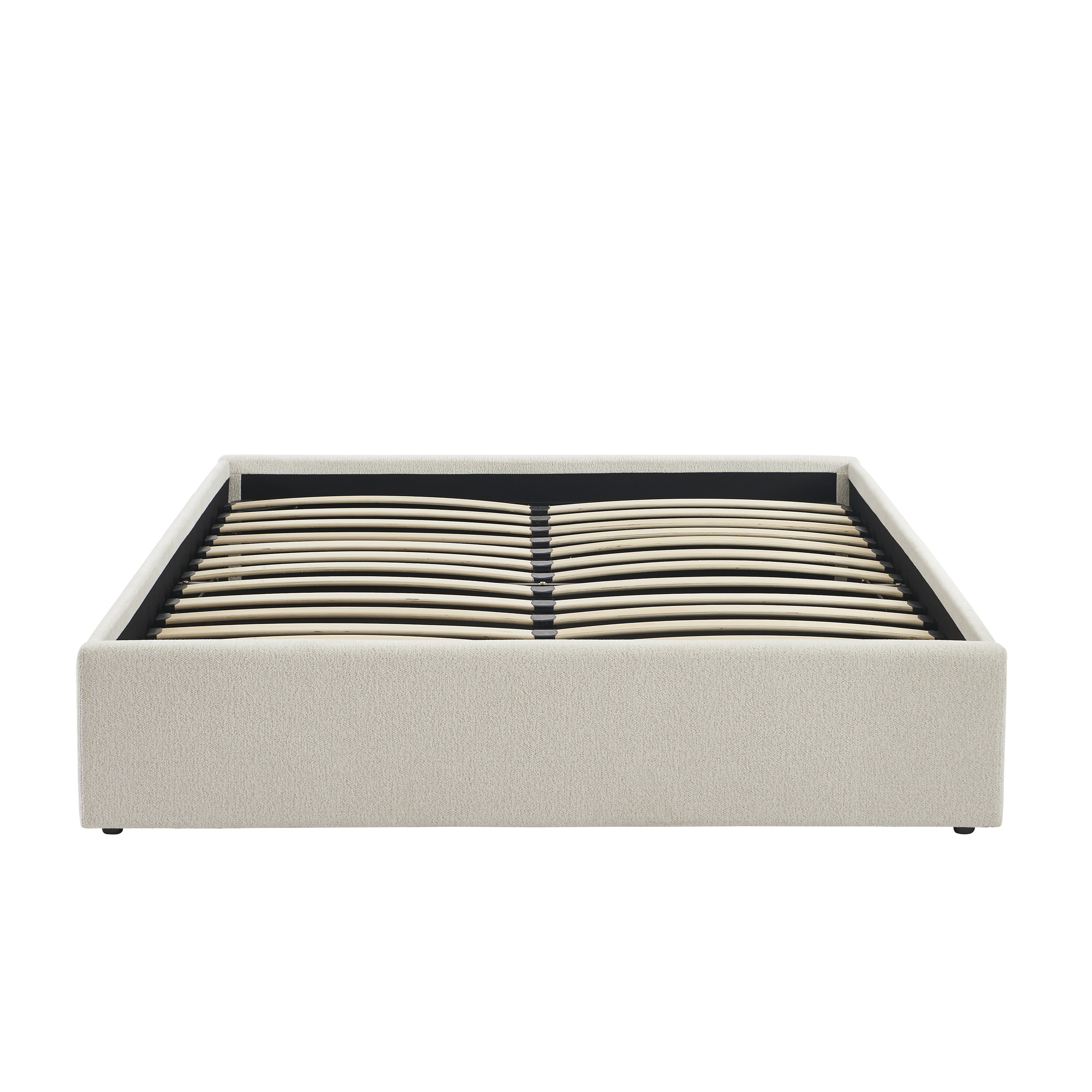 Lit coffre MARCY 160x200 tissu chenille beige sommier inclus