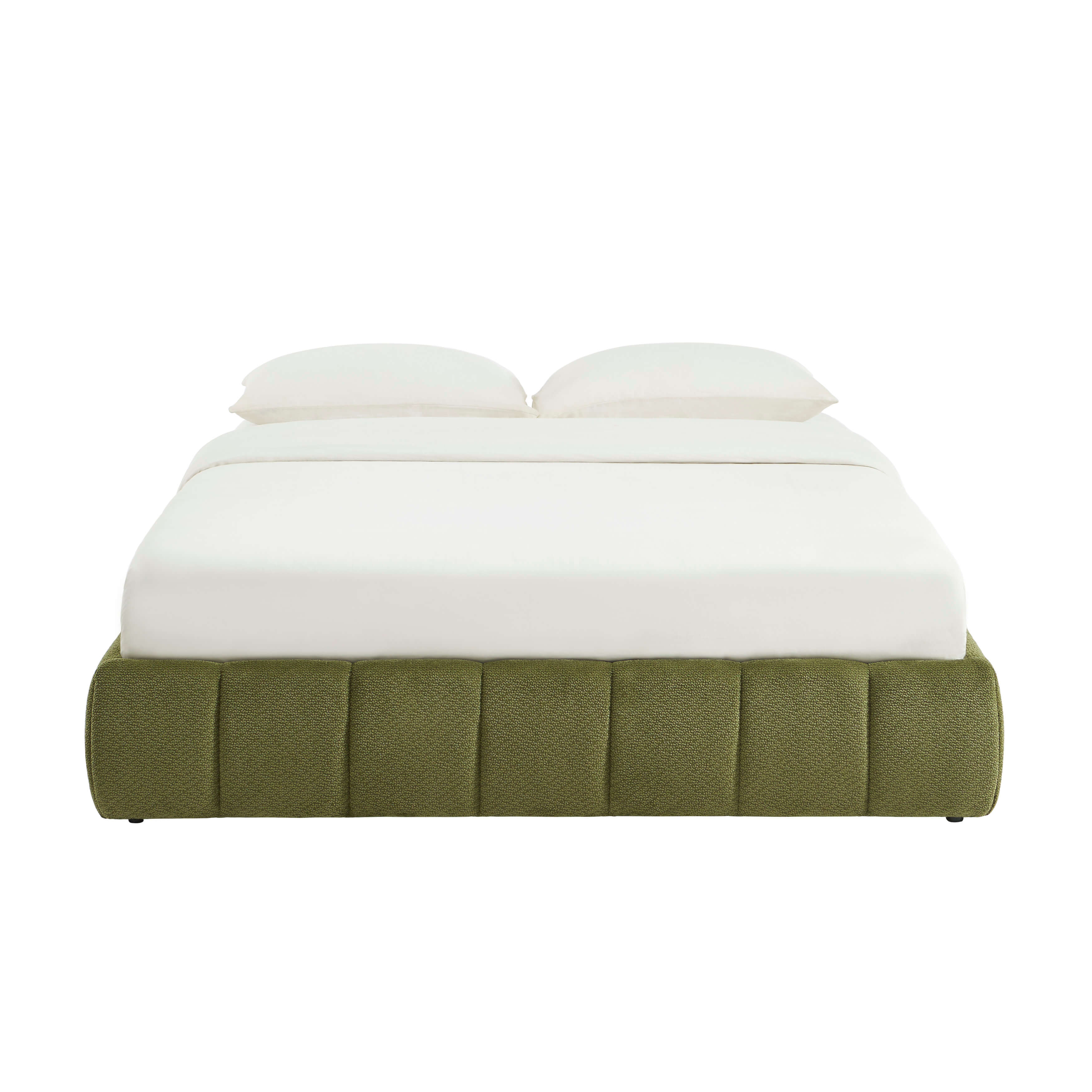 Lit coffre LAVINIA tissu chenille vert 160x200 sommier inclus