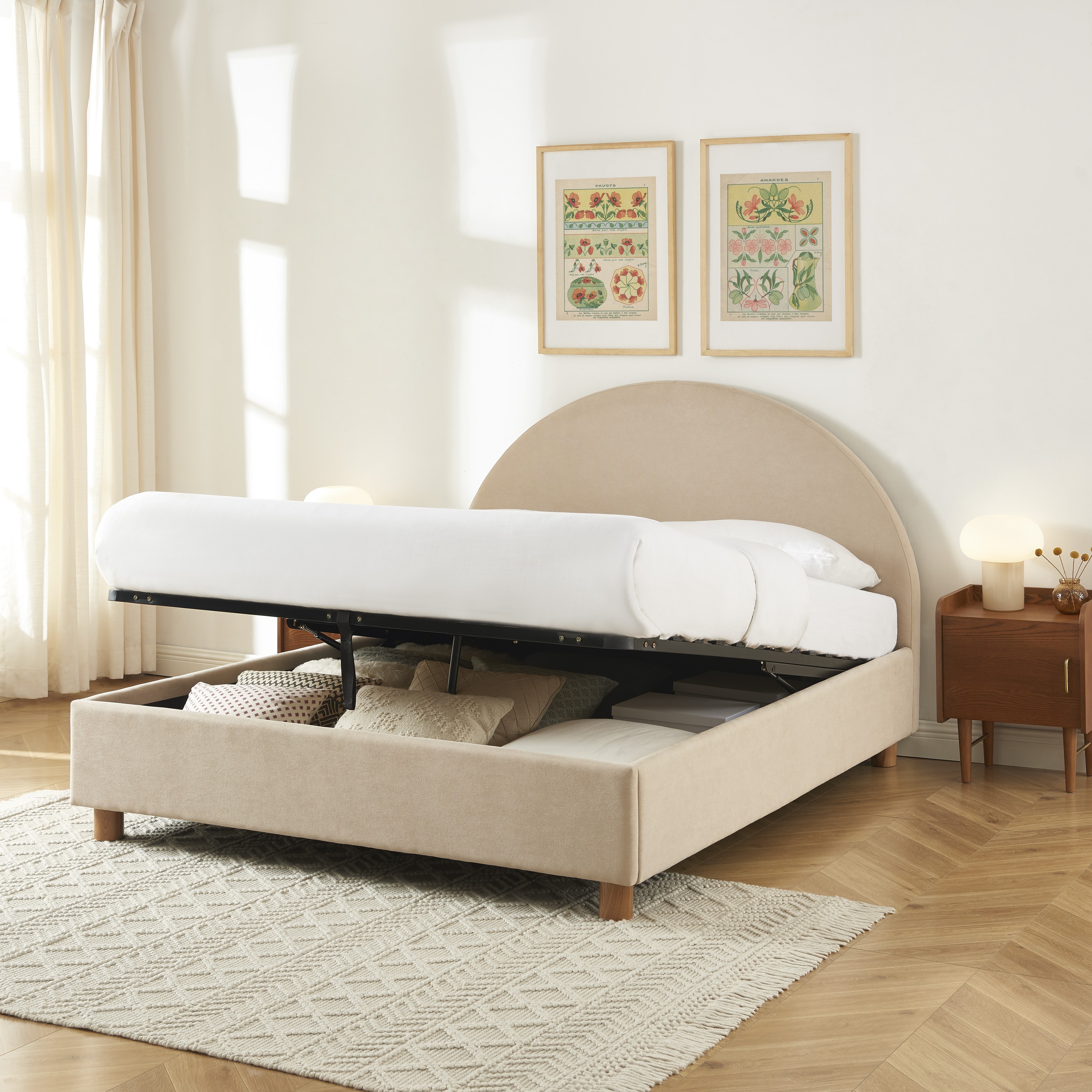 Lit coffre TAIJO velours beige sable 160x200 sommier inclus