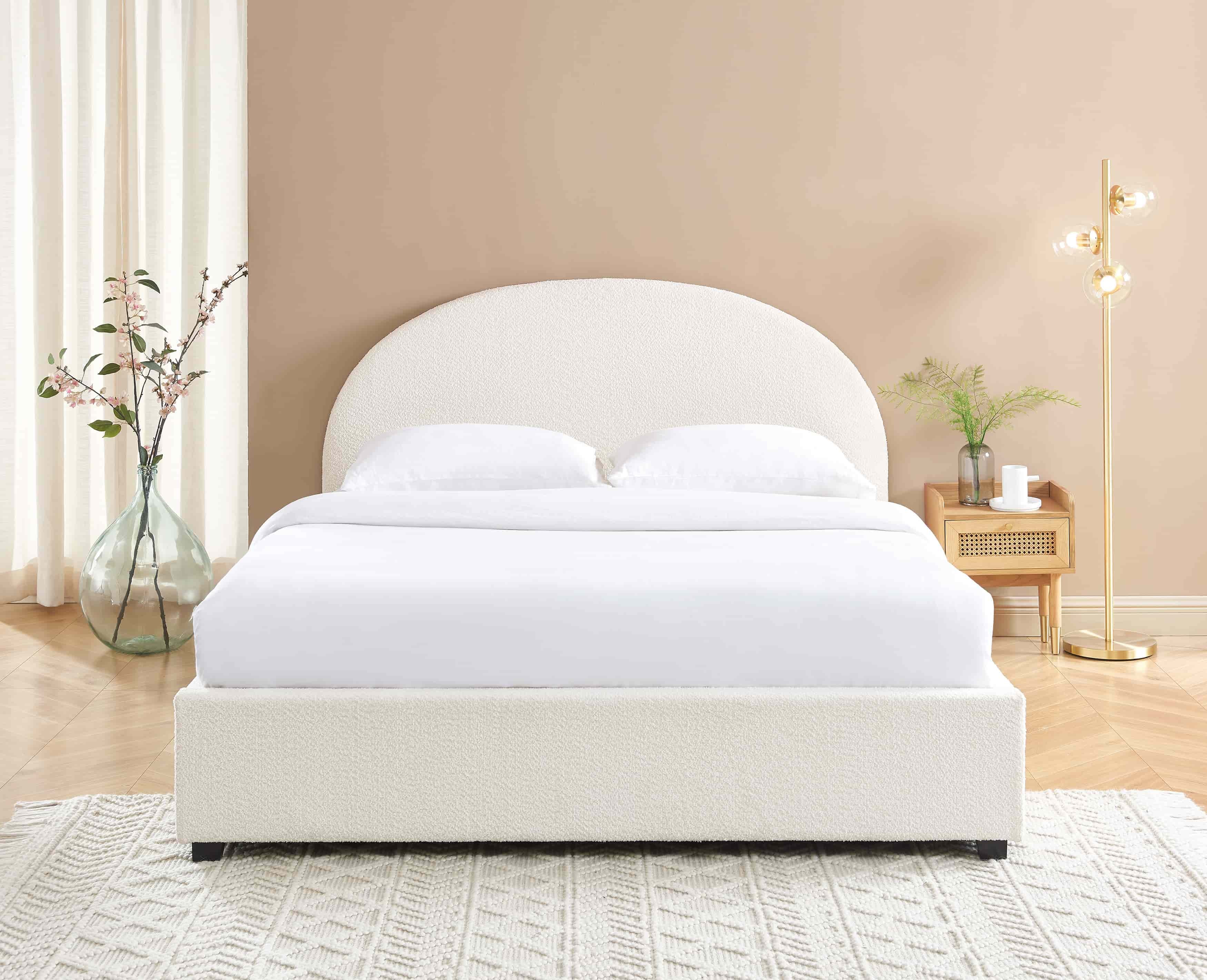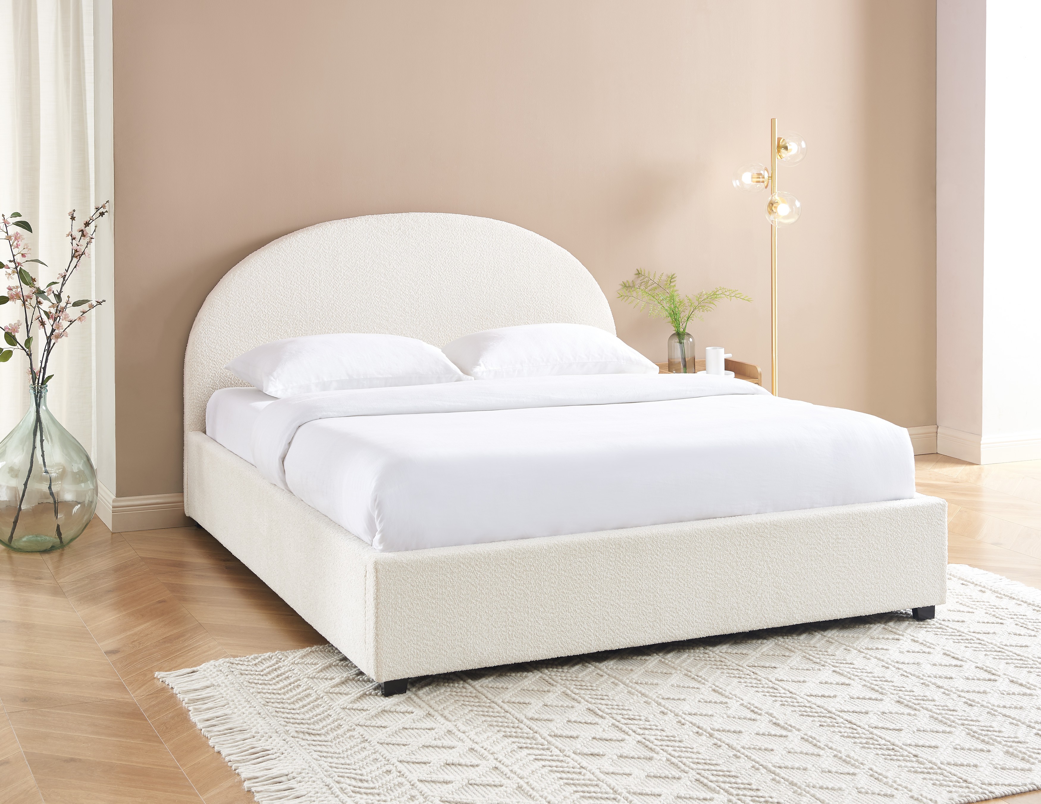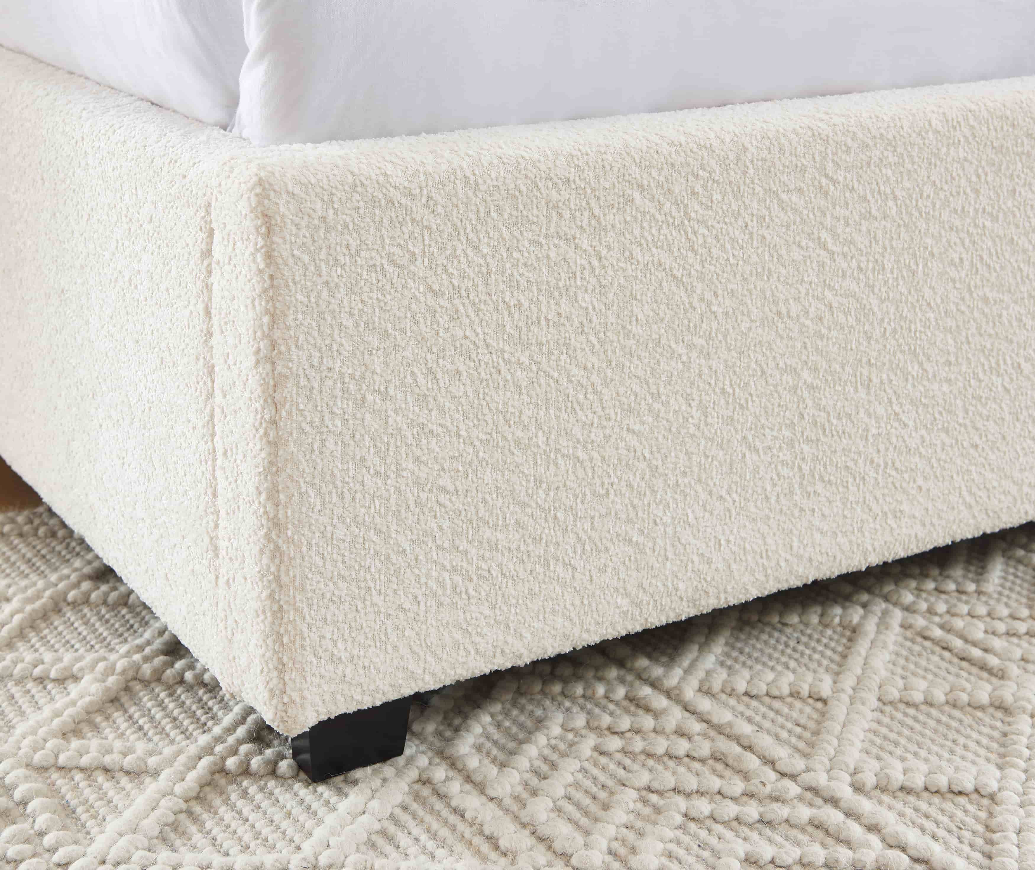 Laissez-vous tenter par ce magnifique lit coffre OLAF ! Avec sa tête de lit et son cadre en tissu bouclette, ce dernier ajoutera une vraie touche tendance à votre chambre à coucher. Son coloris écru, à la fois doux et simple, ira avec n'importe quel style de décoration et de meubles.