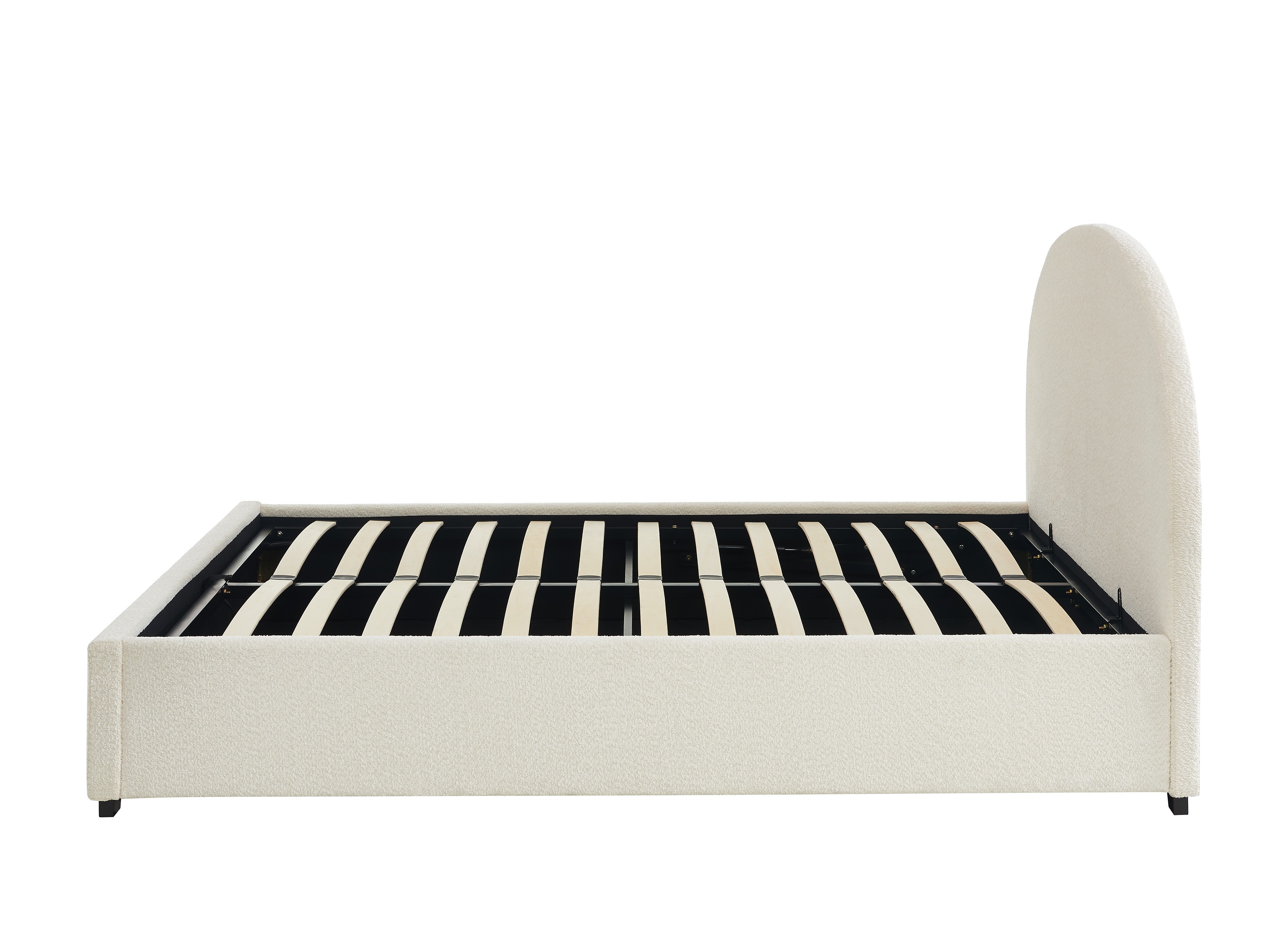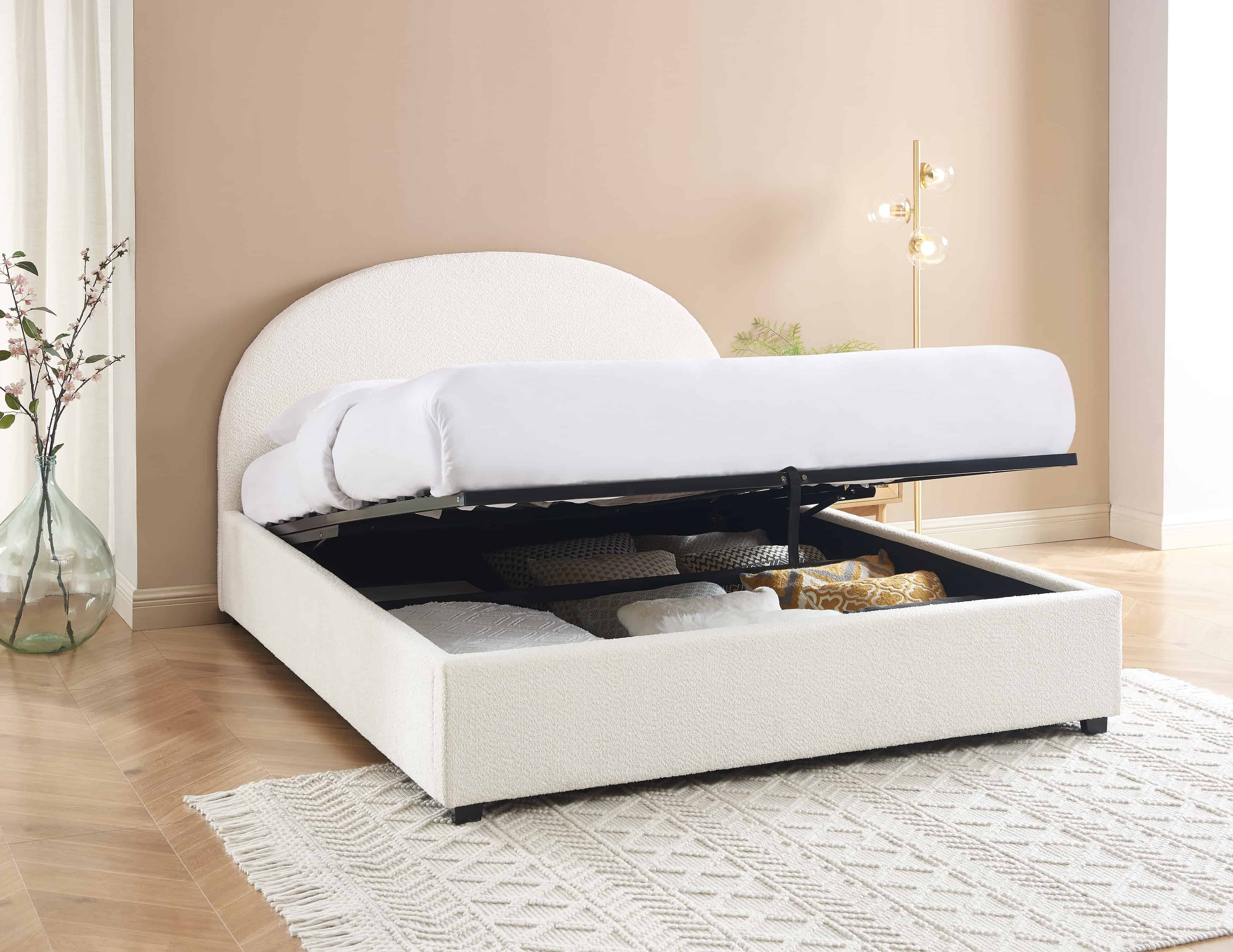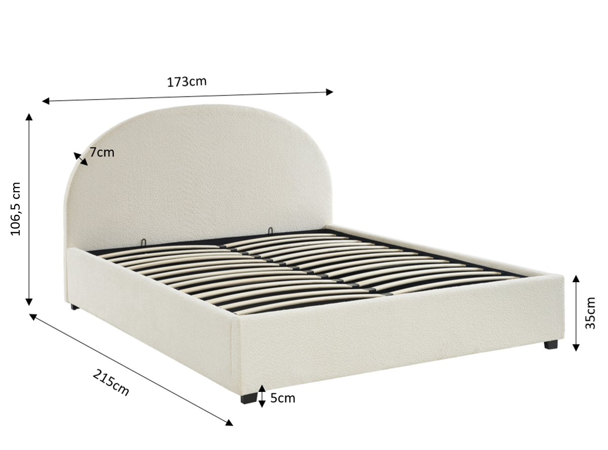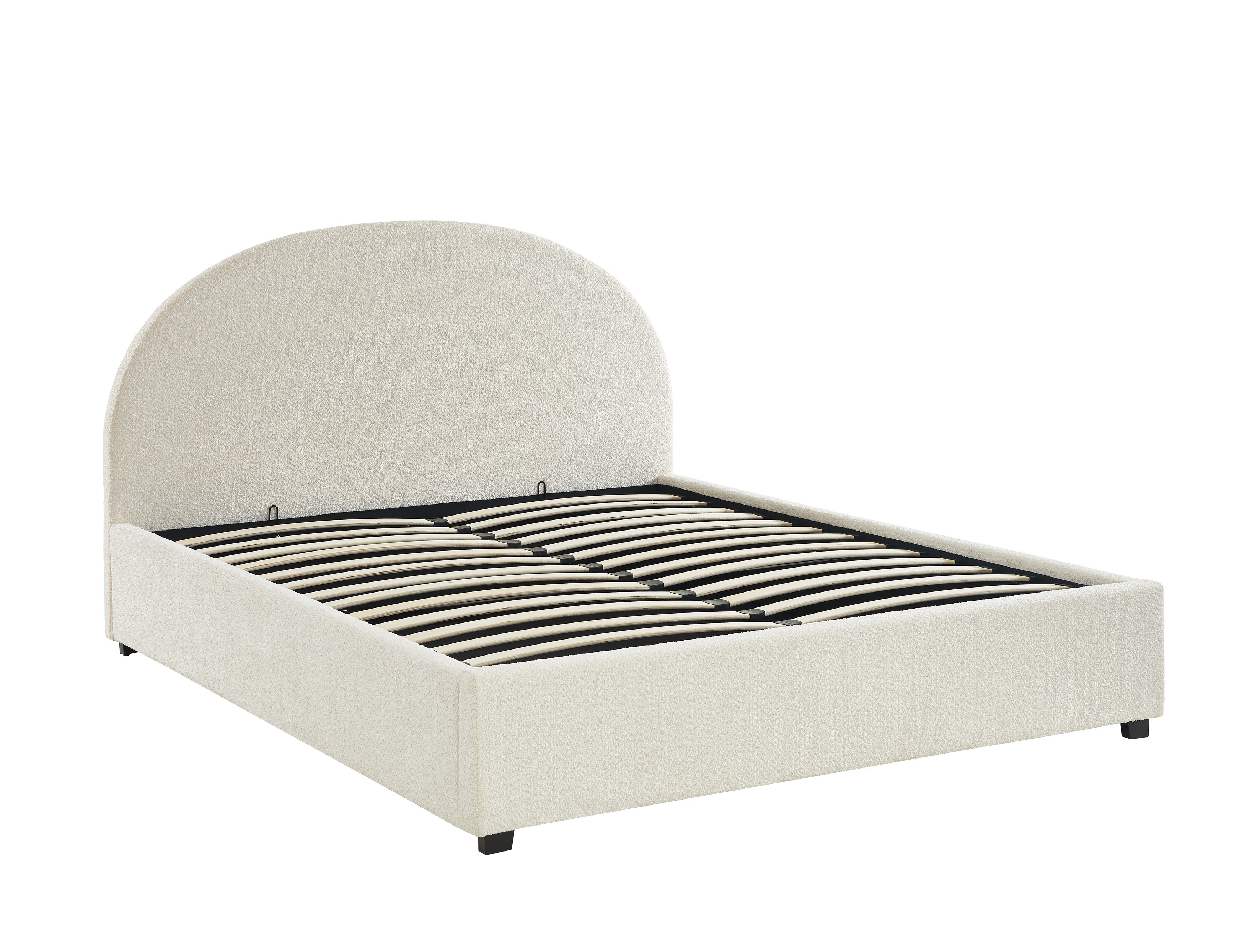 Lit coffre OLAF tissu bouclette écru 160x200 sommier inclus