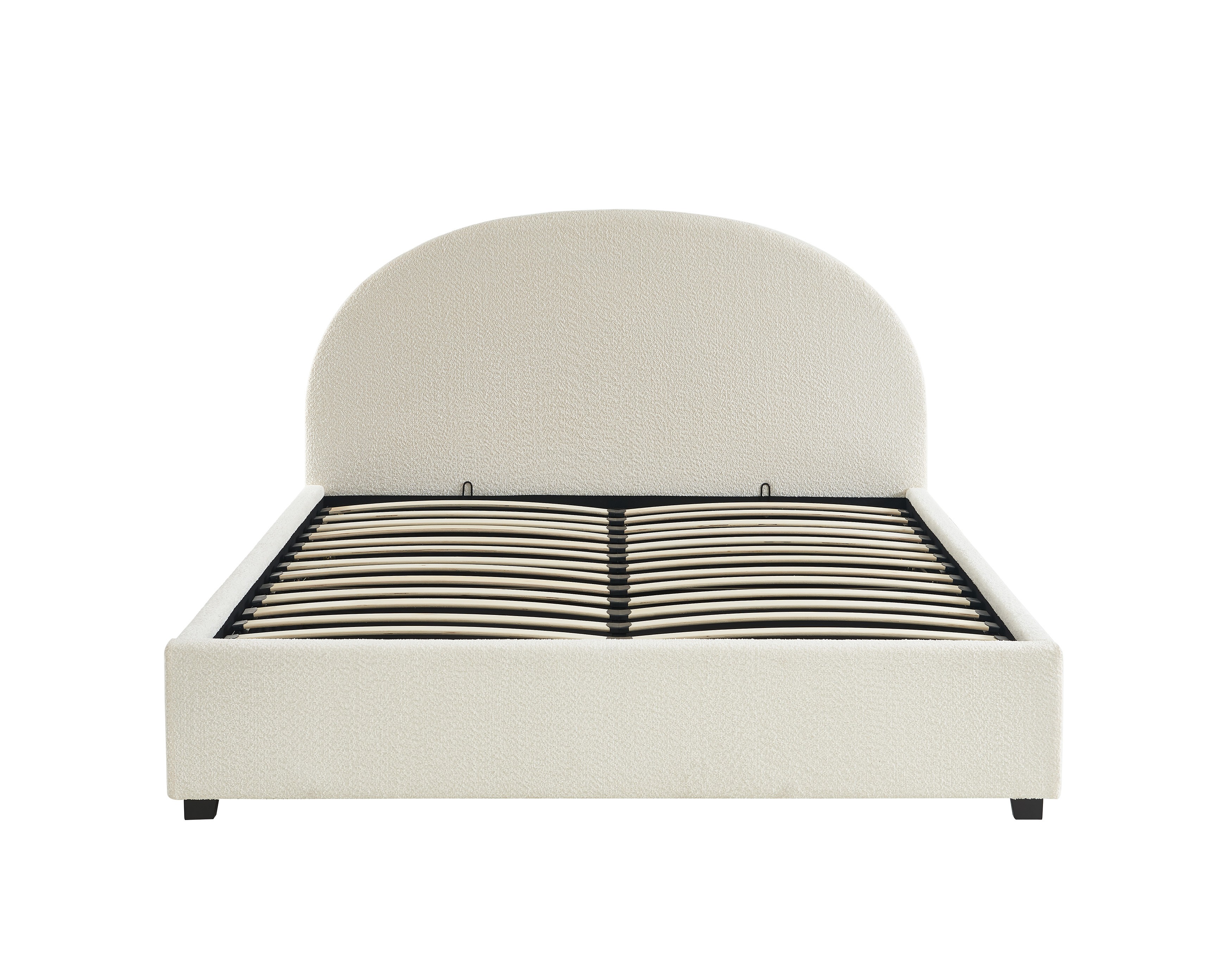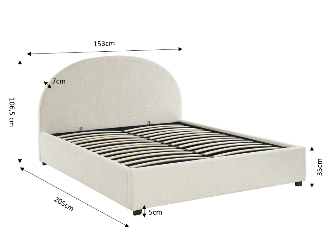Lit coffre OLAF tissu bouclette écru 140x160 sommier inclus