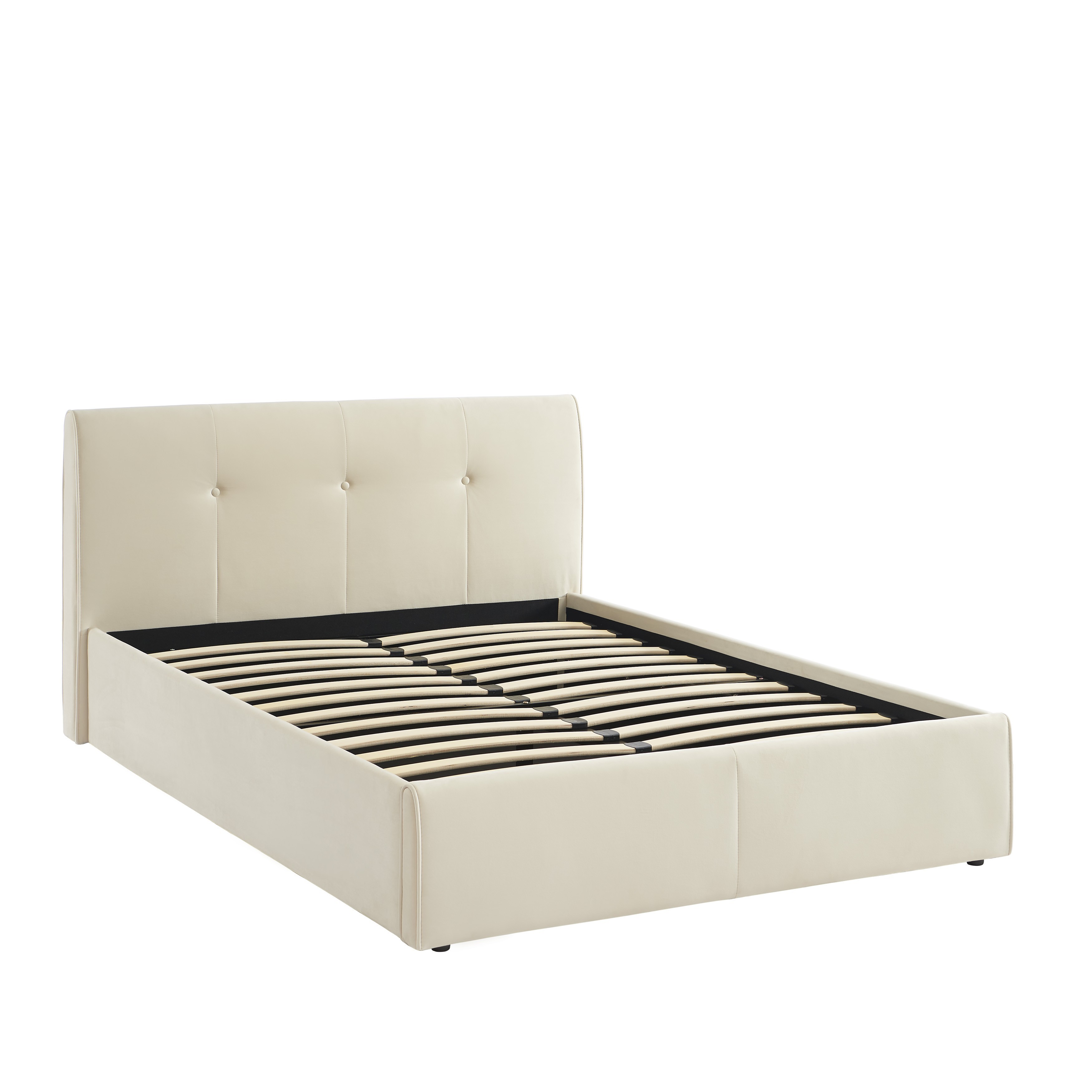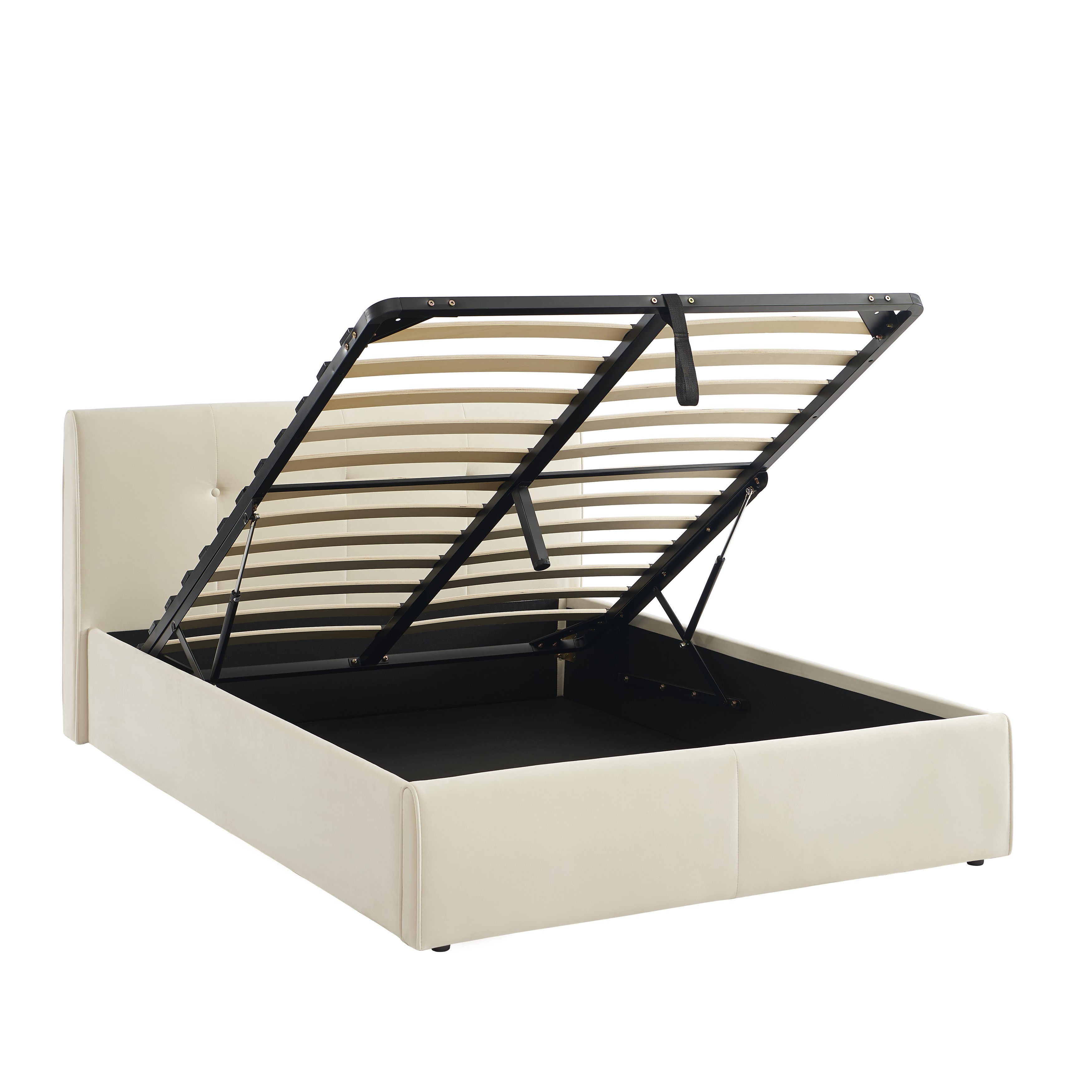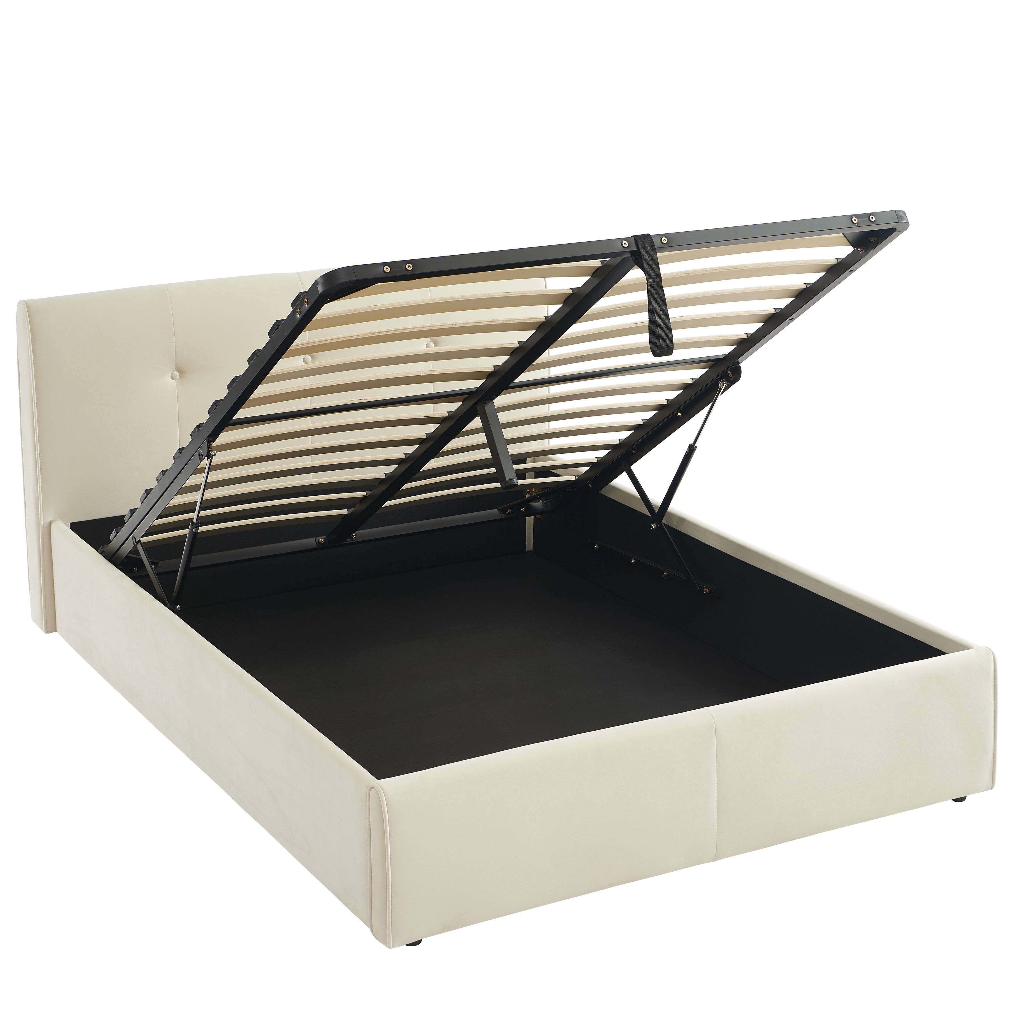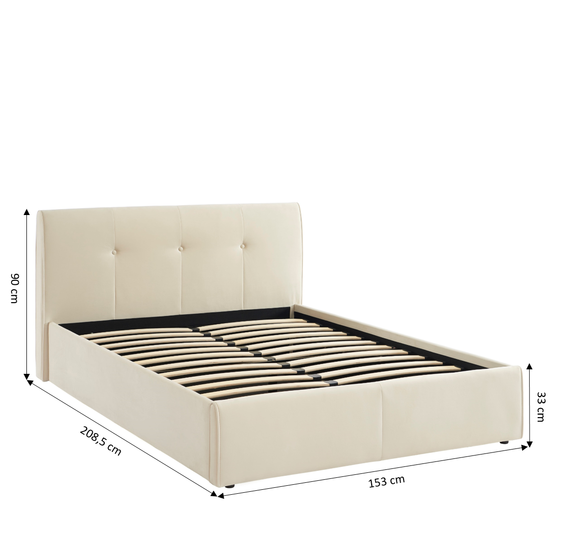 Lit coffre SEGURO velours beige 140x190 sommier inclus