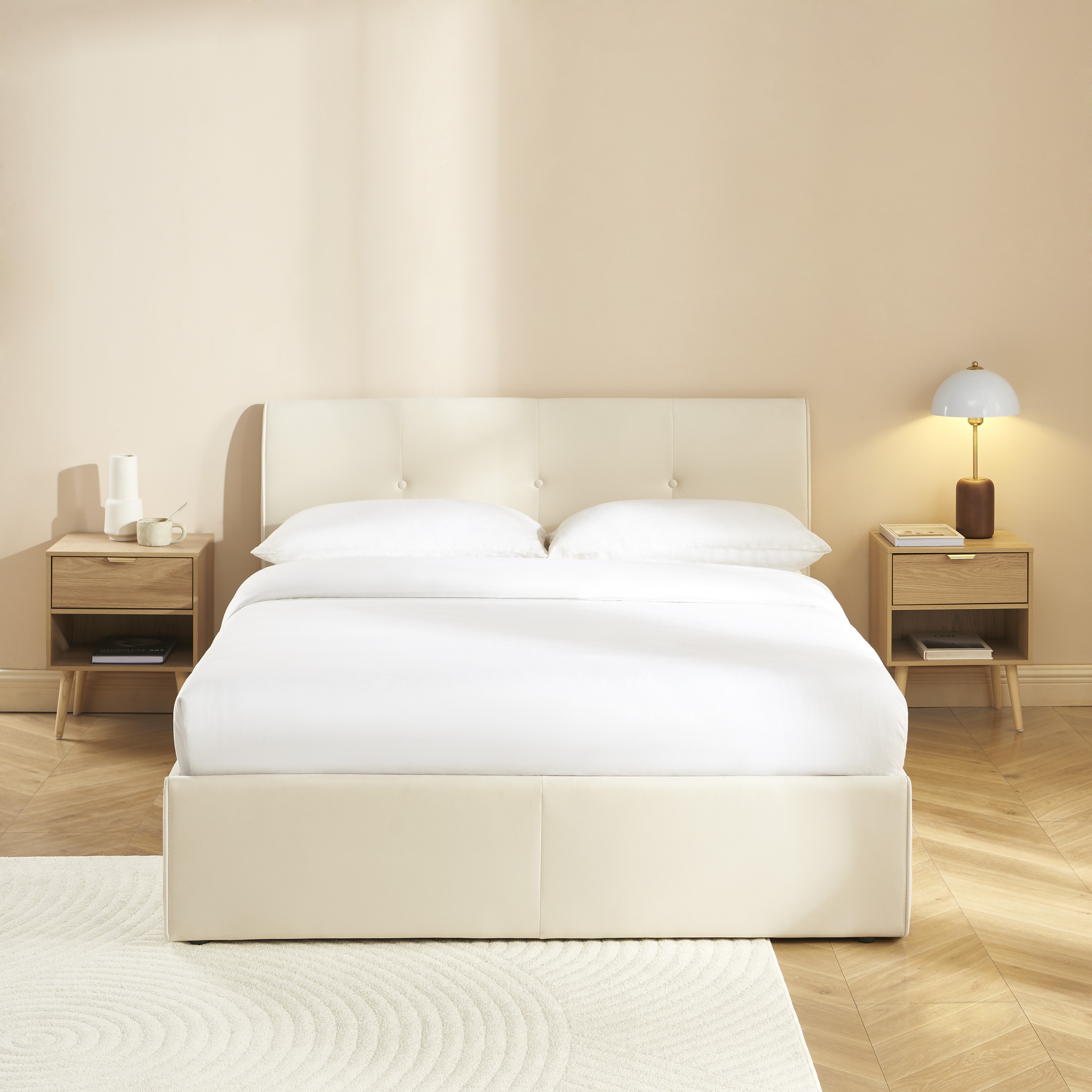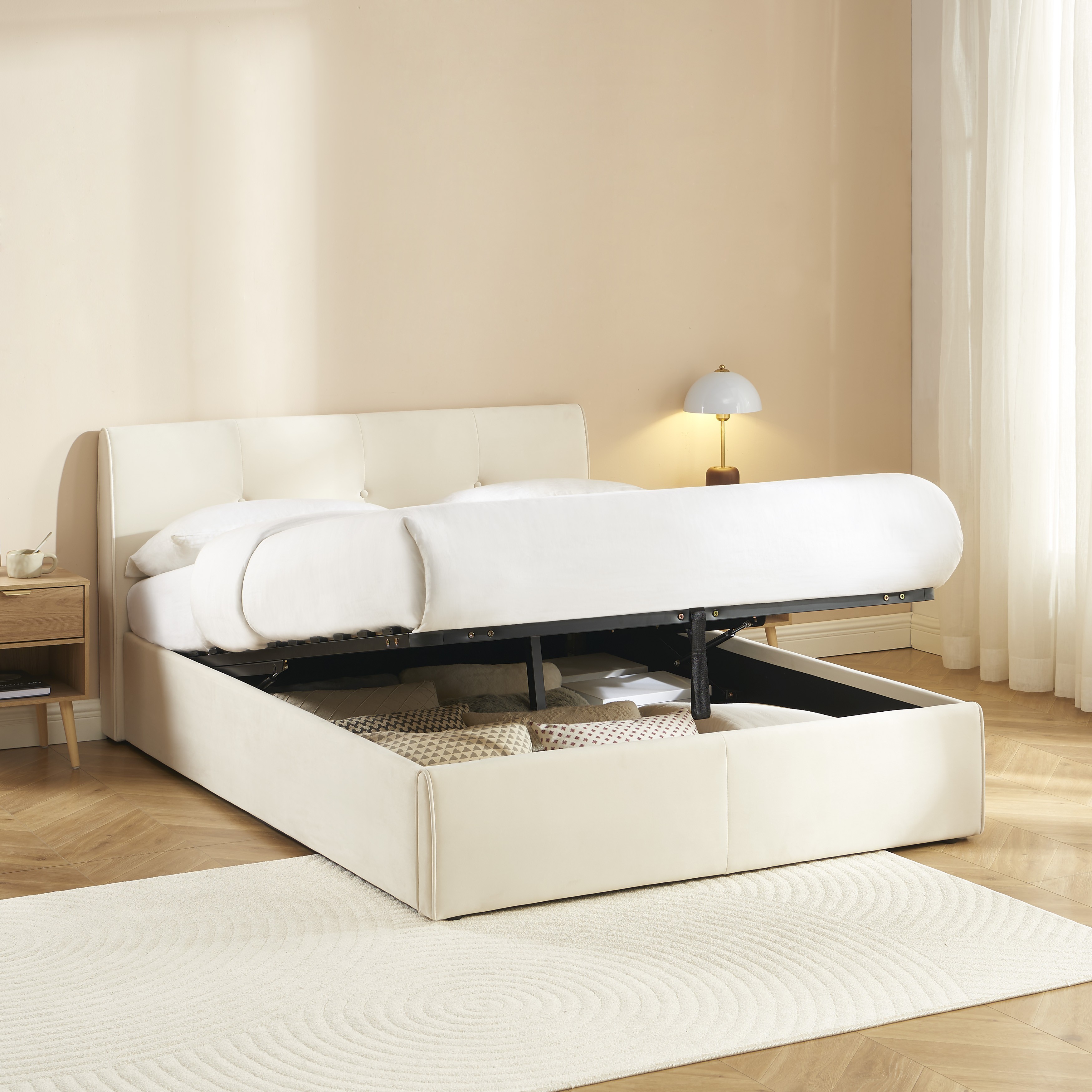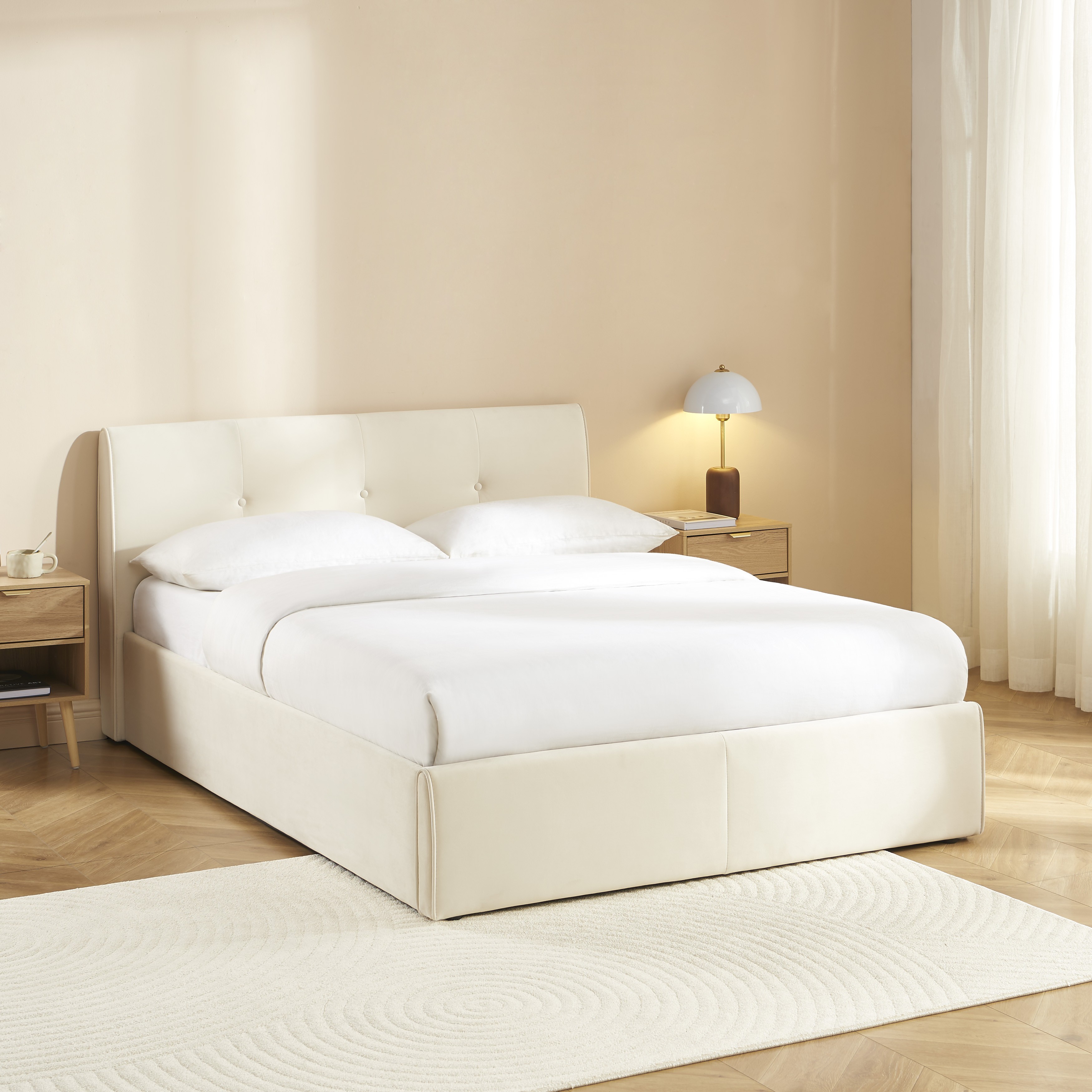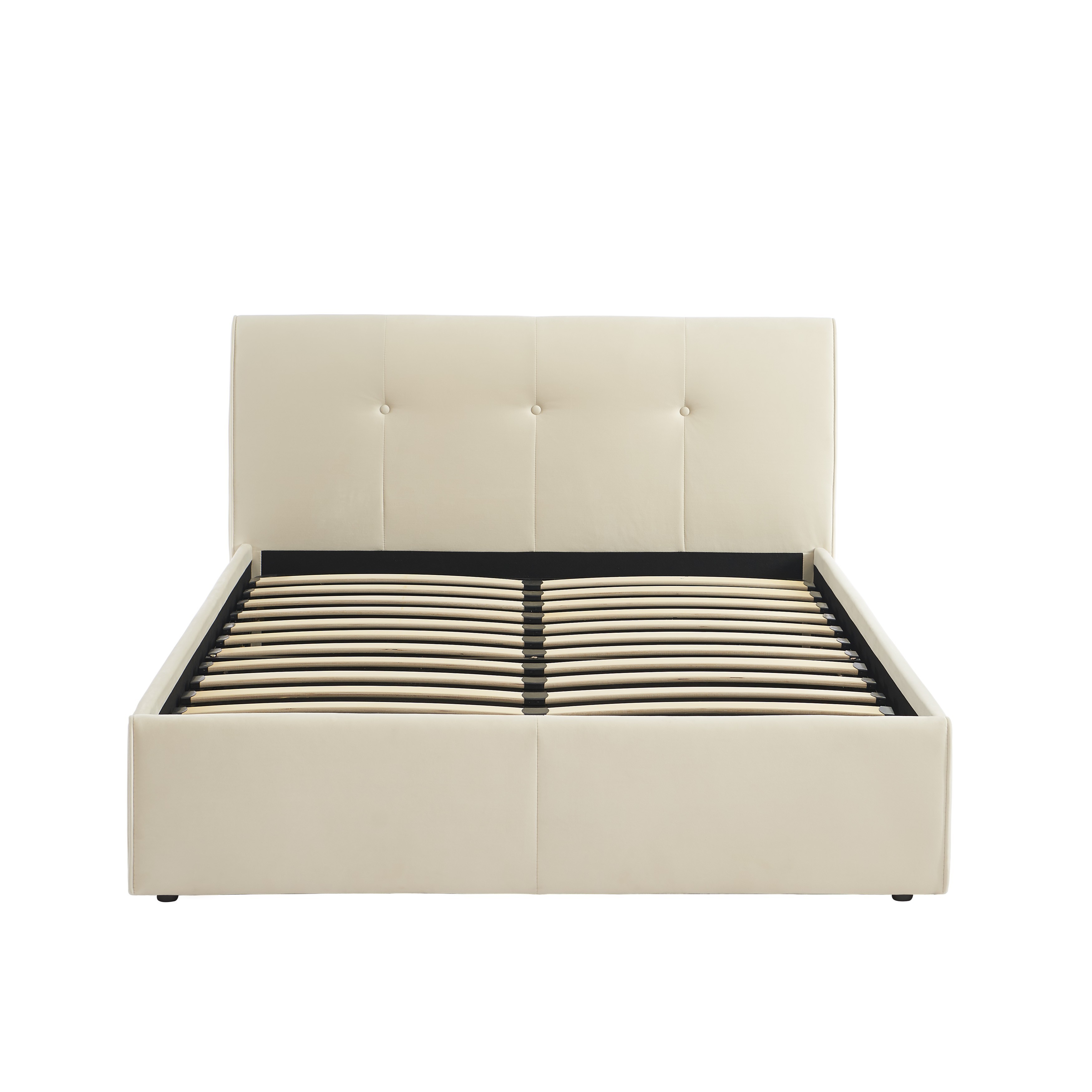 Lit coffre SEGURO velours beige 140x190 sommier inclus