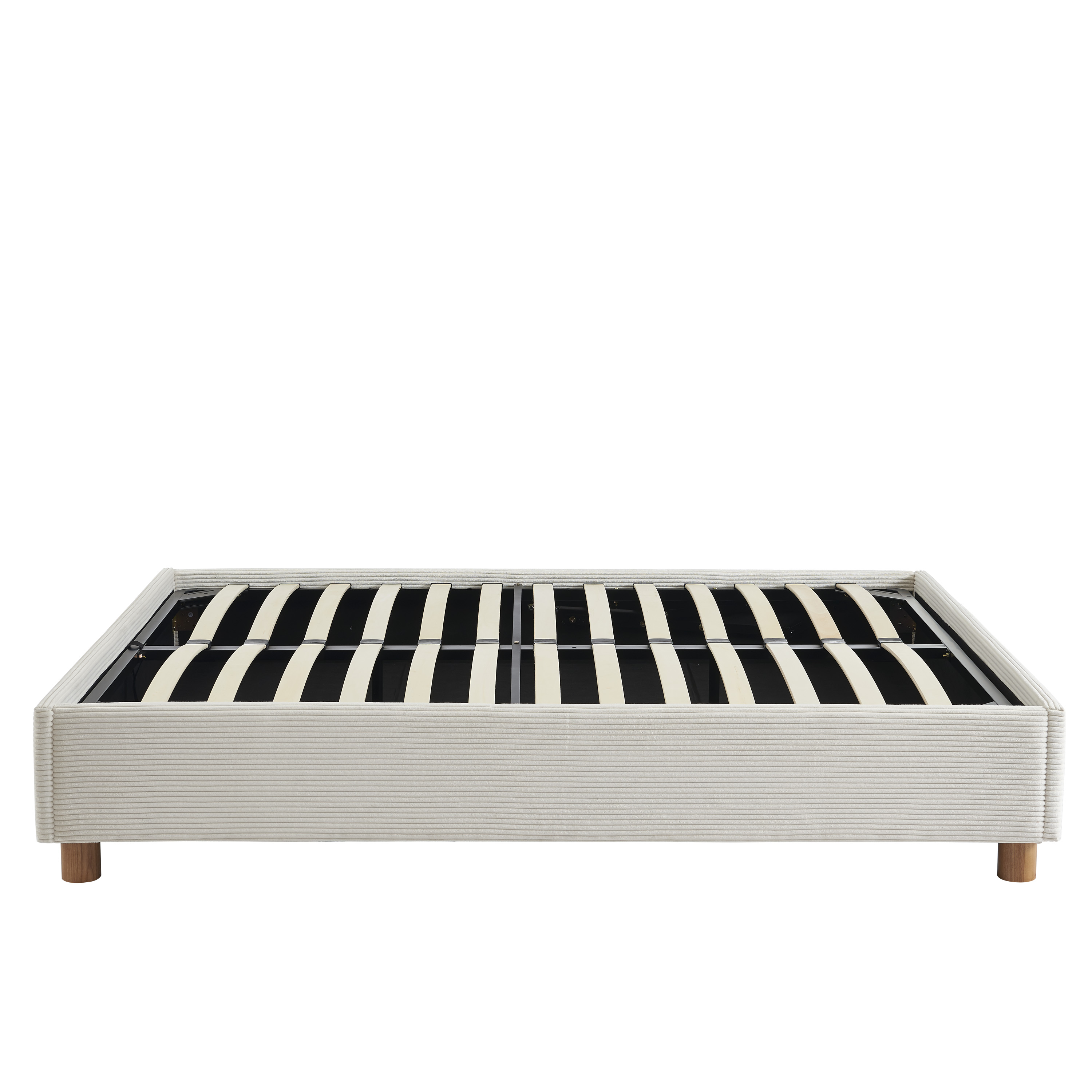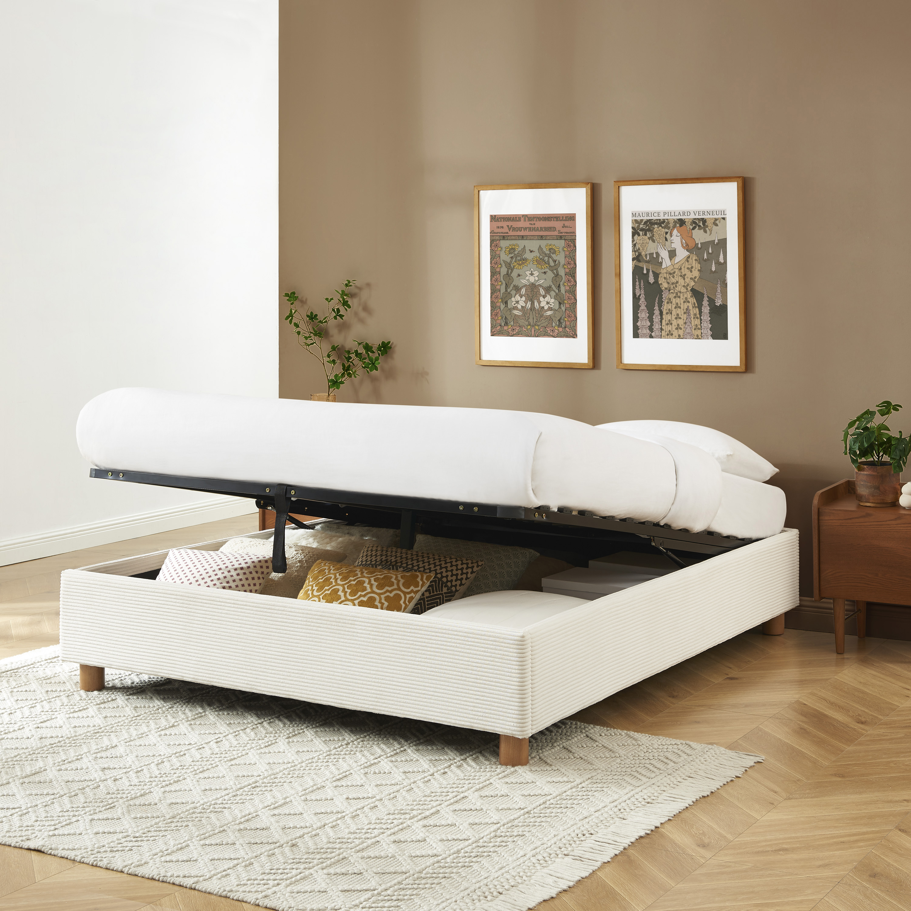 Enfin, les pieds en frêne massif de ce lit coffre en assurent la stabilité tout en mettant en valeur la texture du revêtement sur le cadre.