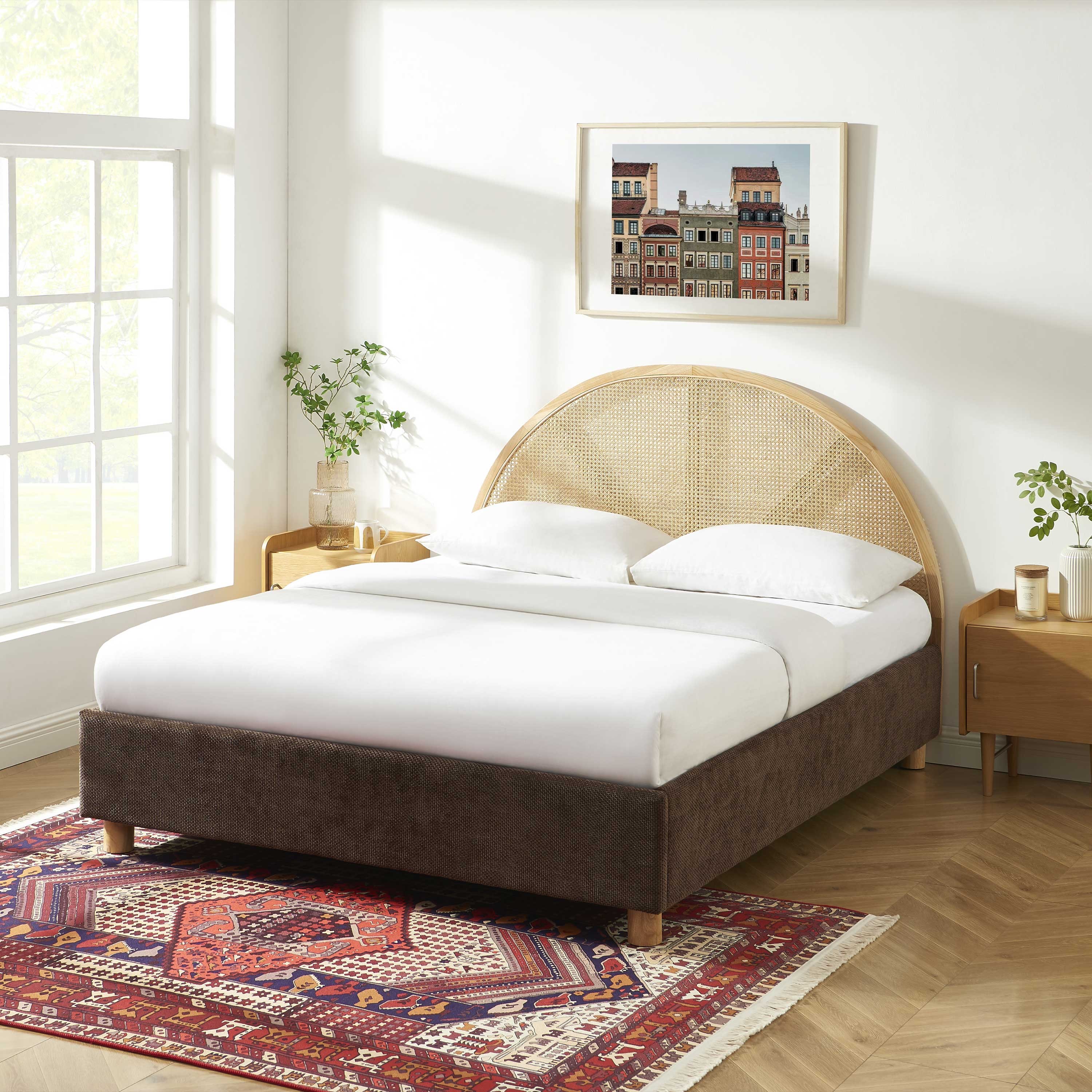 Lit coffre TSUKI velours côtelé marron cannage sommier 160x200 inclus