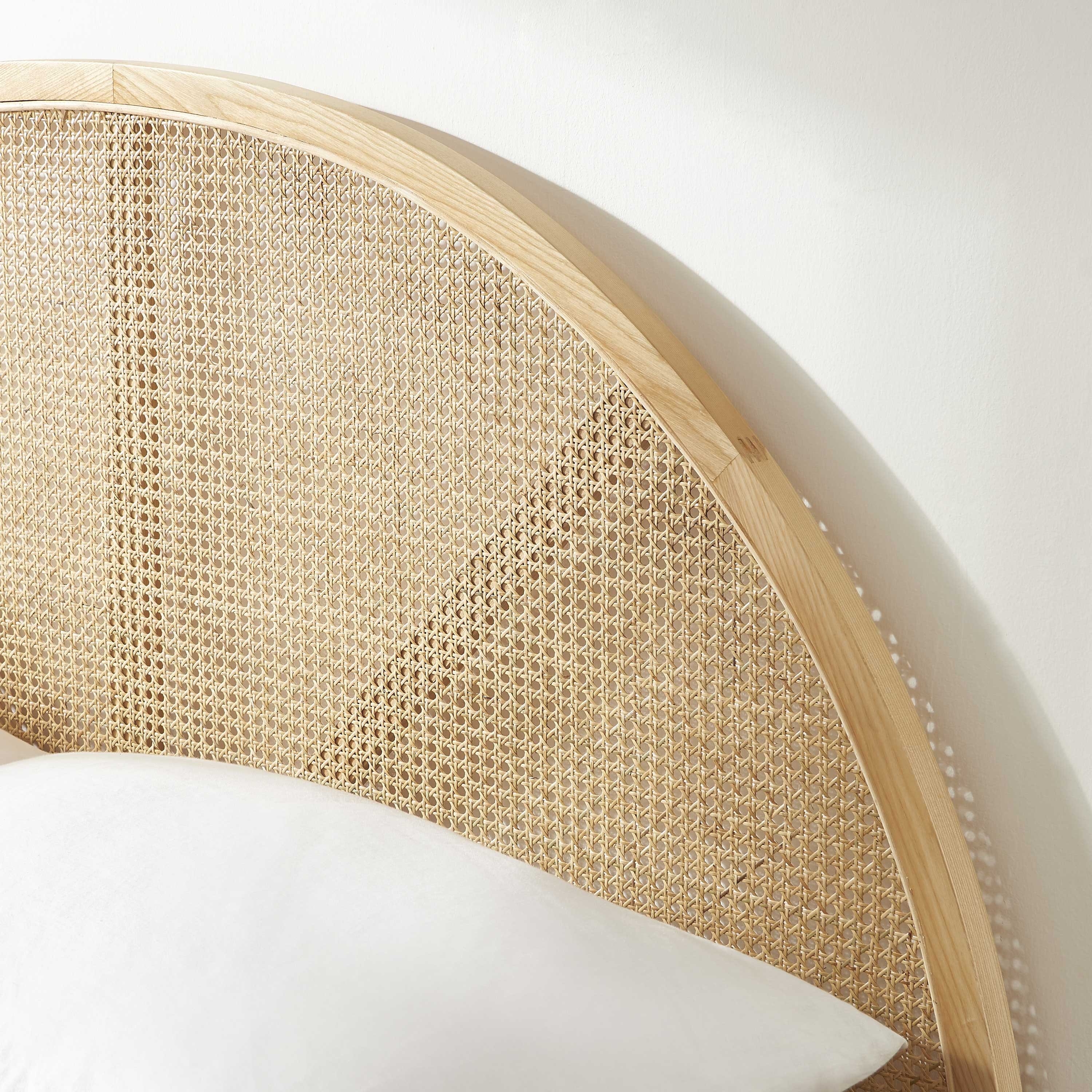 Avec des dimensions de couchage de 160 x 200 cm, ce lit propose un espace spacieux et confortable, idéal pour des nuits de sommeil profond. Le cadre de lit rectangulaire assure une structure solide et stable, tandis que la tête de lit arrondie en cannage rotin naturel ajoute une note de légèreté et d?authenticité. Ce détail raffiné et artisanal confère au lit TSUKI un charme unique, parfait pour une ambiance naturelle et chic.